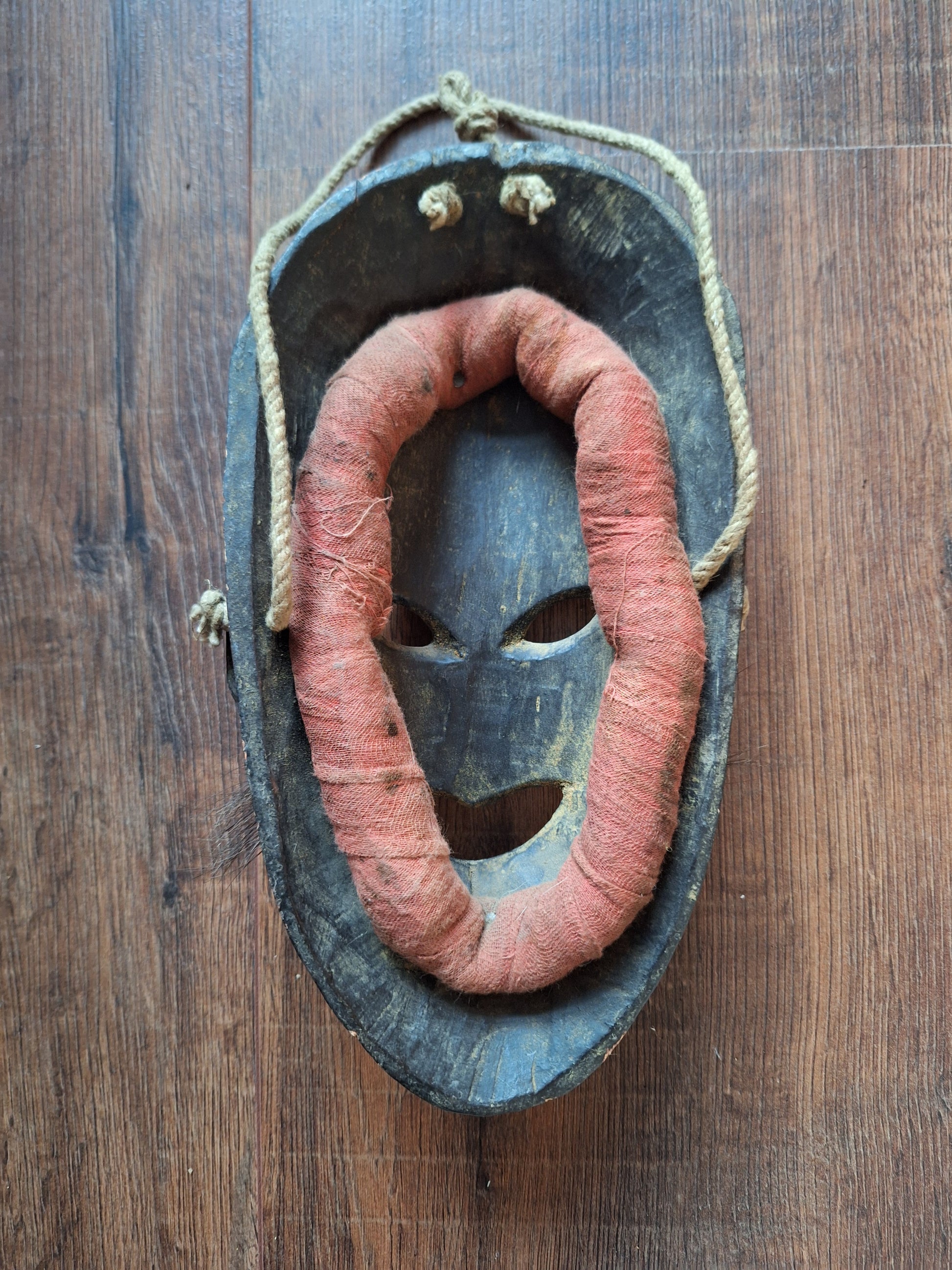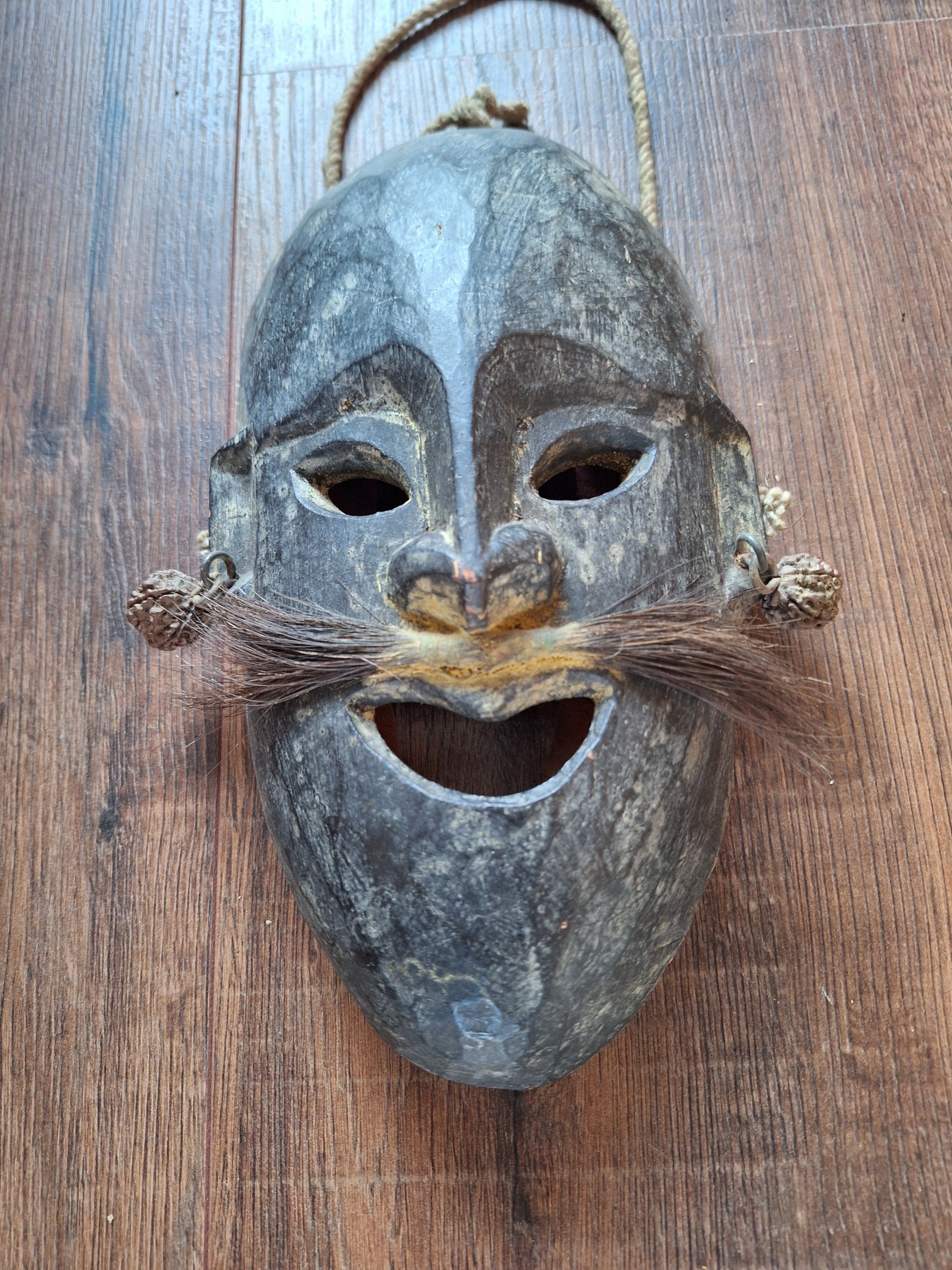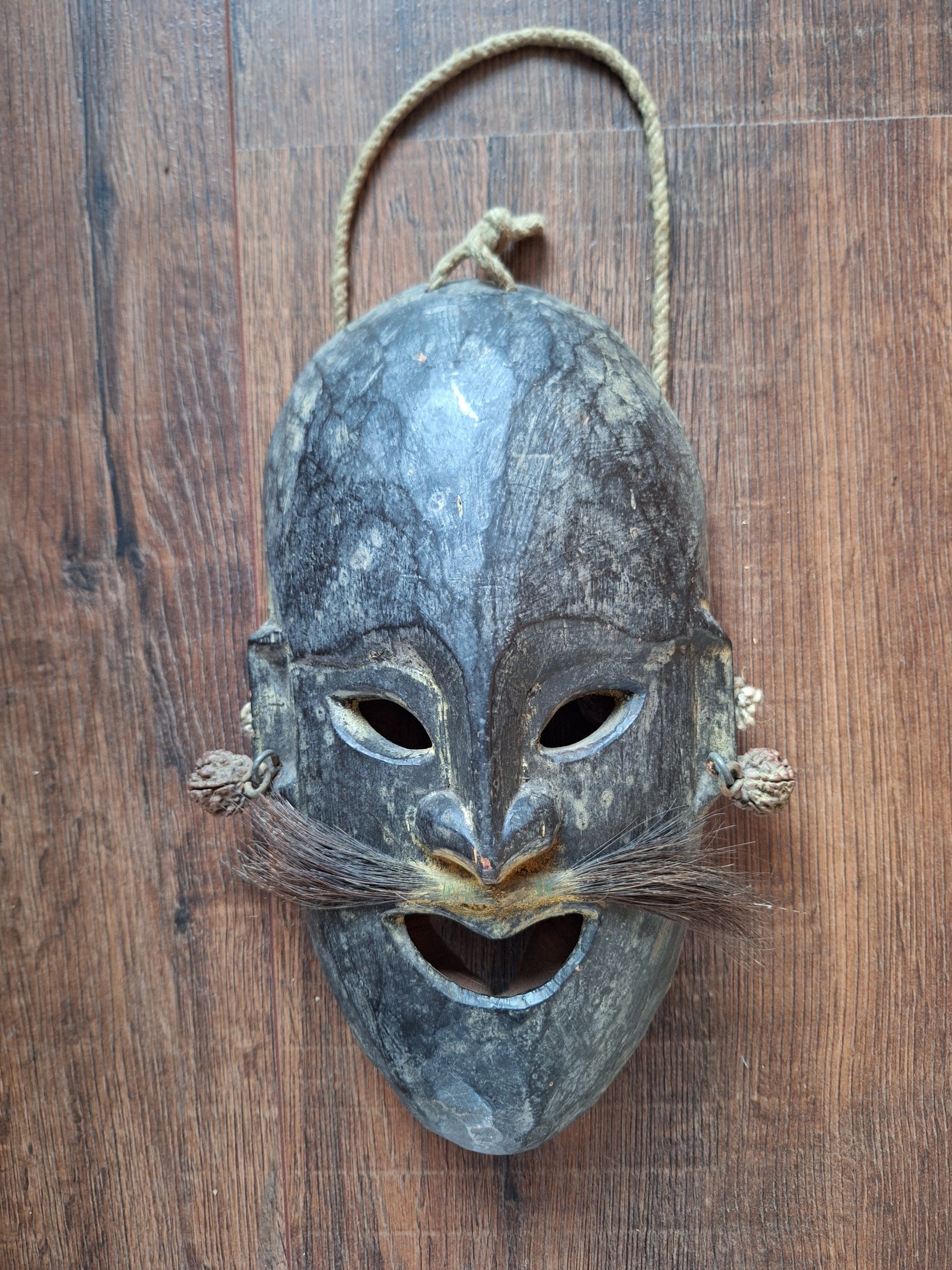 The exact age of this mask is hard to say, but it can roughly be determined somewhere around the middle of the 20th century, or maybe even a little bit earlier.