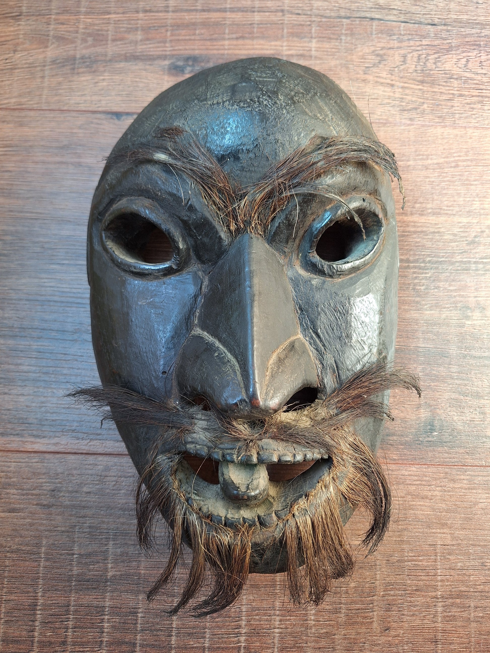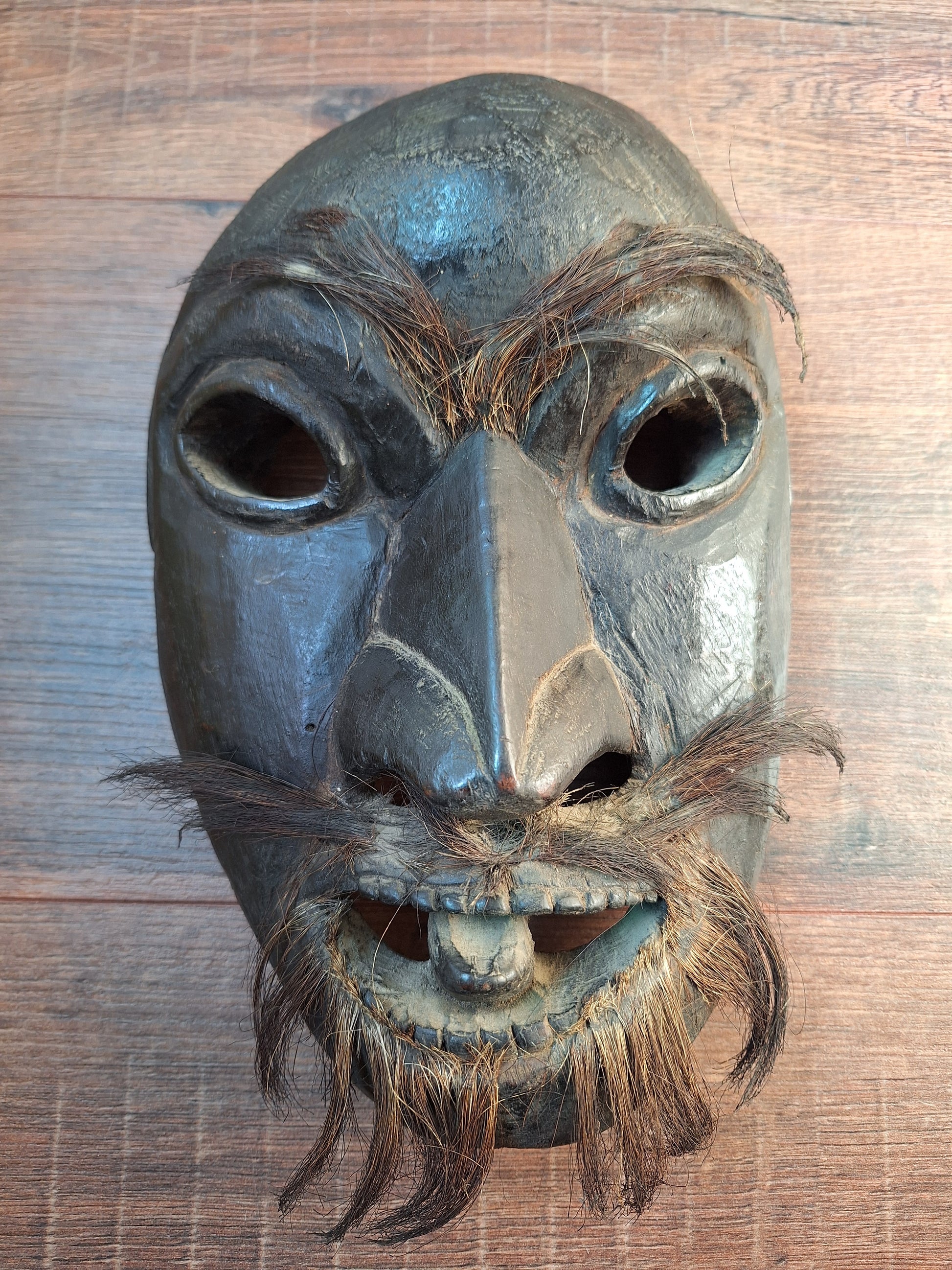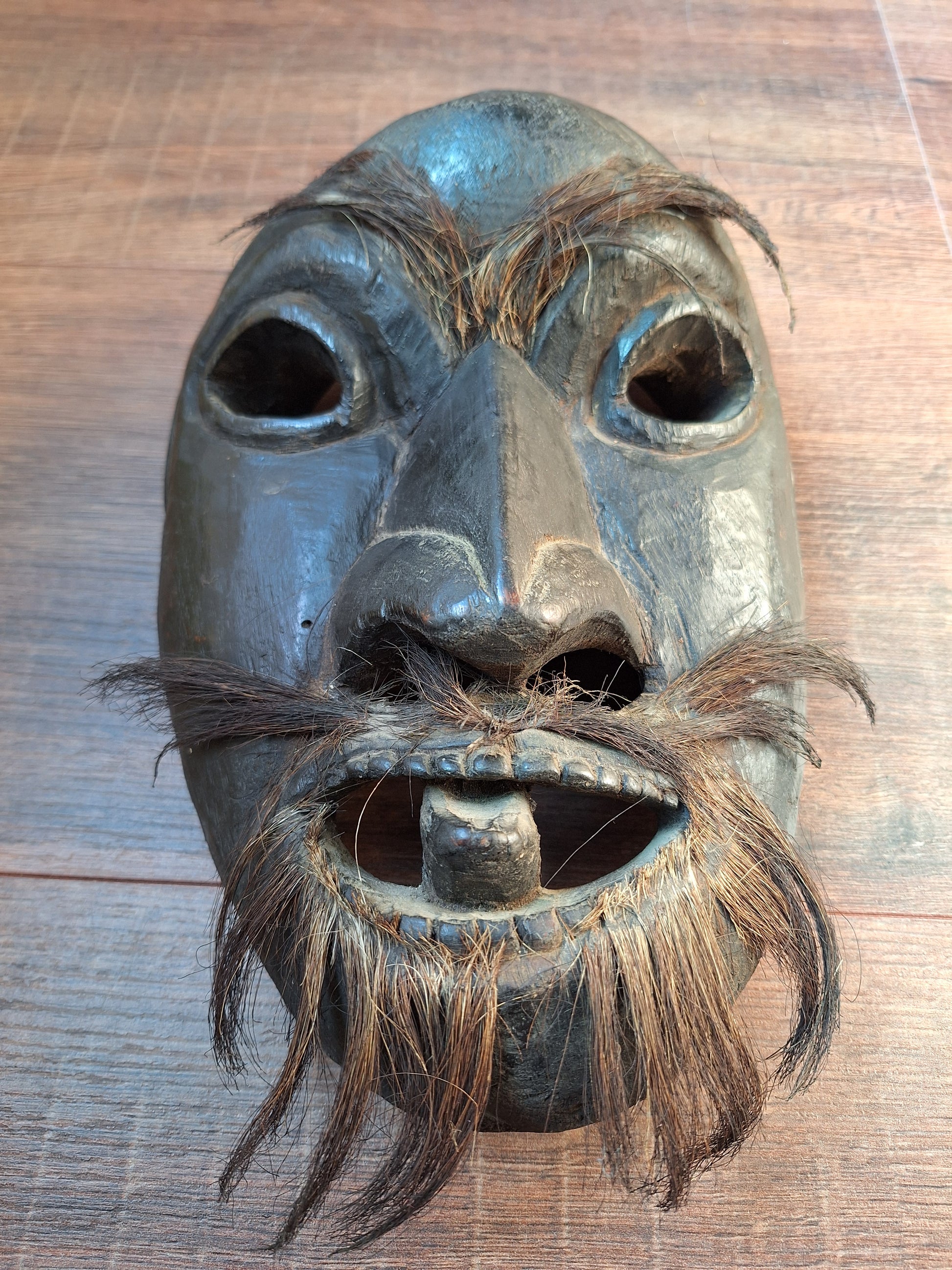 The exact age of this mask is hard to say, but it can roughly be determined somewhere around the middle of the 20th century, or maybe even a little bit earlier.