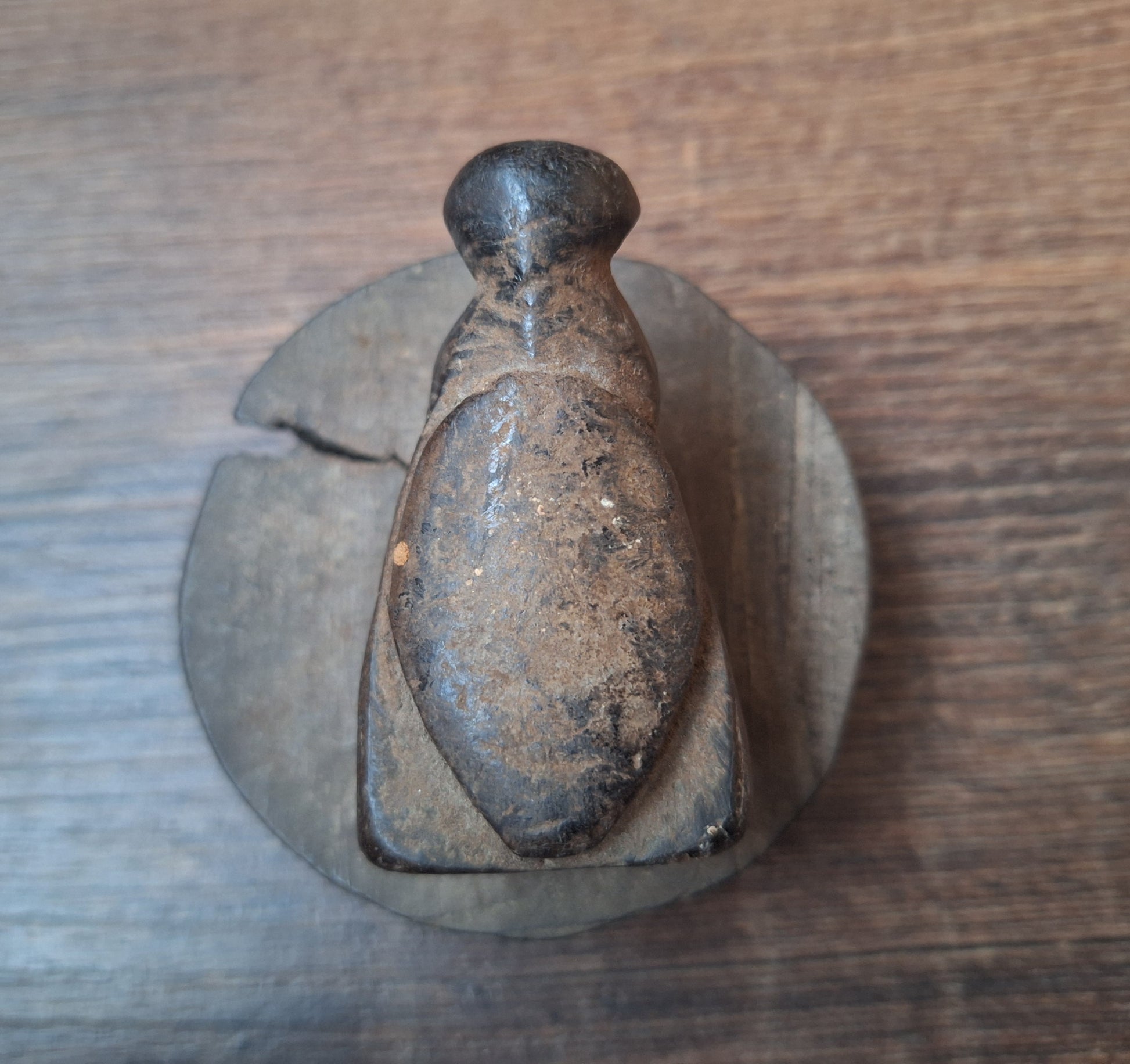 Antique wooden cover for a butter jar. Artisan handmade item from Nepal.