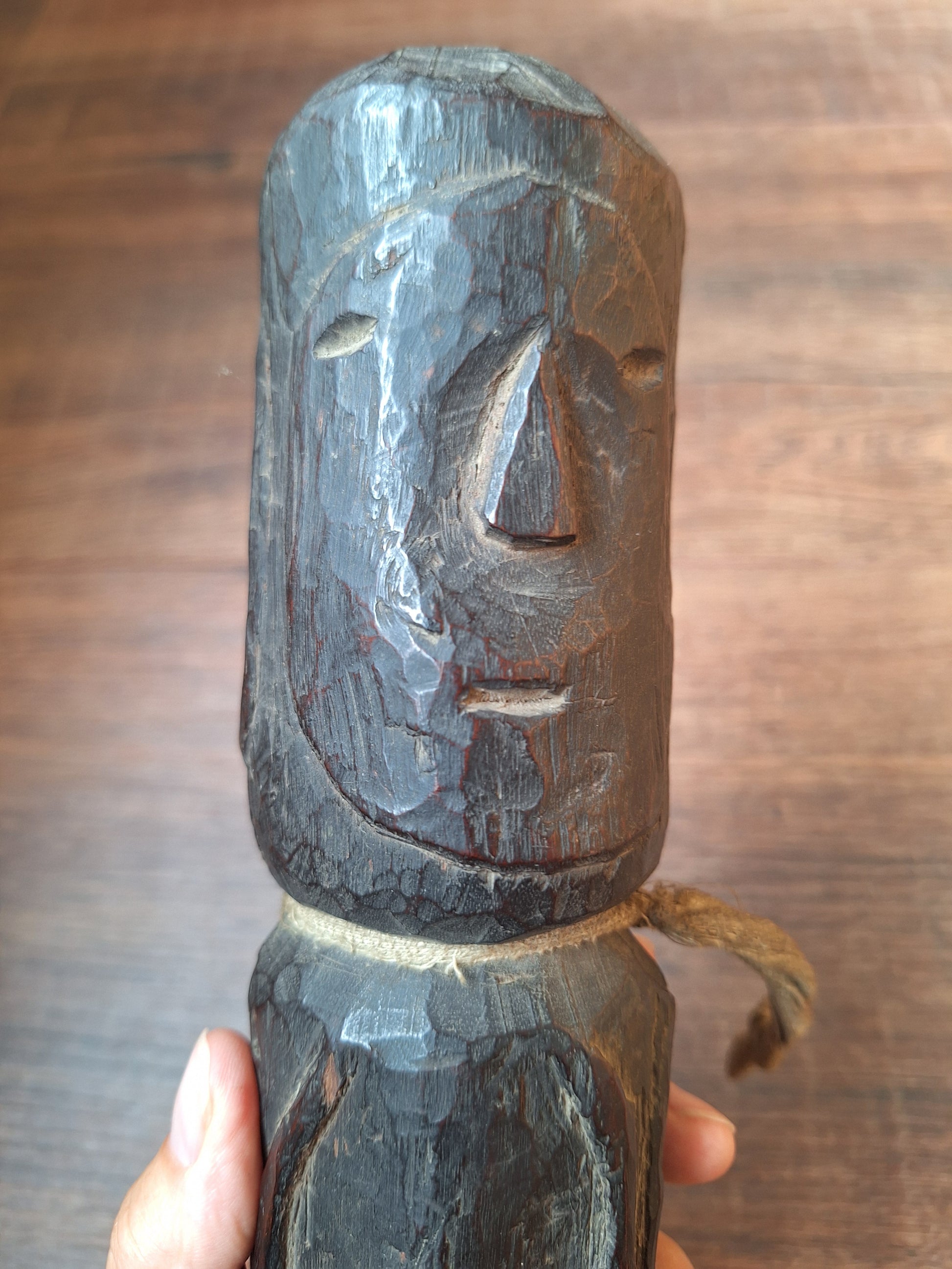 The namaskara mudra style can however also be found in much smaller objects, as woodcarved figurines on both daily attributes and ritual items. Also in this case they often serve the purpose of a spirit house; a physical home for the spirit that is connected to the item.