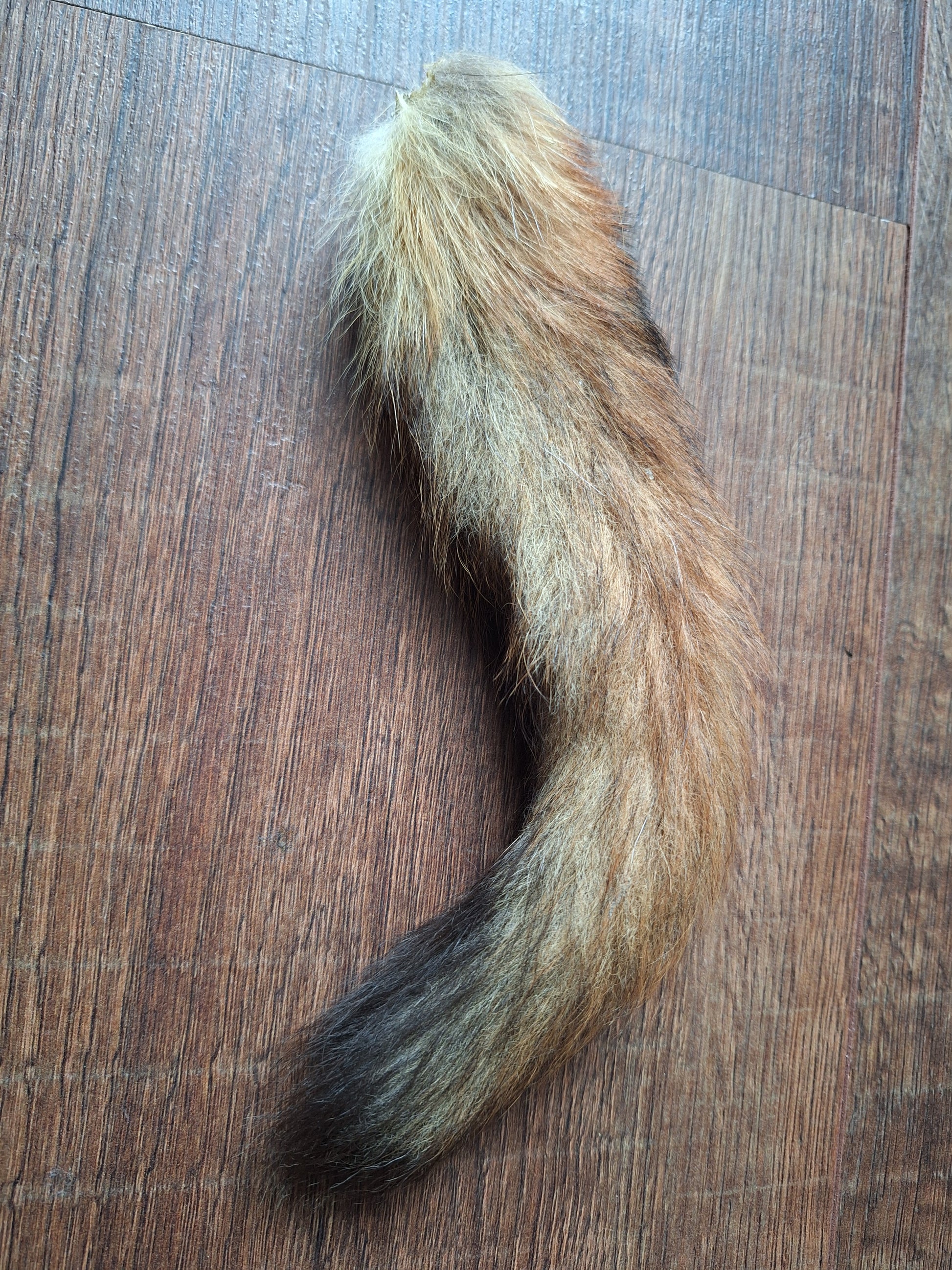 Please note; this is a rigid preparation. It is prepared with the tail bones still inside, so it's not flexible. This is a tail without an eyelet, keychain or other hanger attached to it.