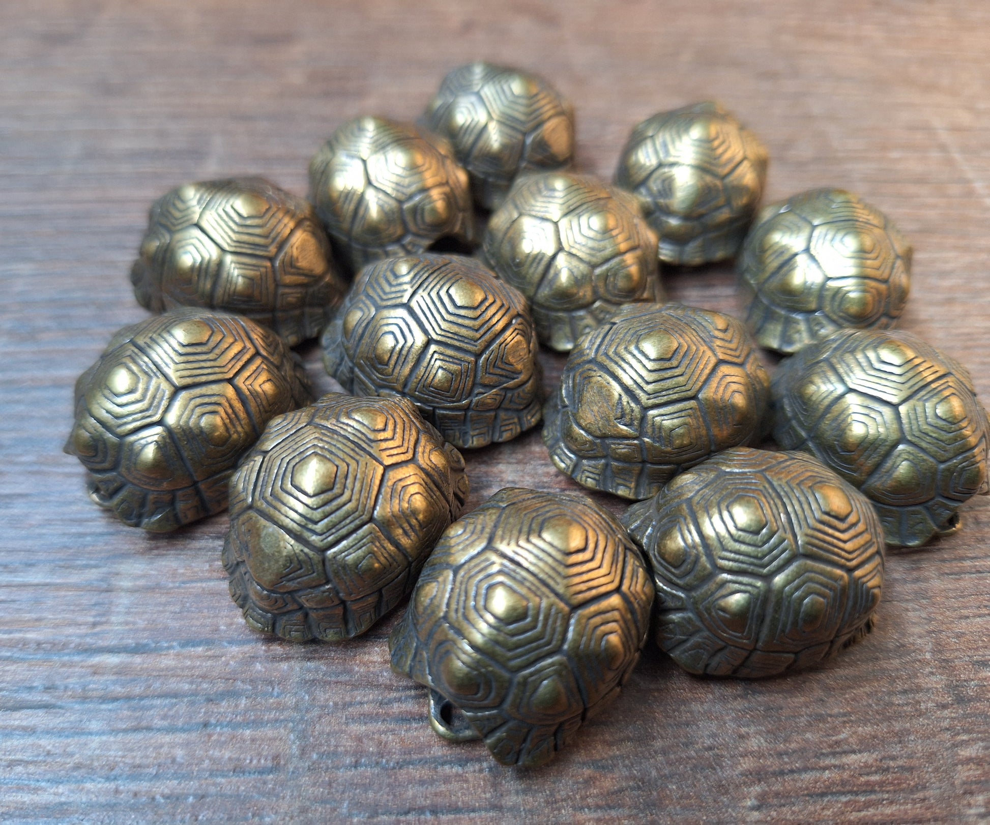 These bronze bells are made in China and measure approximately 20 millimeters wide, 28 millimeters high and 18 millimeters deep.