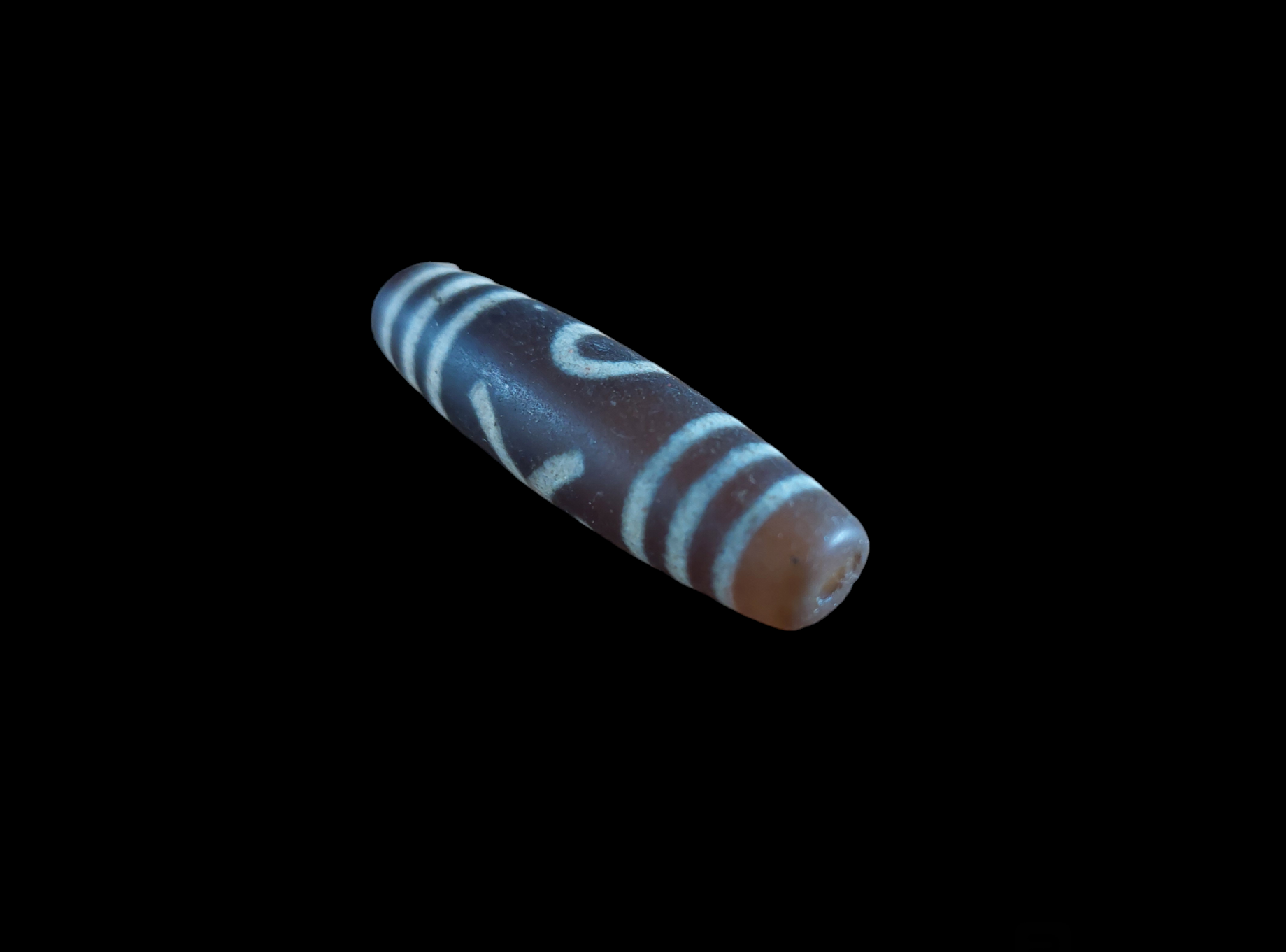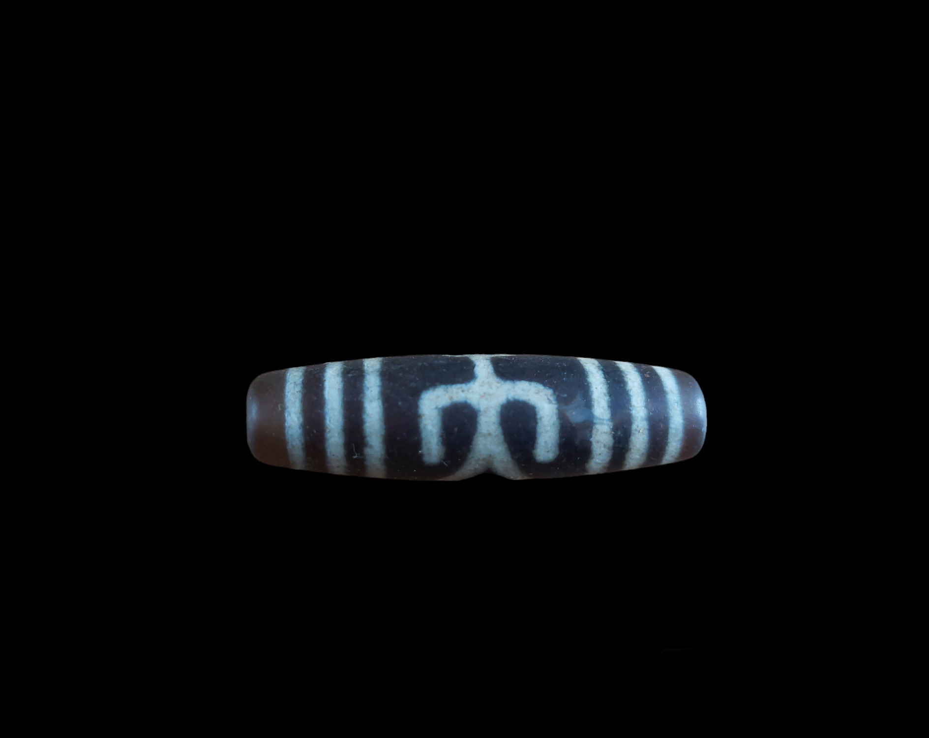 This dzi bead features a depiction of a large man, sometimes resembling a man with a head at both ends. In Mandarin language, the image is called ‘da ren’ which translates as ‘big person’, with ‘big’ in the meaning of greatness, importance, high ranking. This leads to the other name of this bead; the Aristocrat.