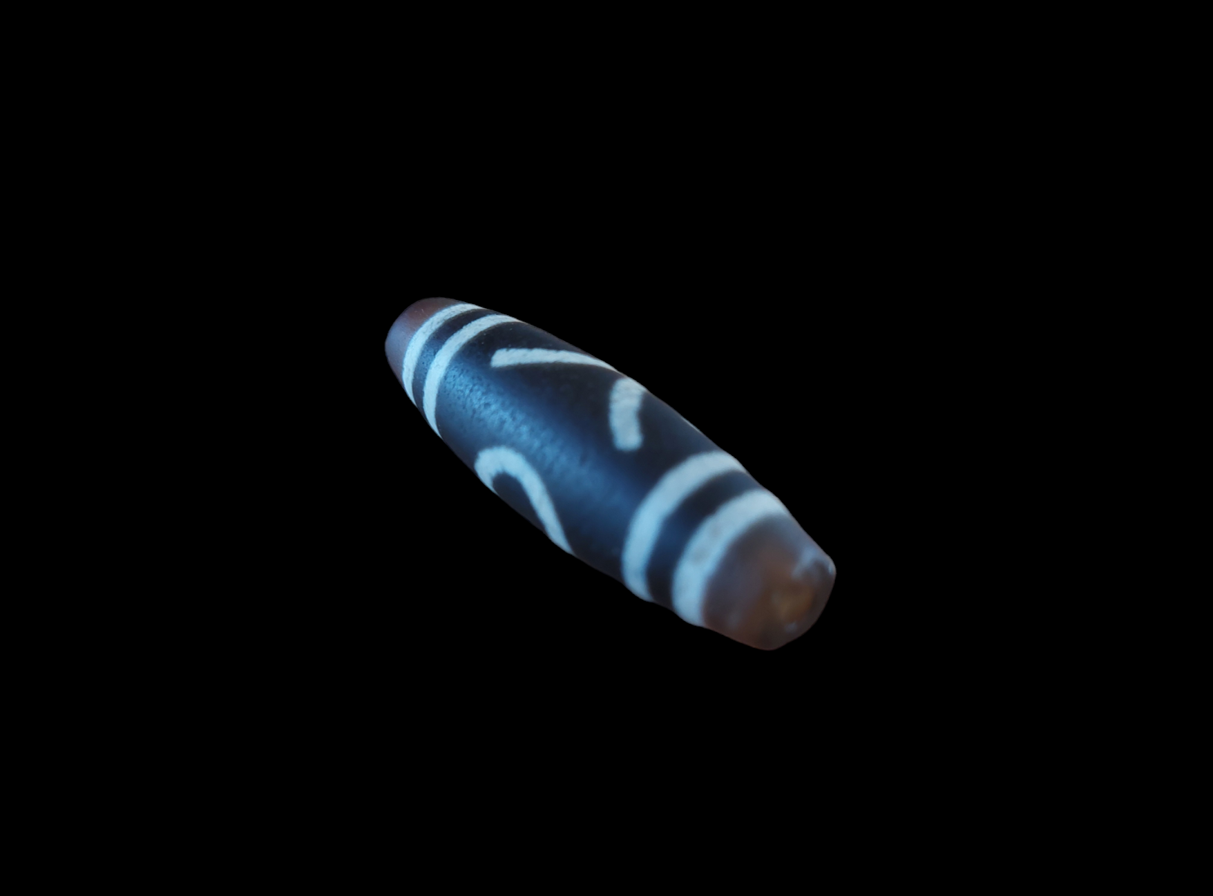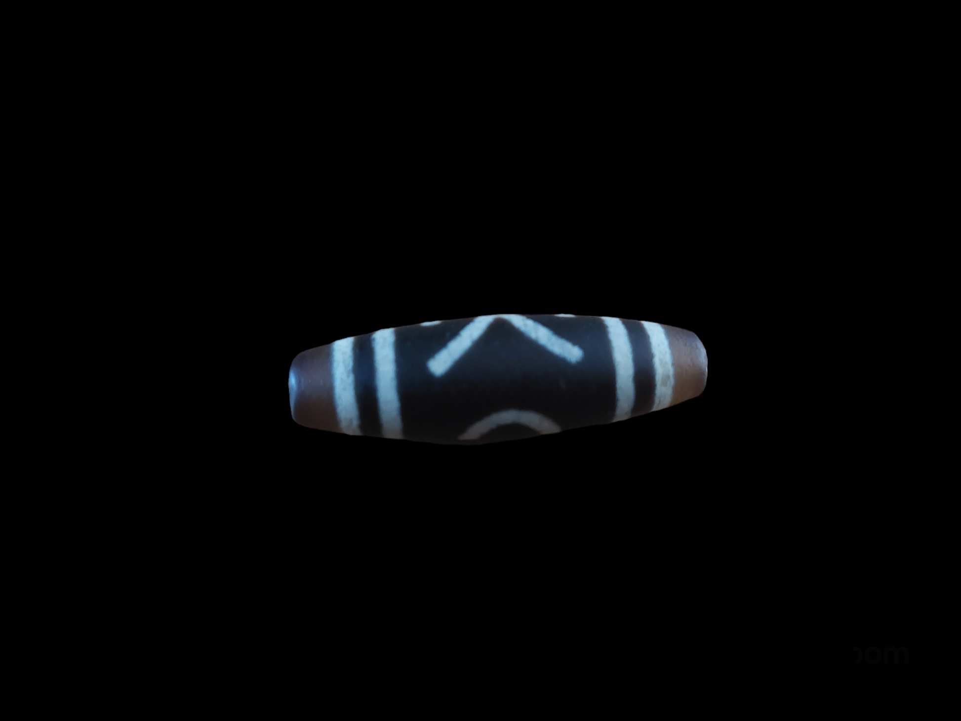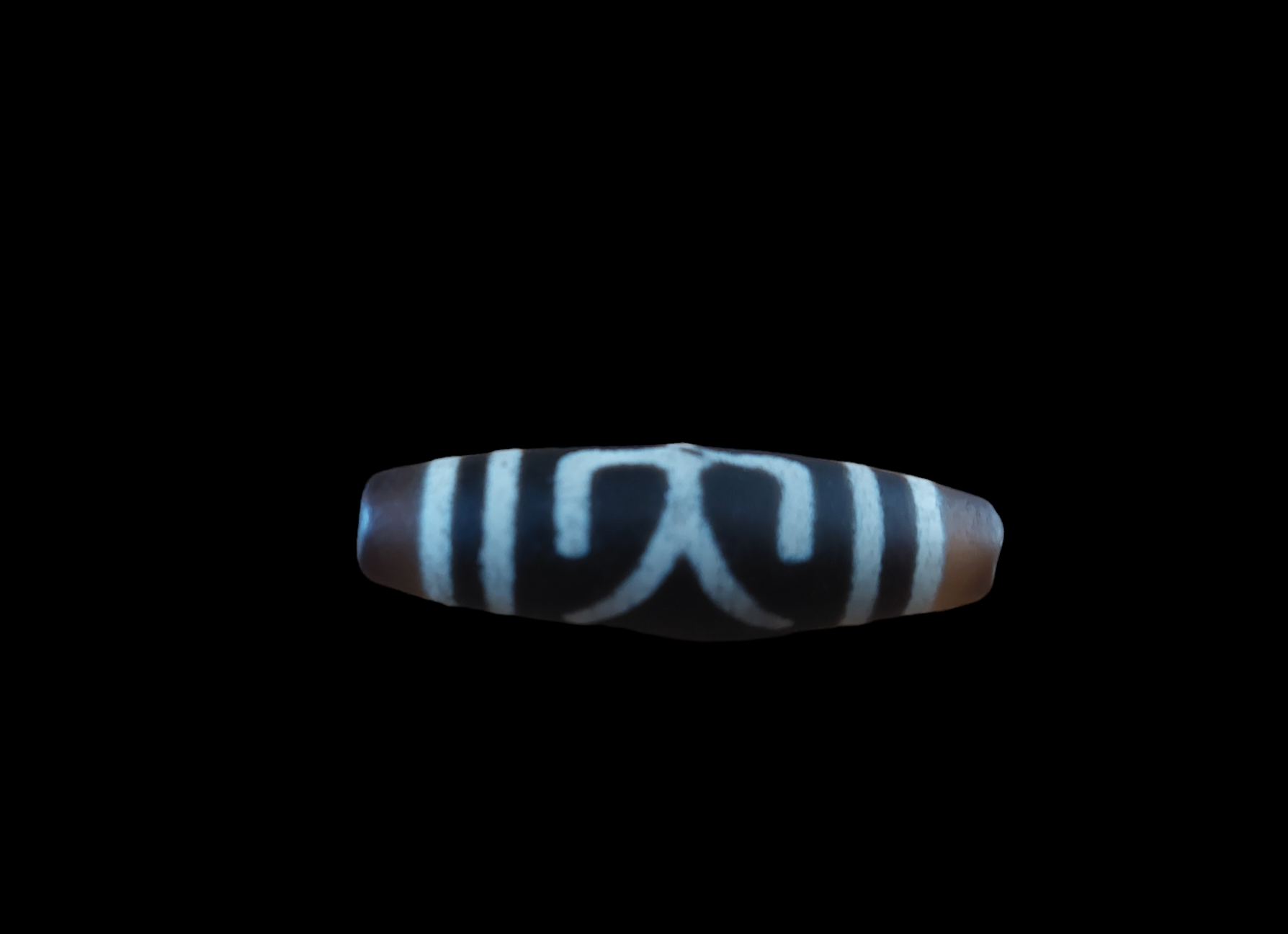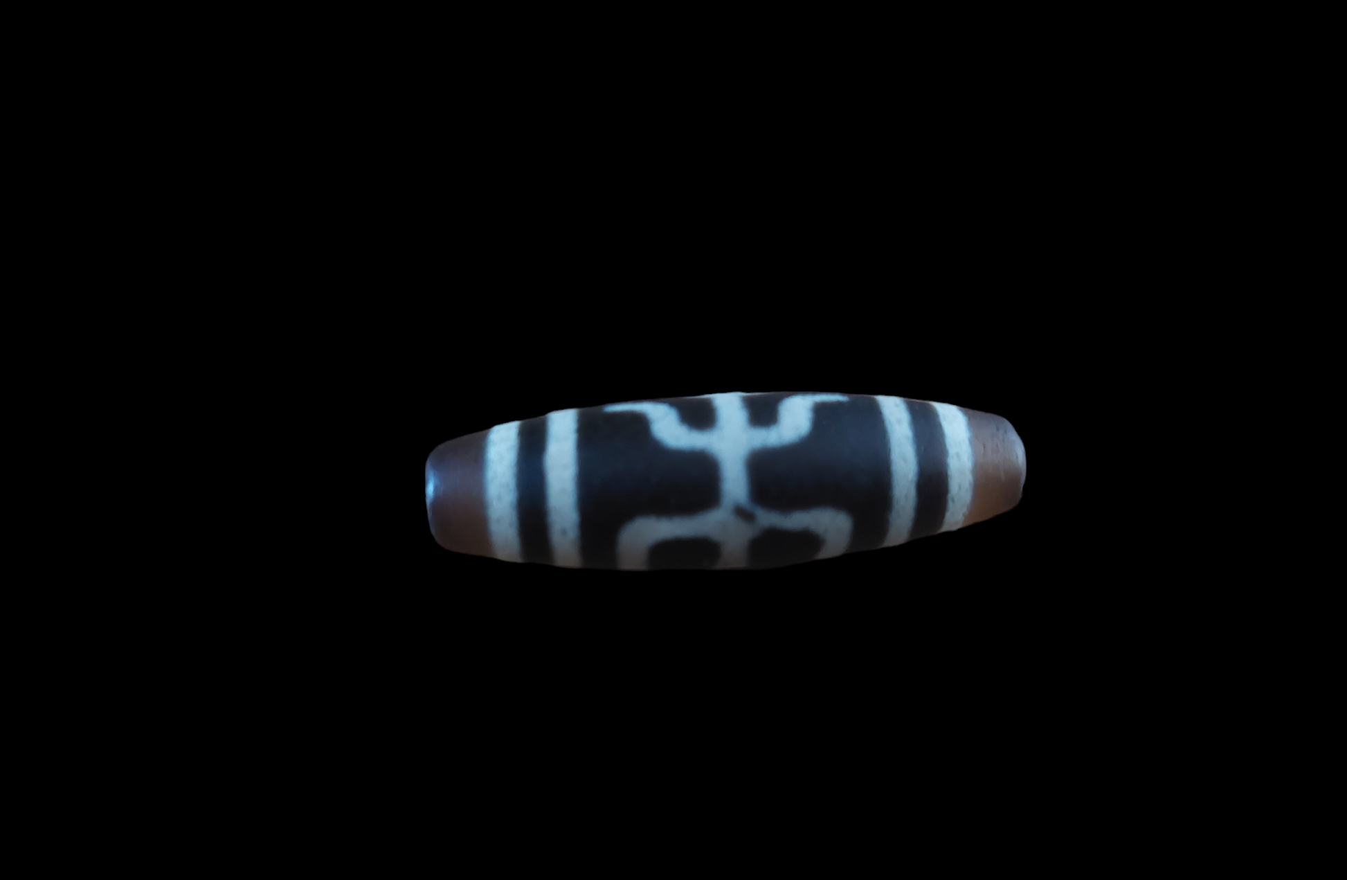 This dzi bead features a depiction of a large man, sometimes resembling a man with a head at both ends. In Mandarin language, the image is called ‘da ren’ which translates as ‘big person’, with ‘big’ in the meaning of greatness, importance, high ranking. This leads to the other name of this bead; the Aristocrat.
