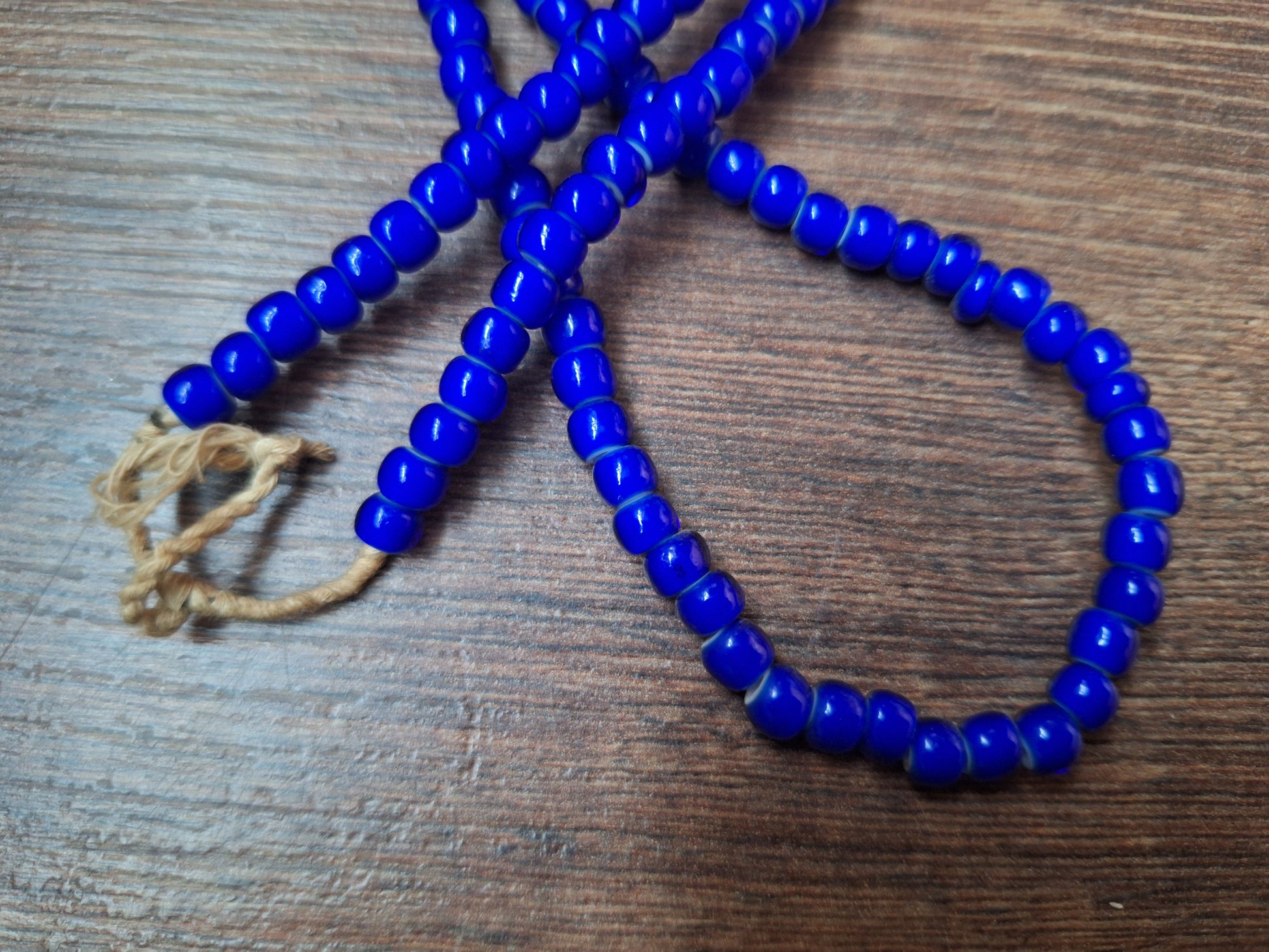 Strand of beautiful, intensely colored, royal blue glass beads, perfect to use in all your own crafting and jewelry making purposes.