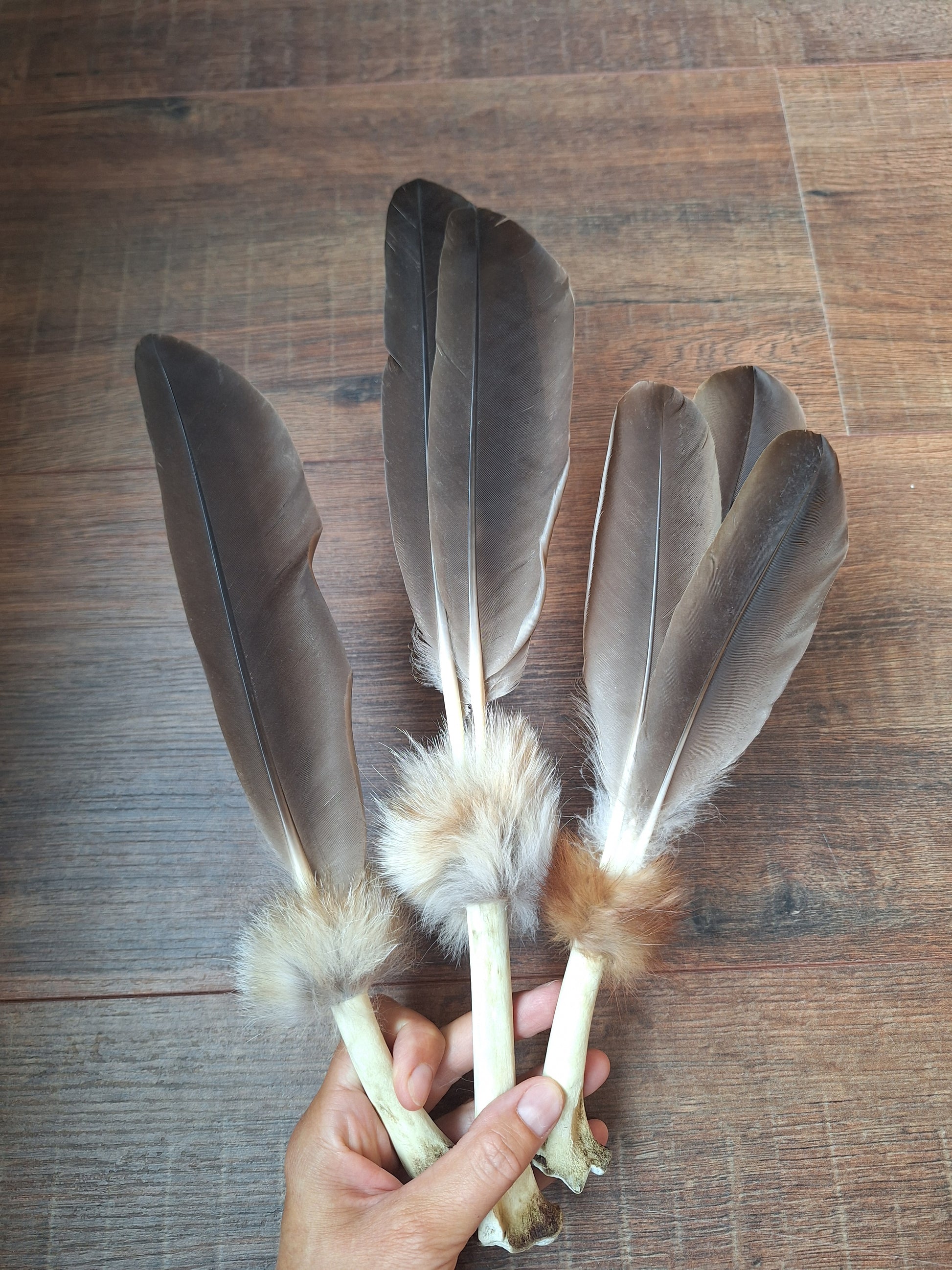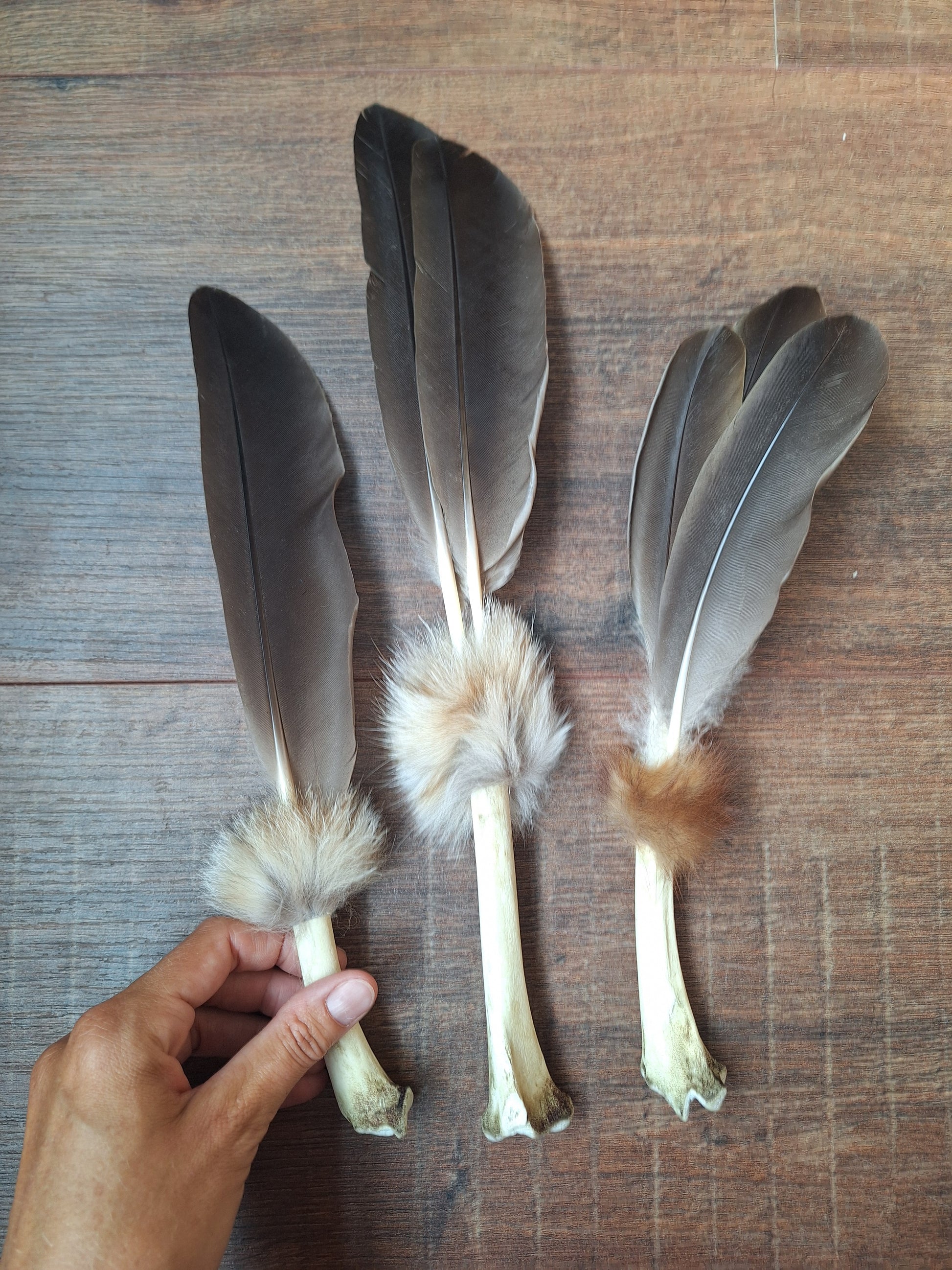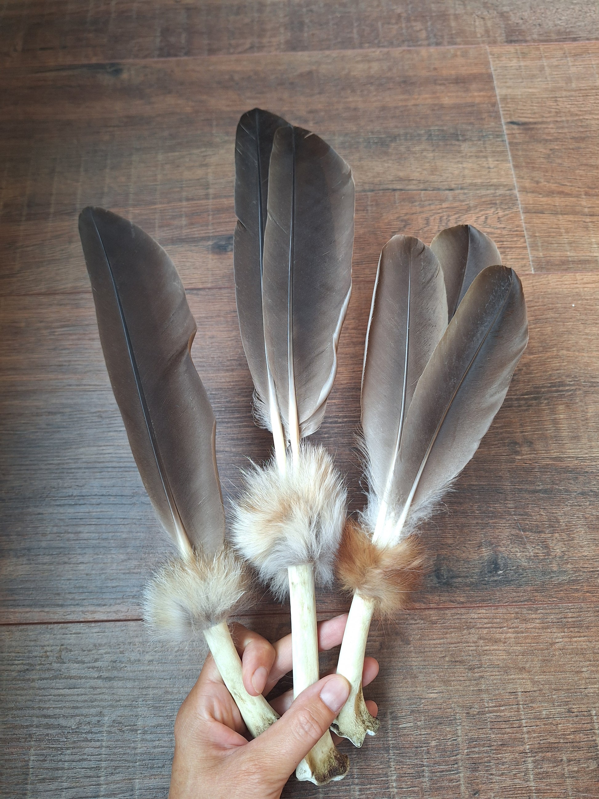 #3; 3 goose feathers, pole cat fur, approximately 31 centimeters long