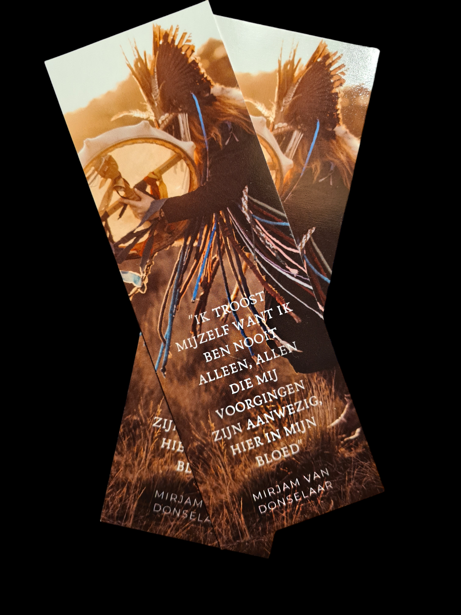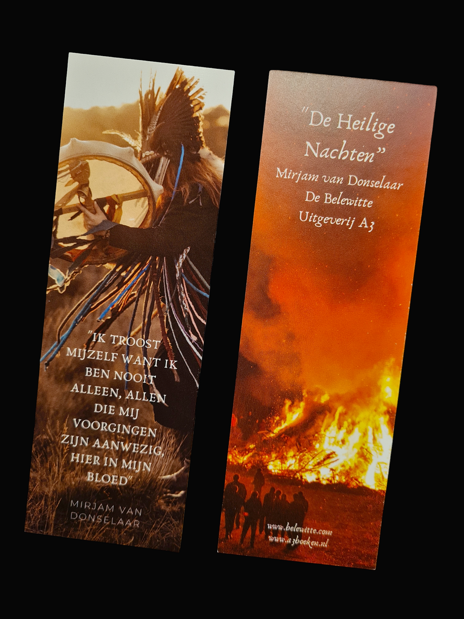 Bookmark made by Mirjam van Donselaar / Izih Deer Kam, author of "De Heilige Nachten" (A3 Boeken). A nice bookmark with shamanic photo made by Hanna Geels and a quote from the poetry book "Dagaz" by Mirjam, glossy and full colour! A nice present or for yourself, to give a little bit of a shamanic touch to your reading every day !