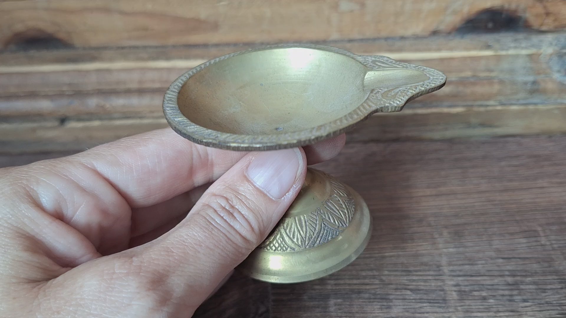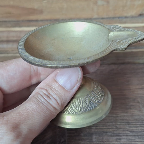 Here at SeaWolf Shop we offer you ghee lamps in different styles and sizes. This one is a smaller sized one, made of brass. As can be seen on the pictures, the 'cup' is a relatively flat one. A lamp in this model is more often used to burn oil instead of ghee. But of course also ghee can be burned in it (in small portions, and then refilling more often).