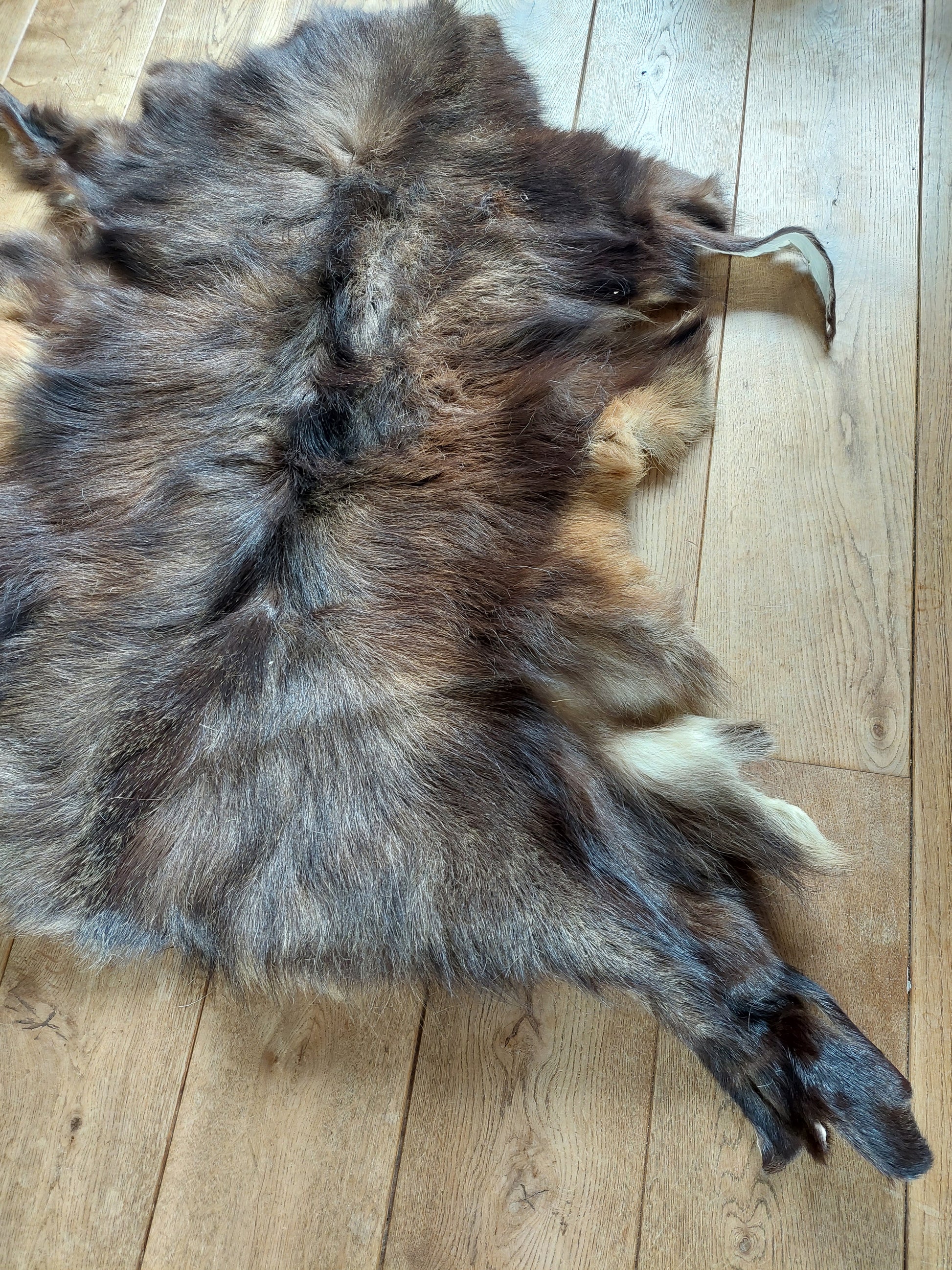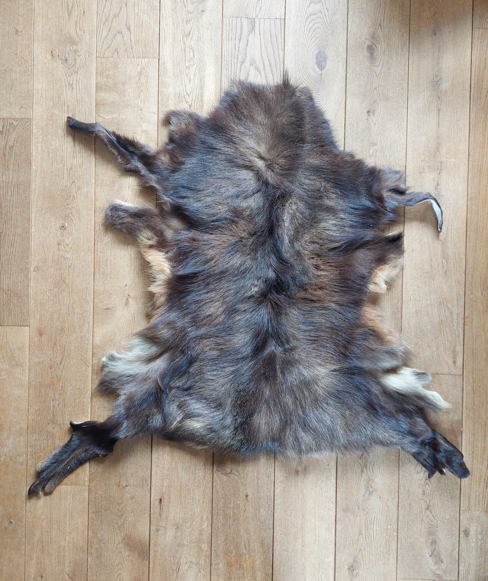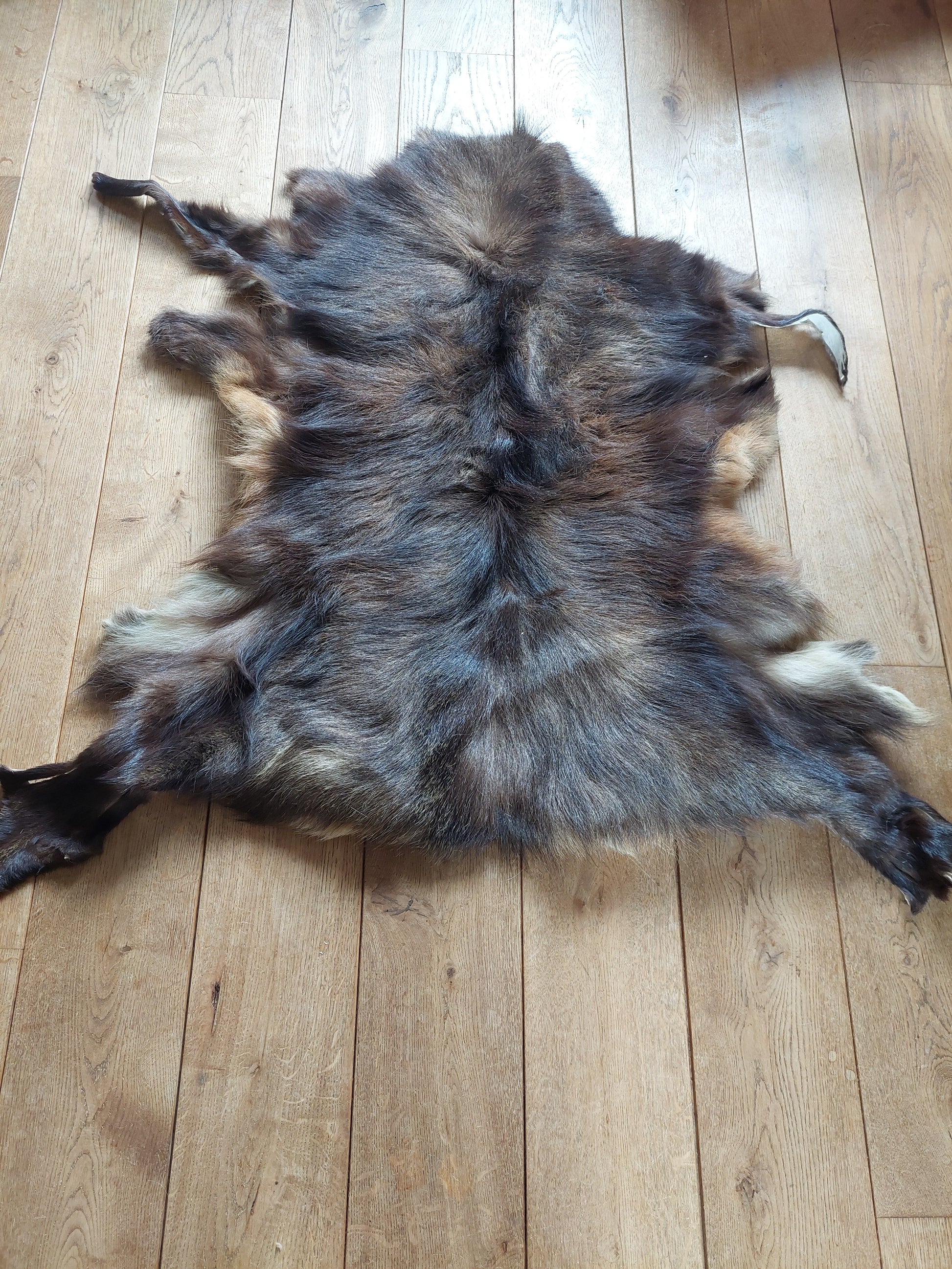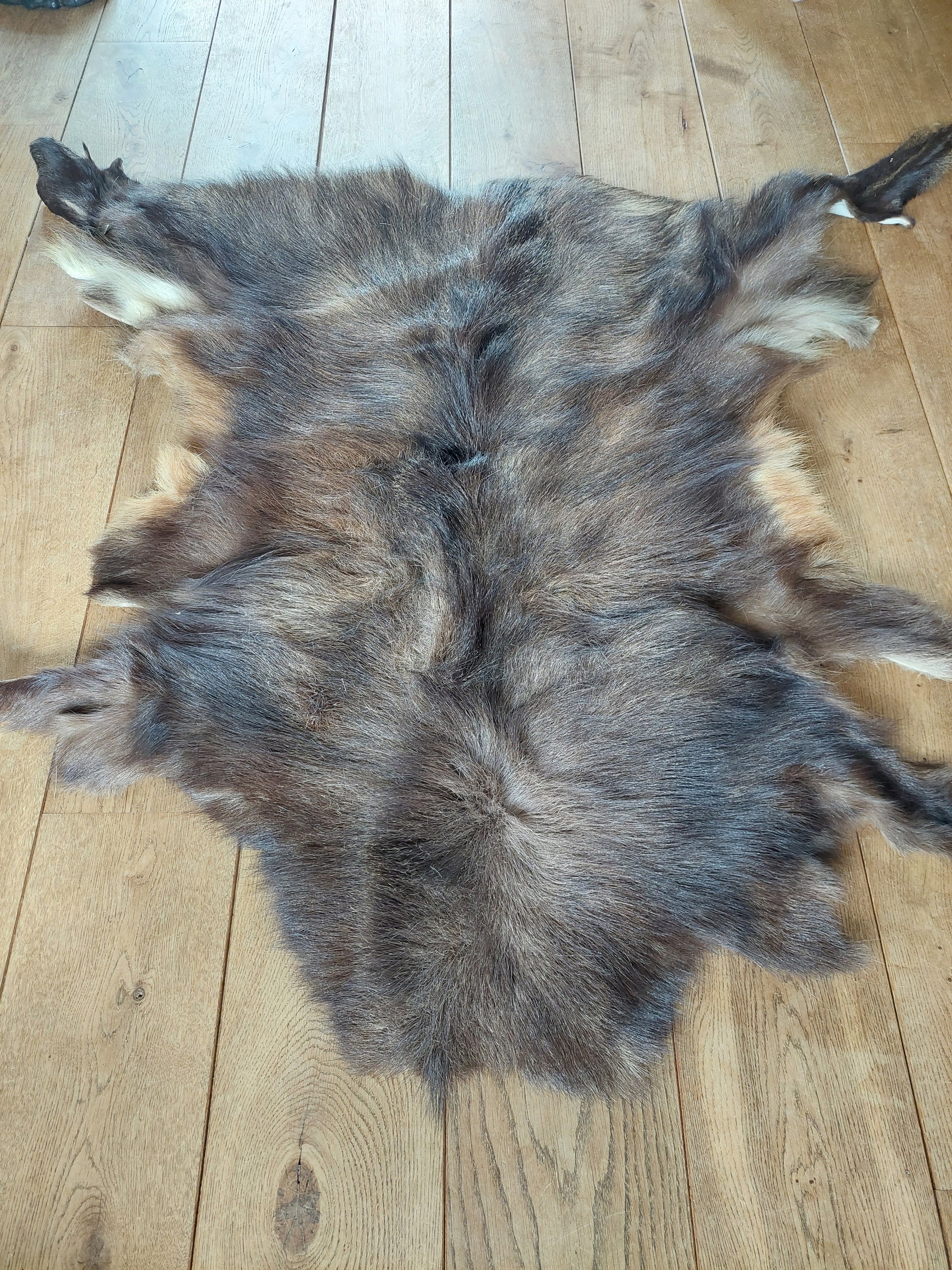 Very nice chamois (mountain goat) hide, in good condition. Flexible, supple leather side and beautiful long, sturdy dark brown hair. A nice item to add to your altar space, practice room or living room.
