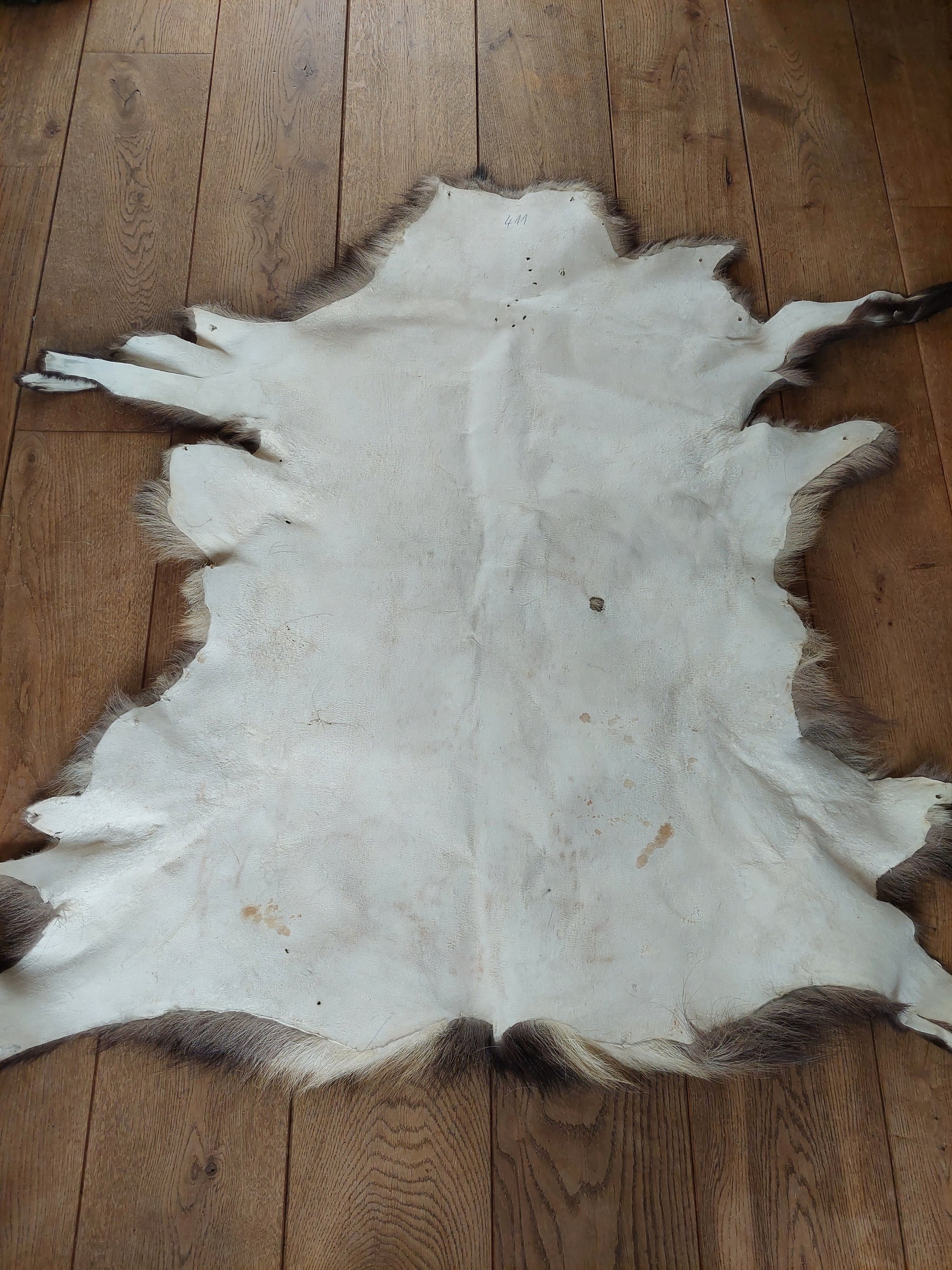 Sizes; length approximately 102 centimeters, width approximately 78 centimeters.(measured at the the broadest area, at the back paws, but measured without the leg hides)