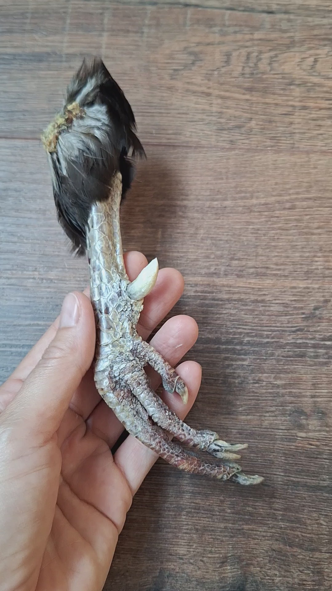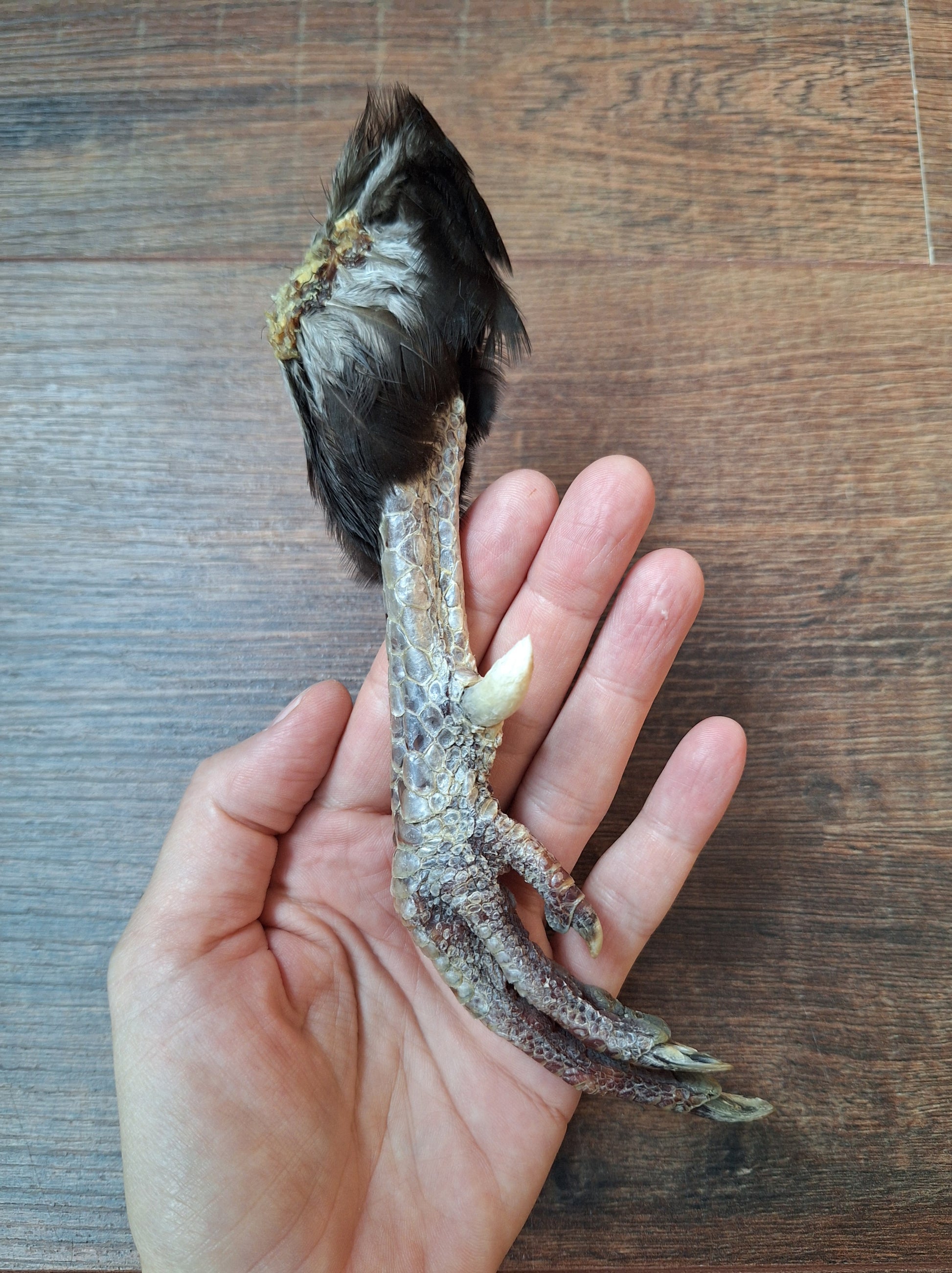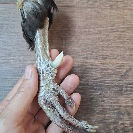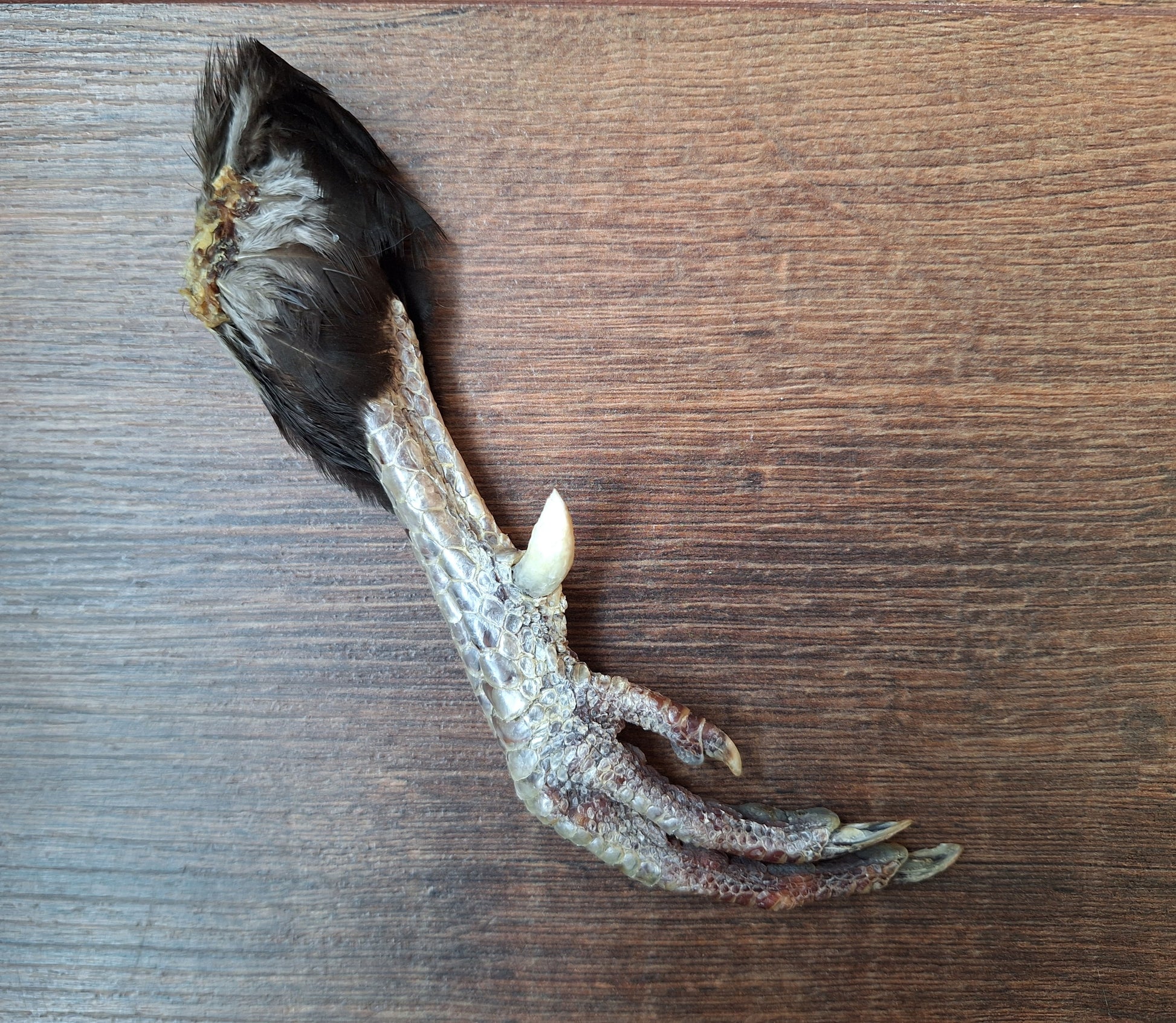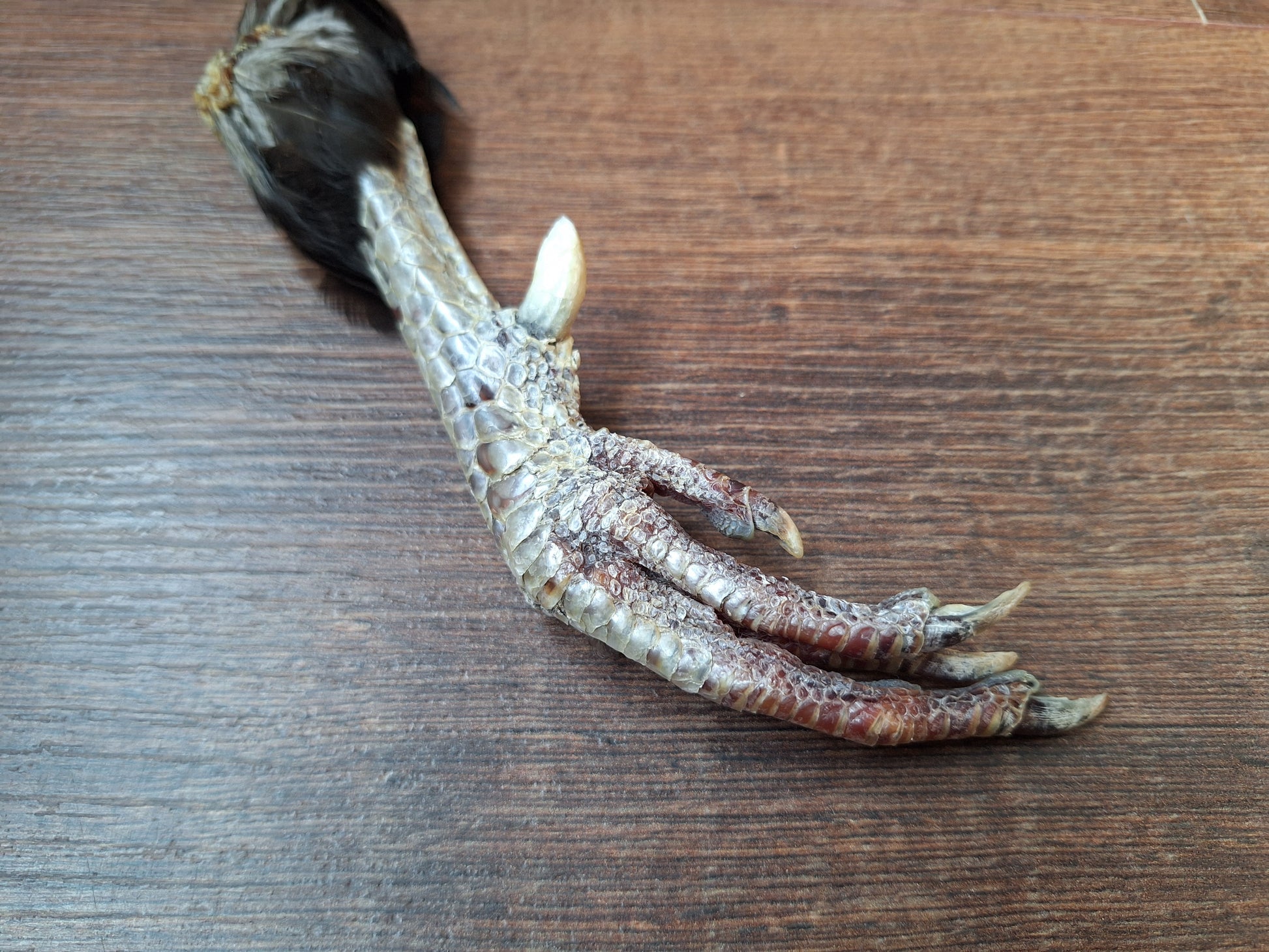 Naturally air-dried lower legs from a chicken, farm held animal, died of natural causes. A nice item for all kinds of ritual or crafting purposes.