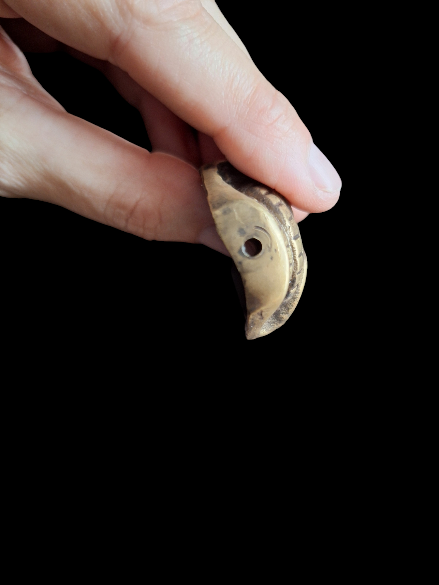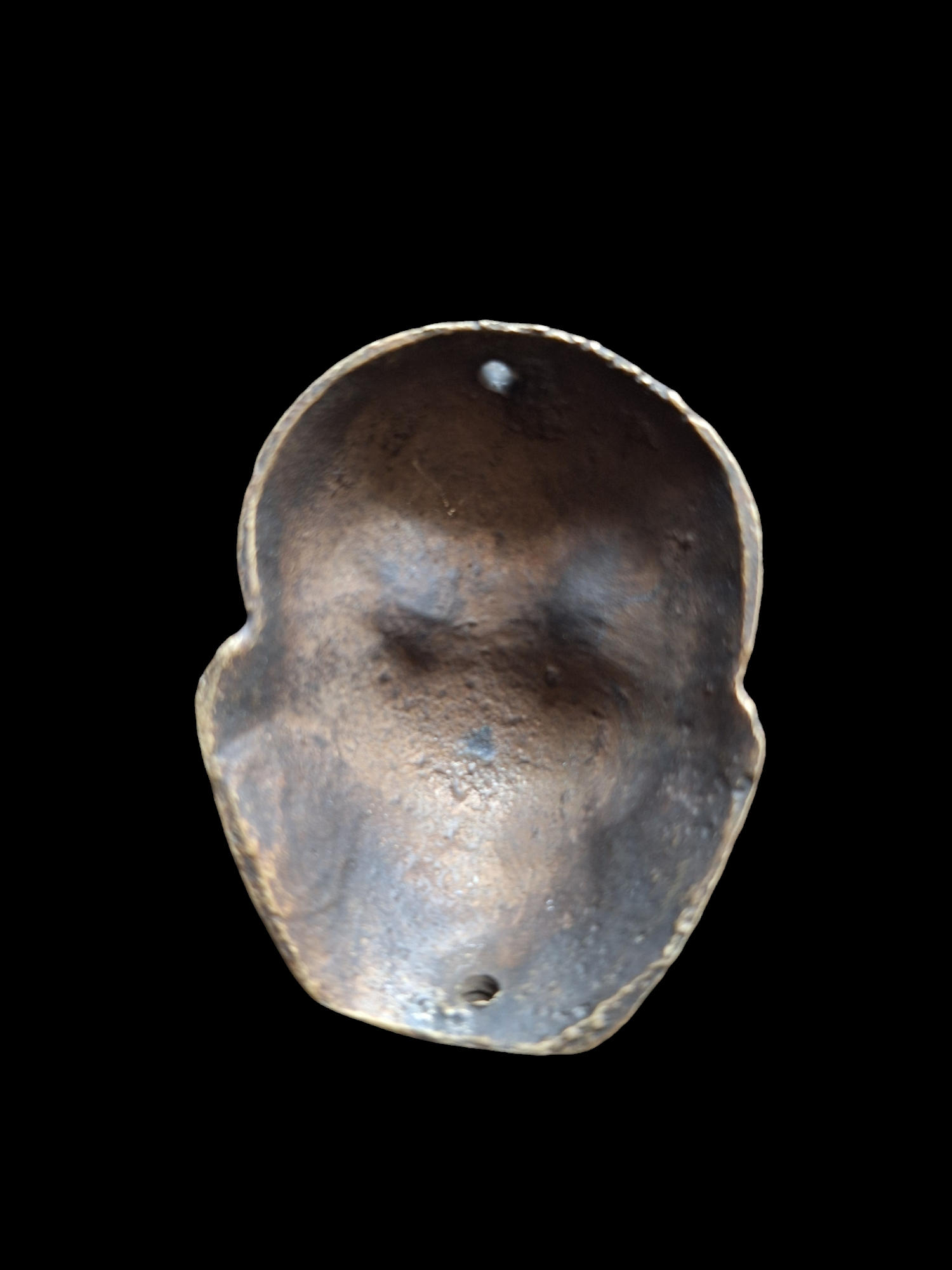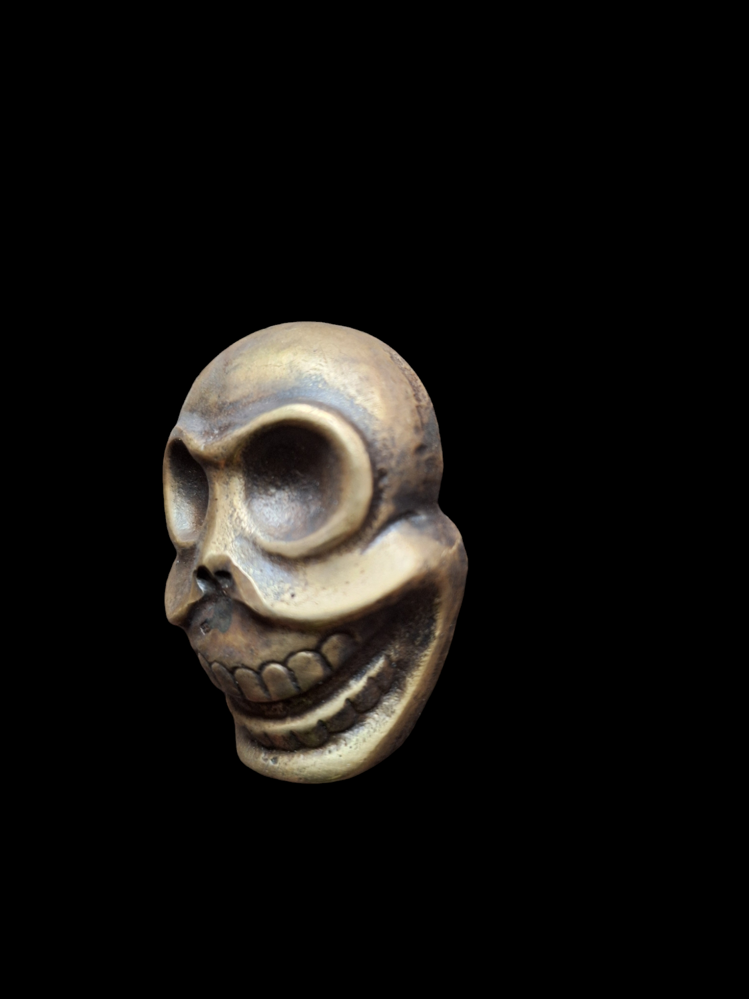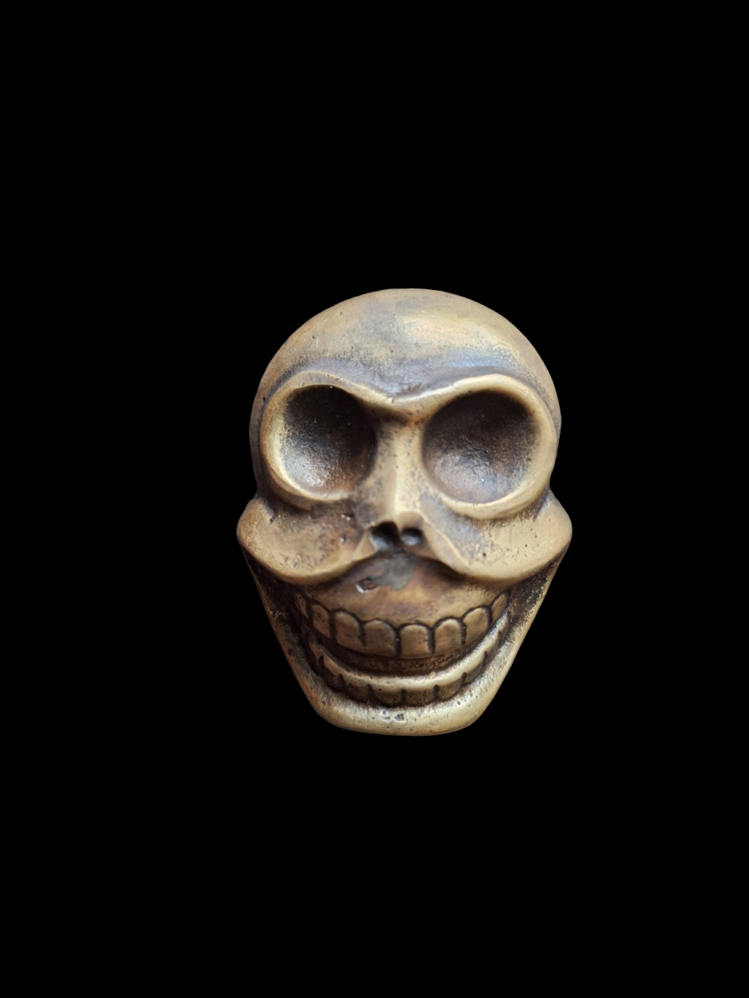 This bronze Citipati skull comes from Nepal and is from vintage origin. A small hole has been drilled into it both at the top- and at the bottom side, making it possible to use it both as a pendant and as a bead.