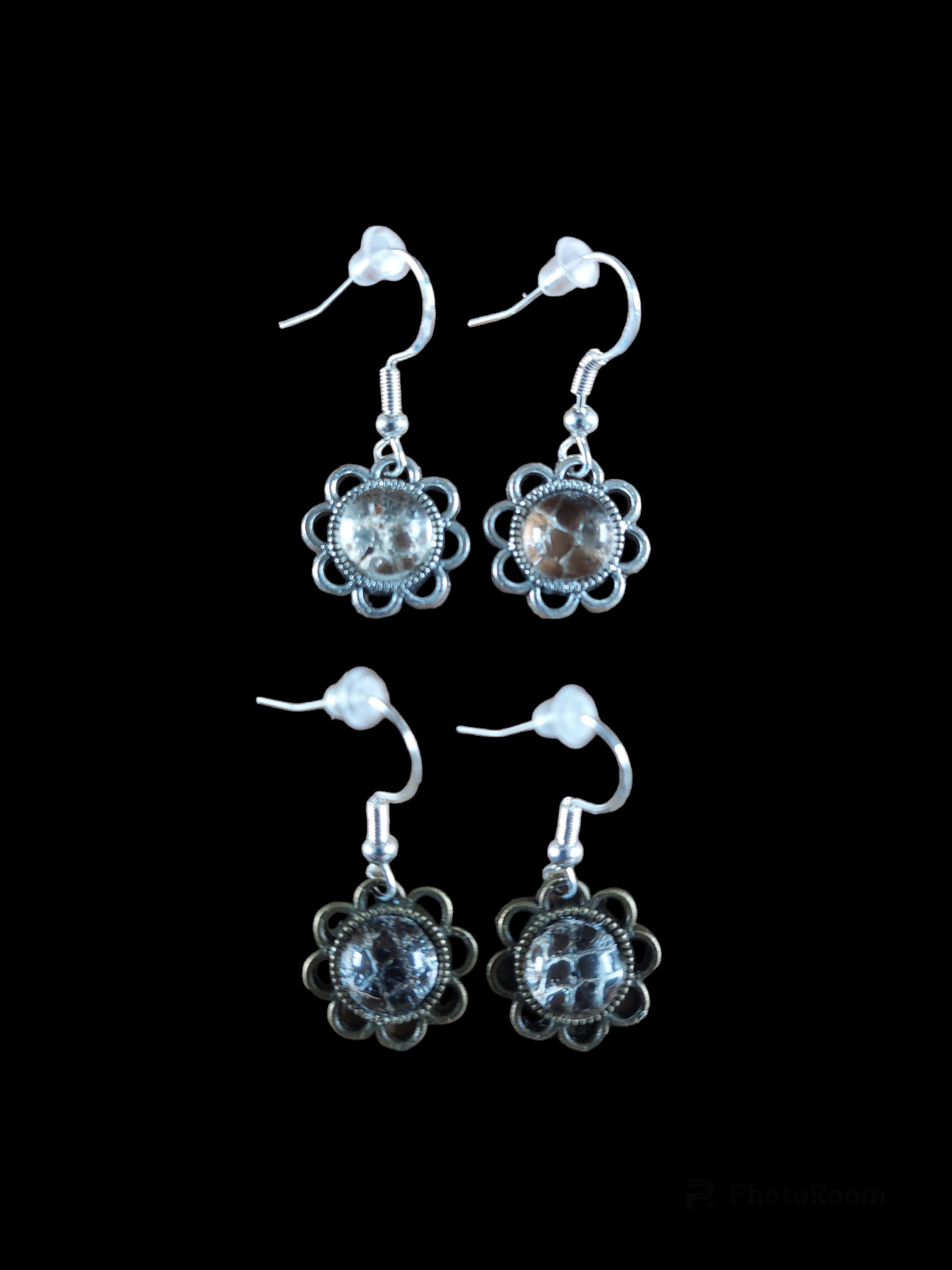The cabochons are attached to 925 sterling silver earrings.