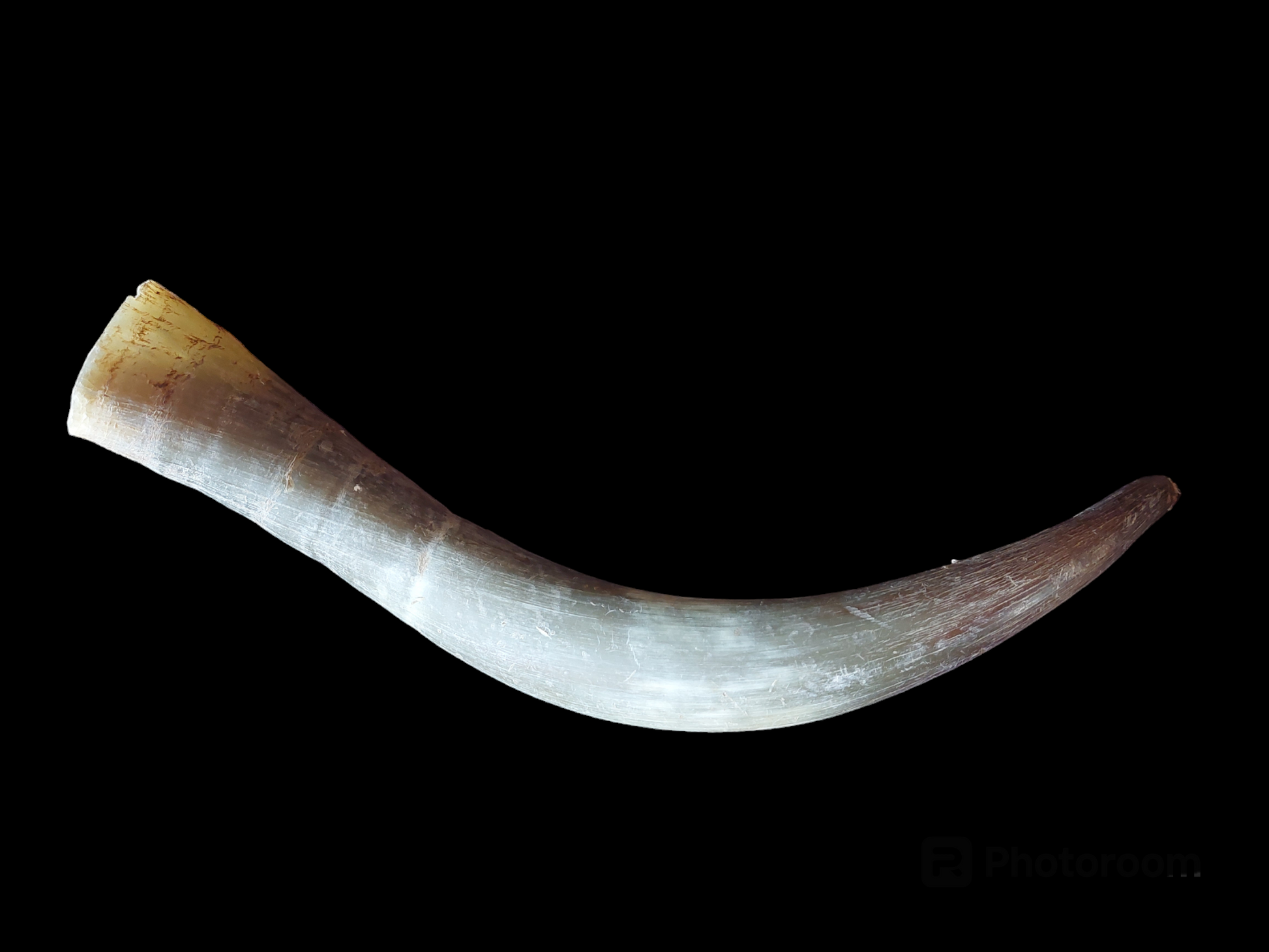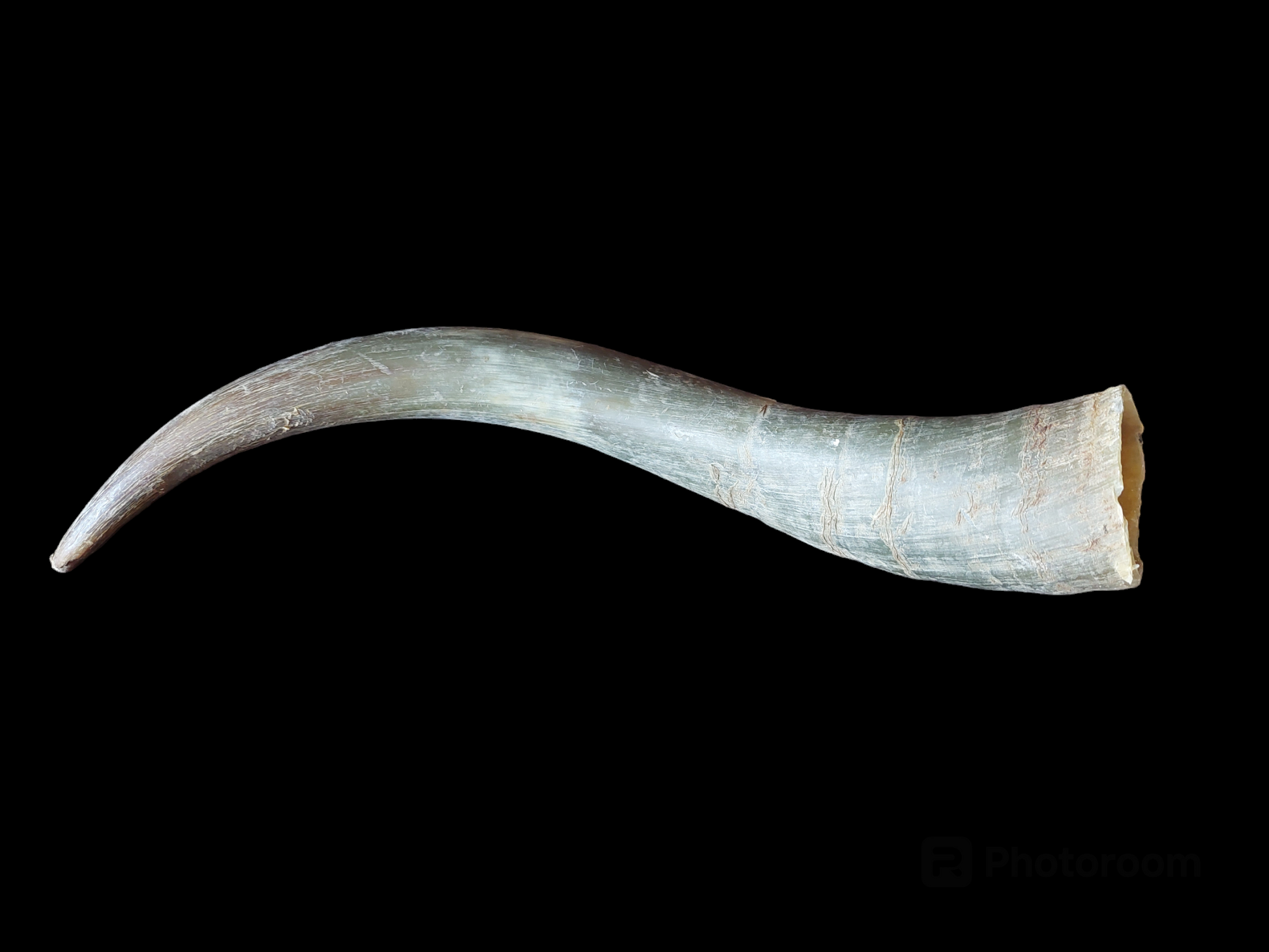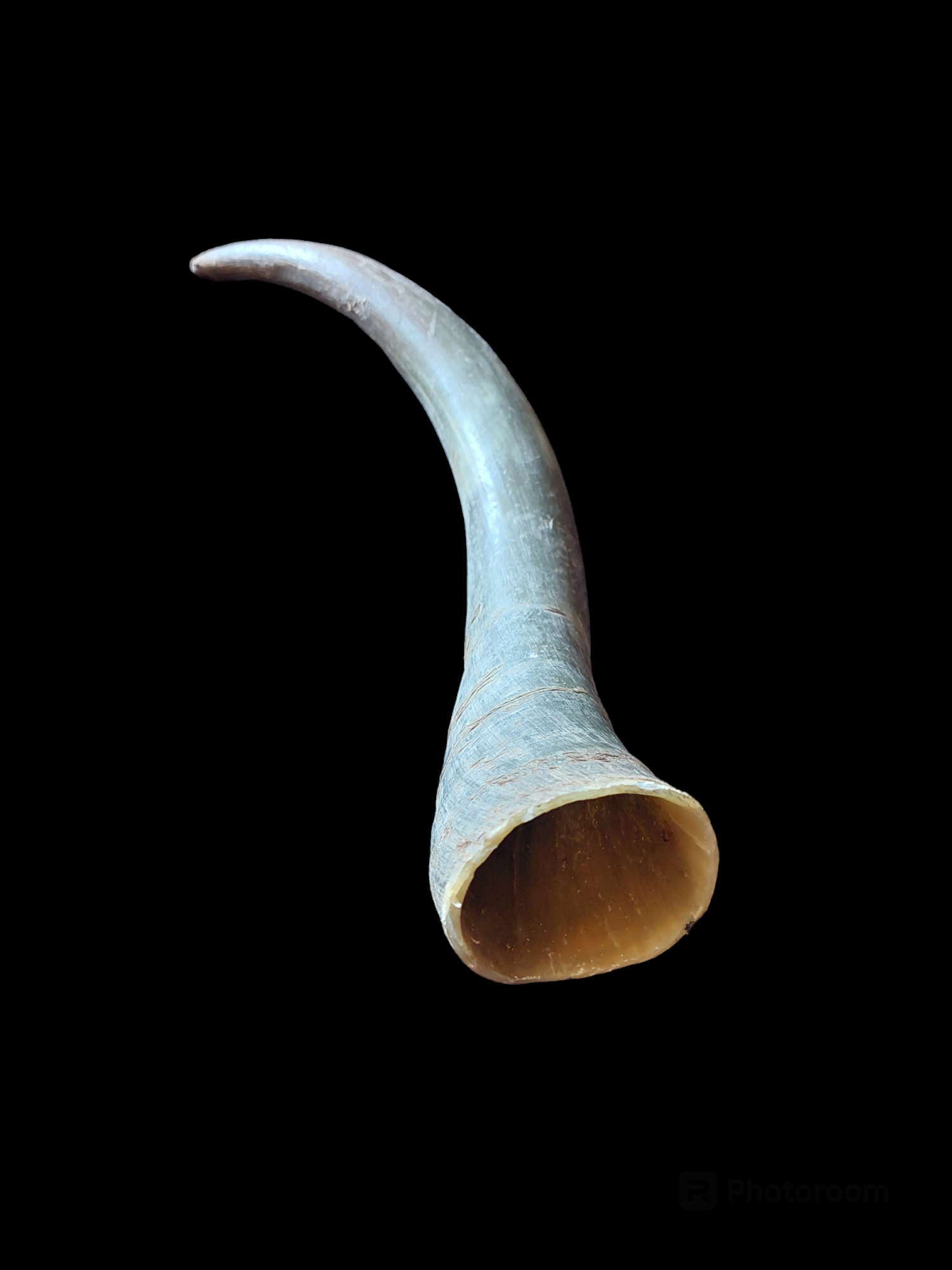 Please look closely at the pictures to observe the condition of this item. As can be seen on the pictures, this horn is in a natural, rustique condition and the tip is a bit ragged.
