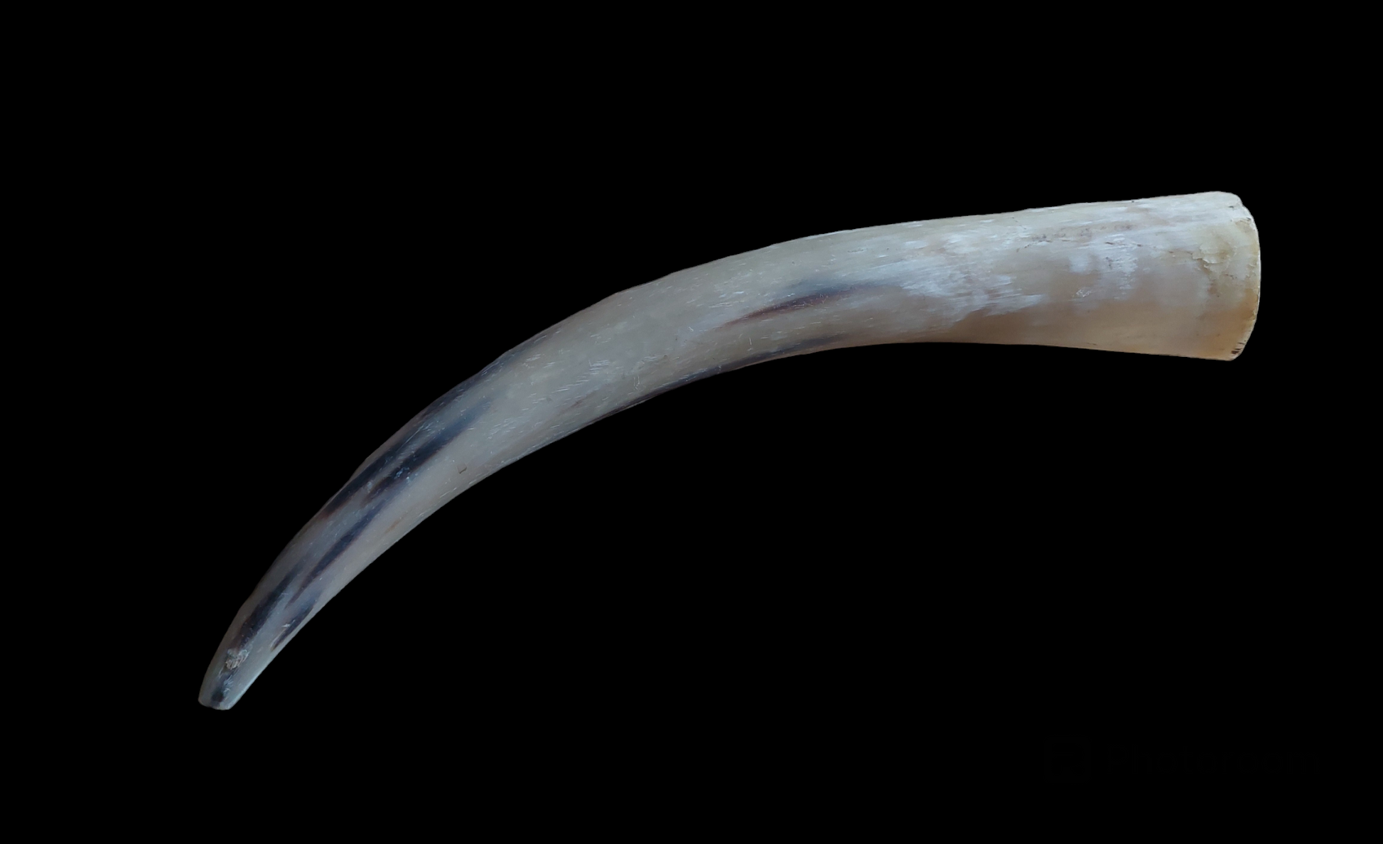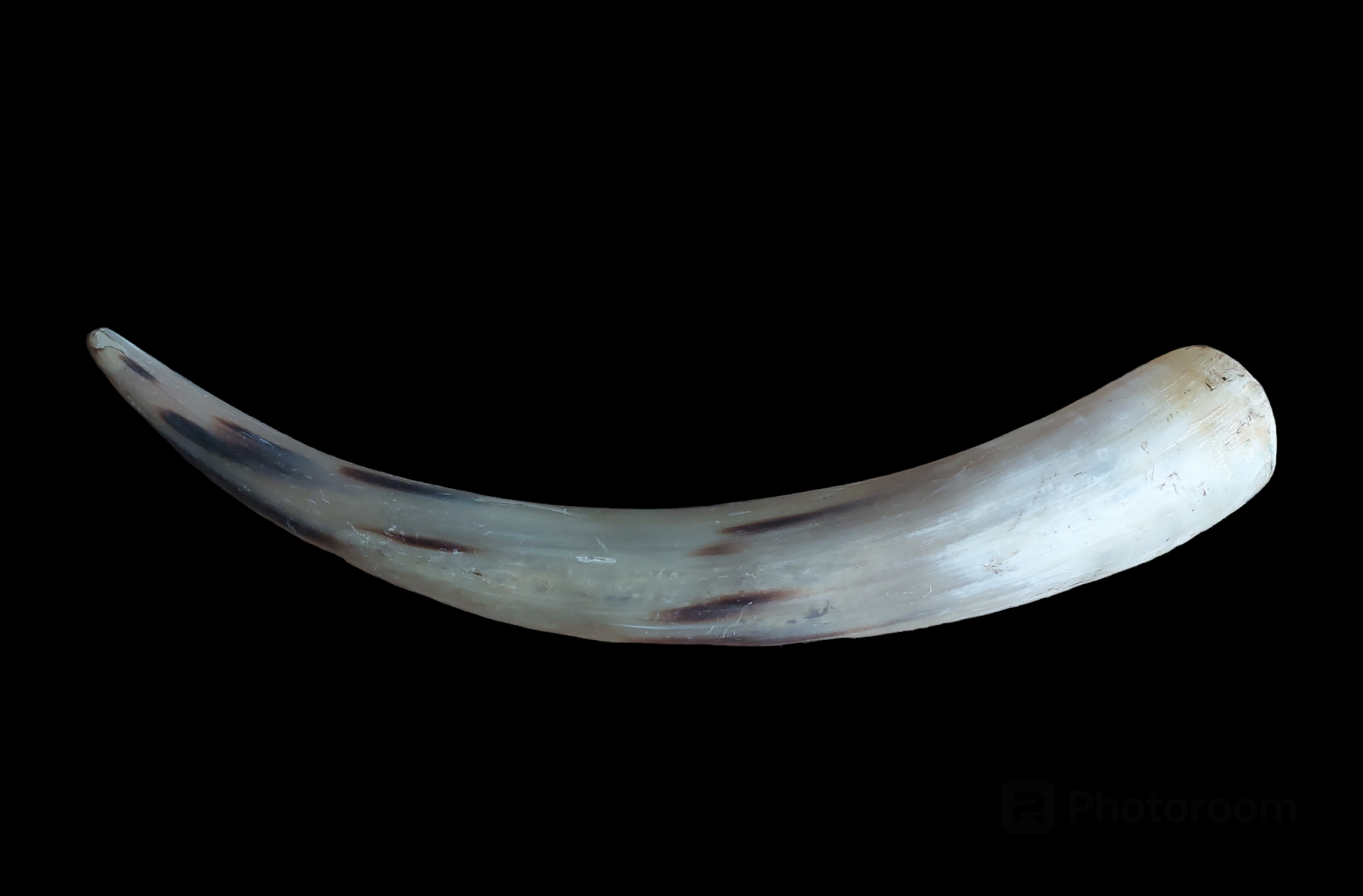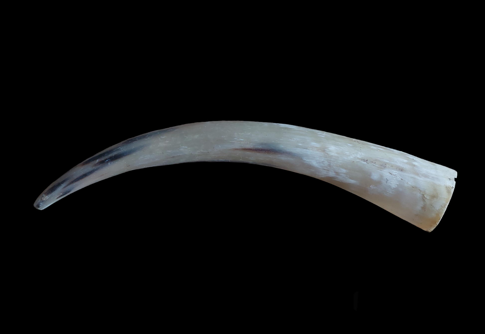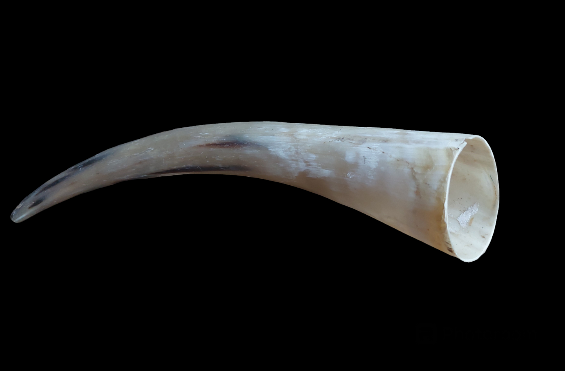 Very nice, big horn from a cow, in good condition. This horn has been polished to a soft shine. There are some minor damages to the outer keratin layer, but overall this horn is in good, stable condition.