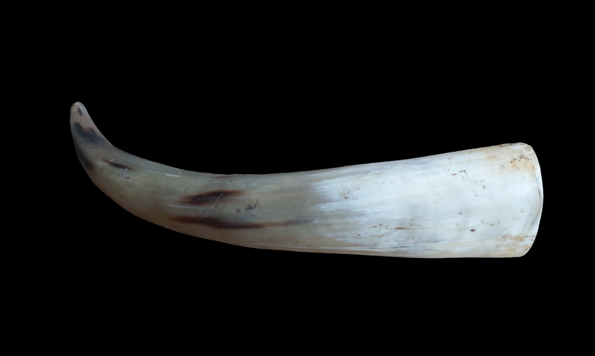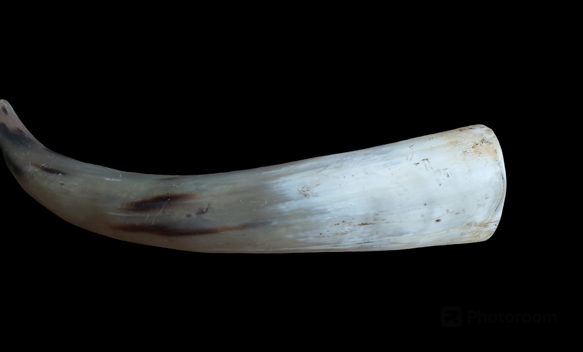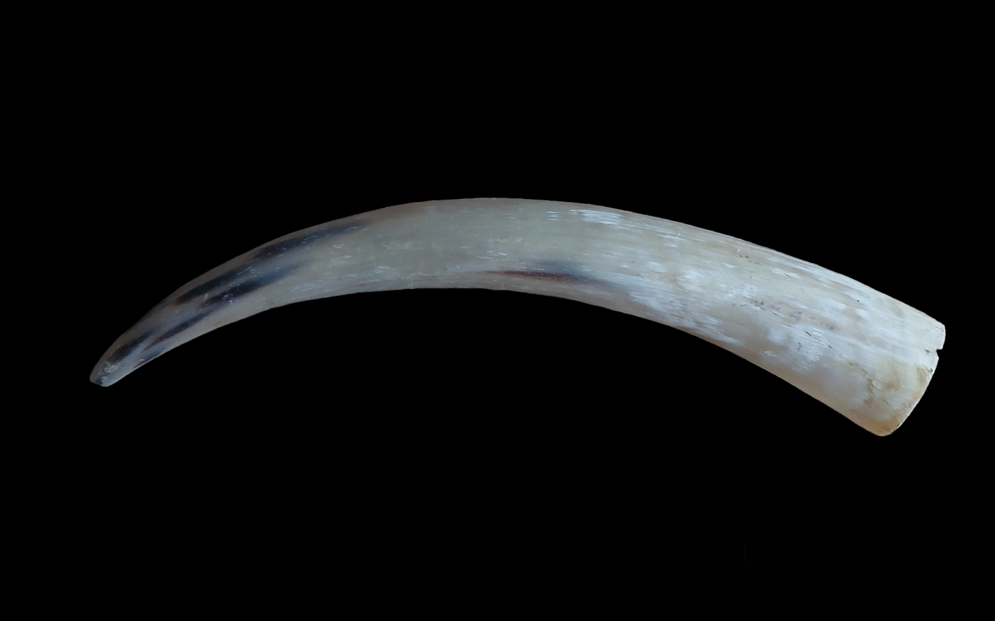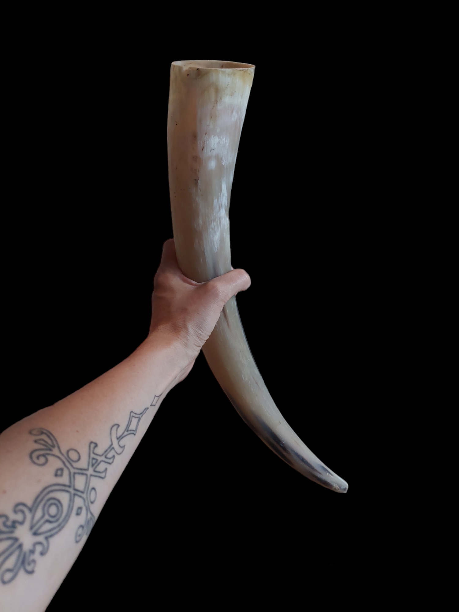 Very nice, big horn from a cow, in good condition. This horn has been polished to a soft shine. There are some minor damages to the outer keratin layer, but overall this horn is in good, stable condition.