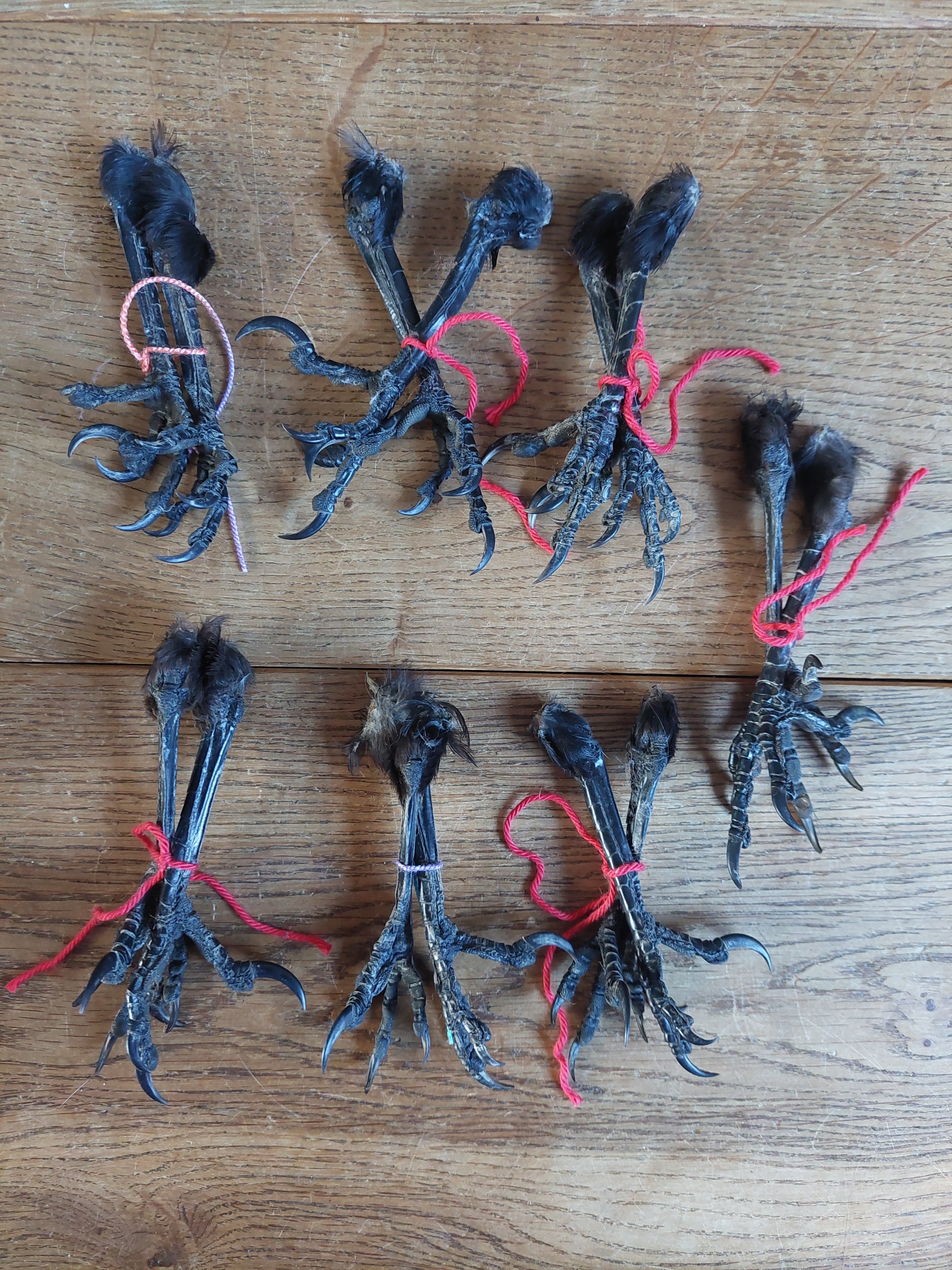 Claws from dutch black crows, dried and prepared in 'claw'-shape.