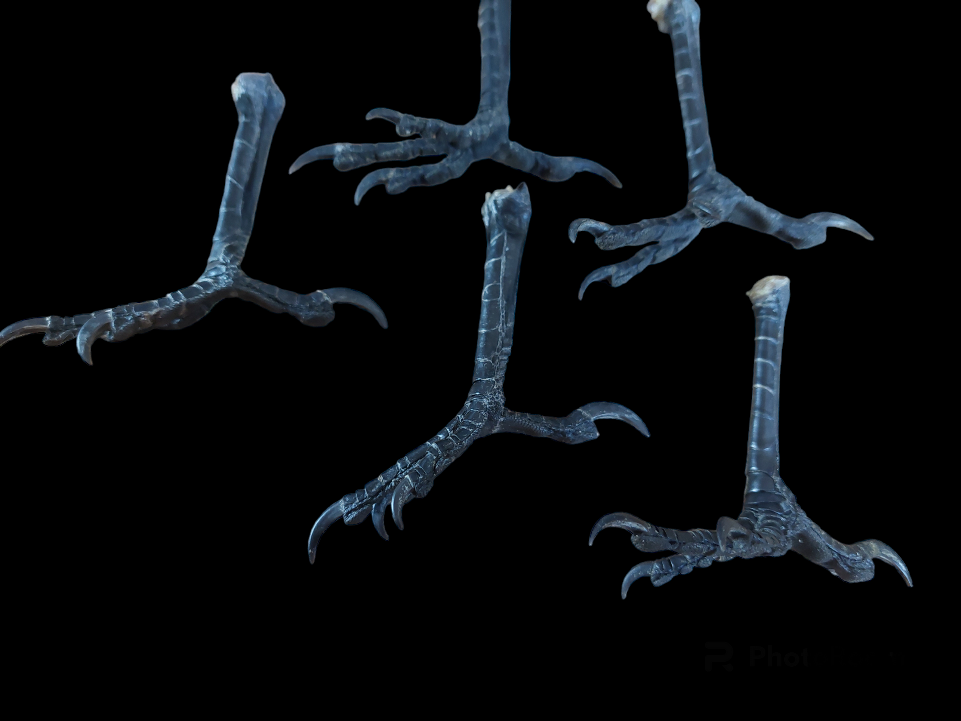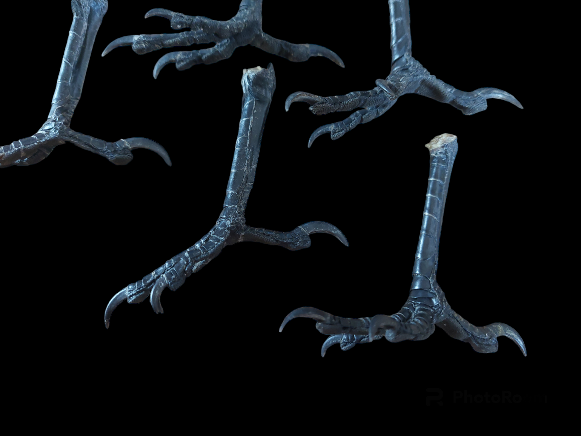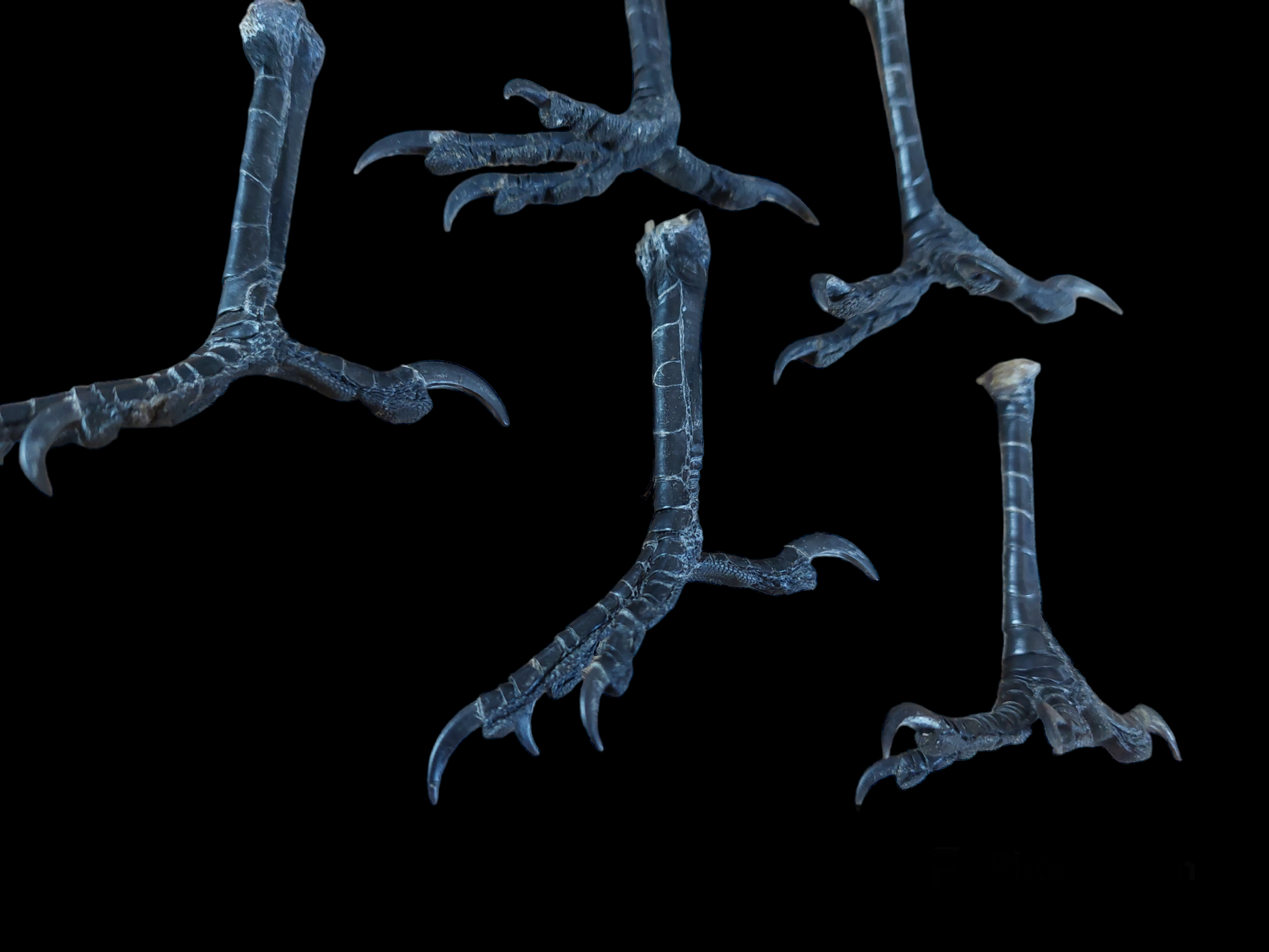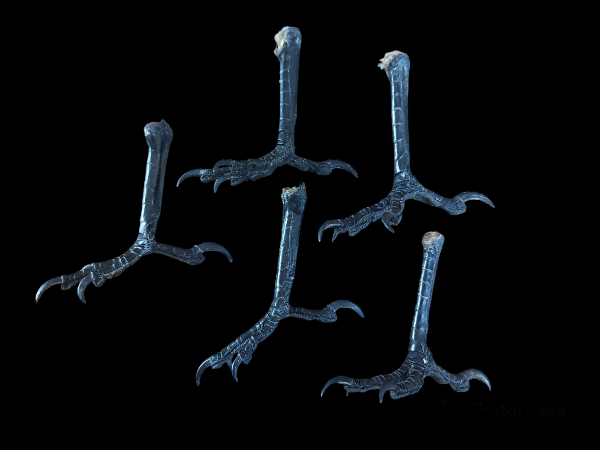 Claws from dutch black crows, dried and prepared in 'standing'-shape.