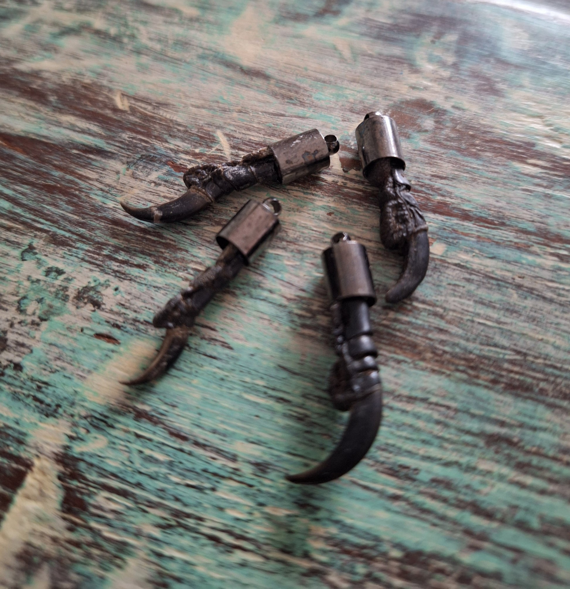 Single nails from dutch black crows turned into pendants with a antique silver colored metal beadcap (with eyelet). A subtle yet eyecatching pendant to connect your personal jewelry or ritual attributes with the spirit of Crow.