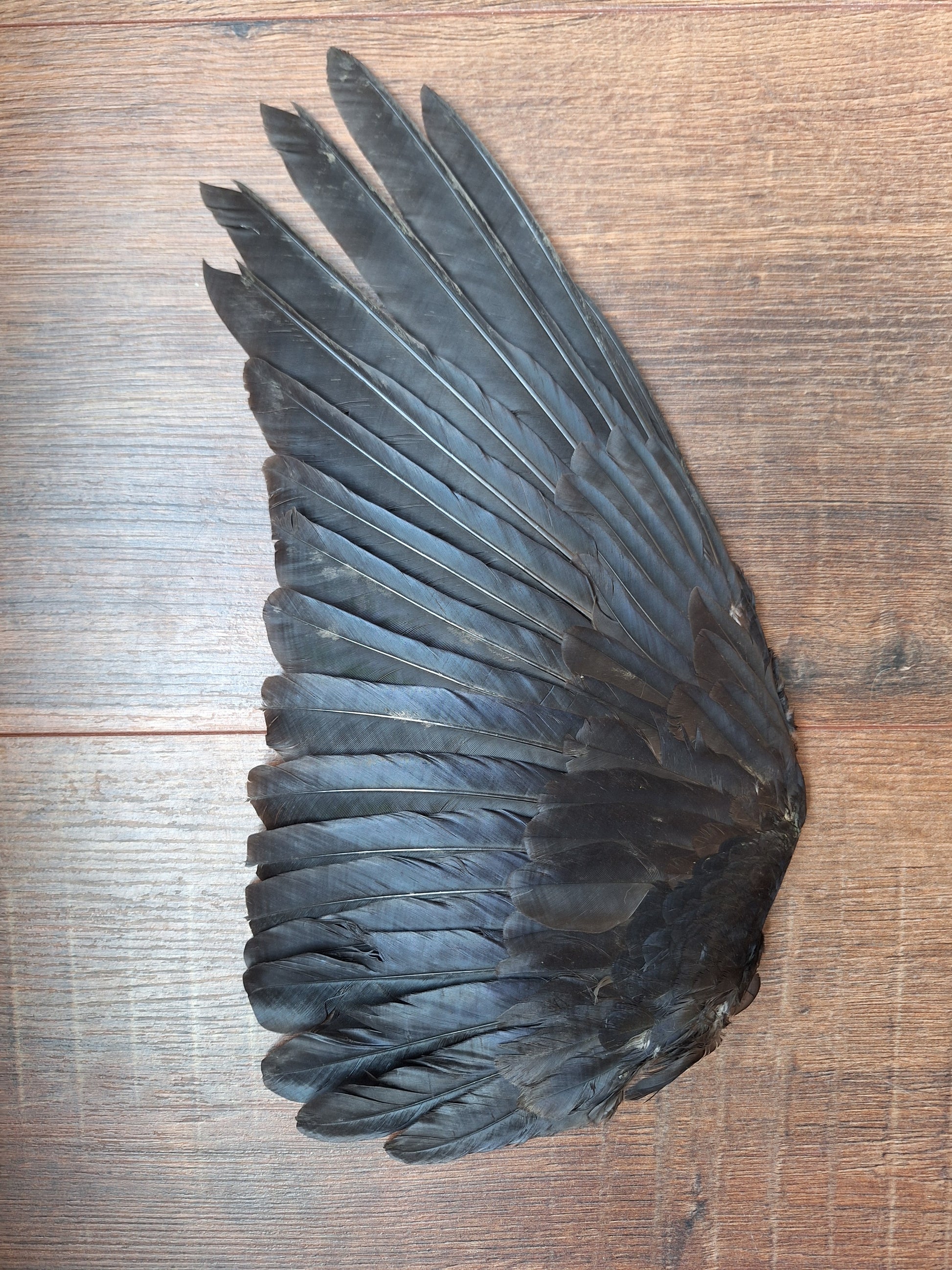 Left wing from a dutch black crow. Dried and prepared, ready to use in all your personal ritual, crafting or decorational purposes.