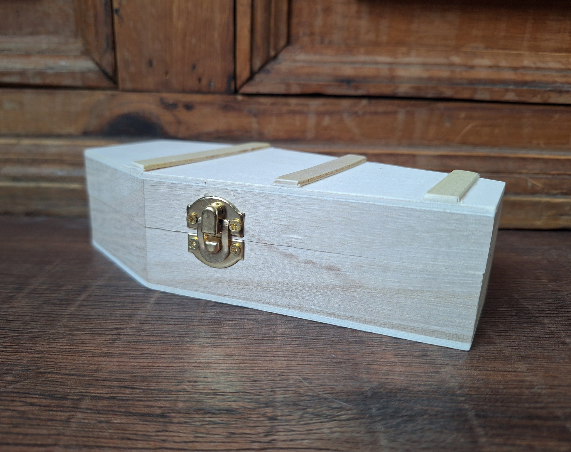 Sizes; the skull is approximately 9,5 centimeters long. The wooden coffin measures approximately 15,5 centimeters long, 8,5 centimeters wide and 4 centimeters high (including the lid).