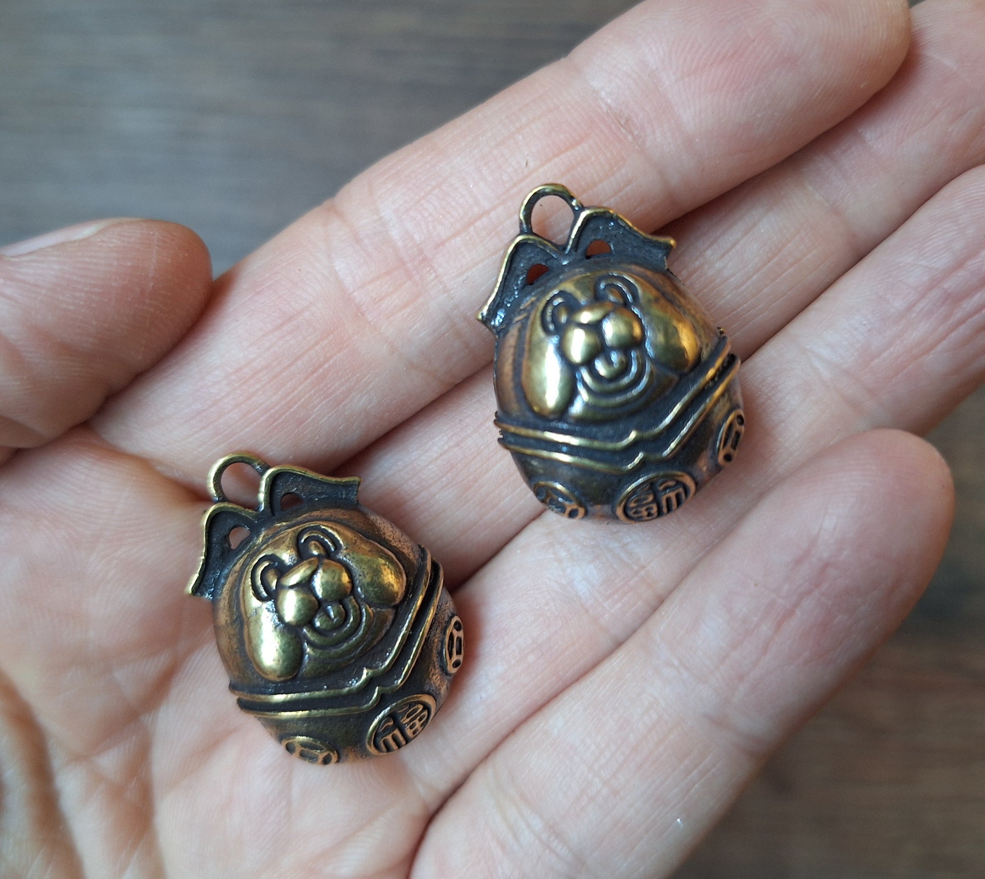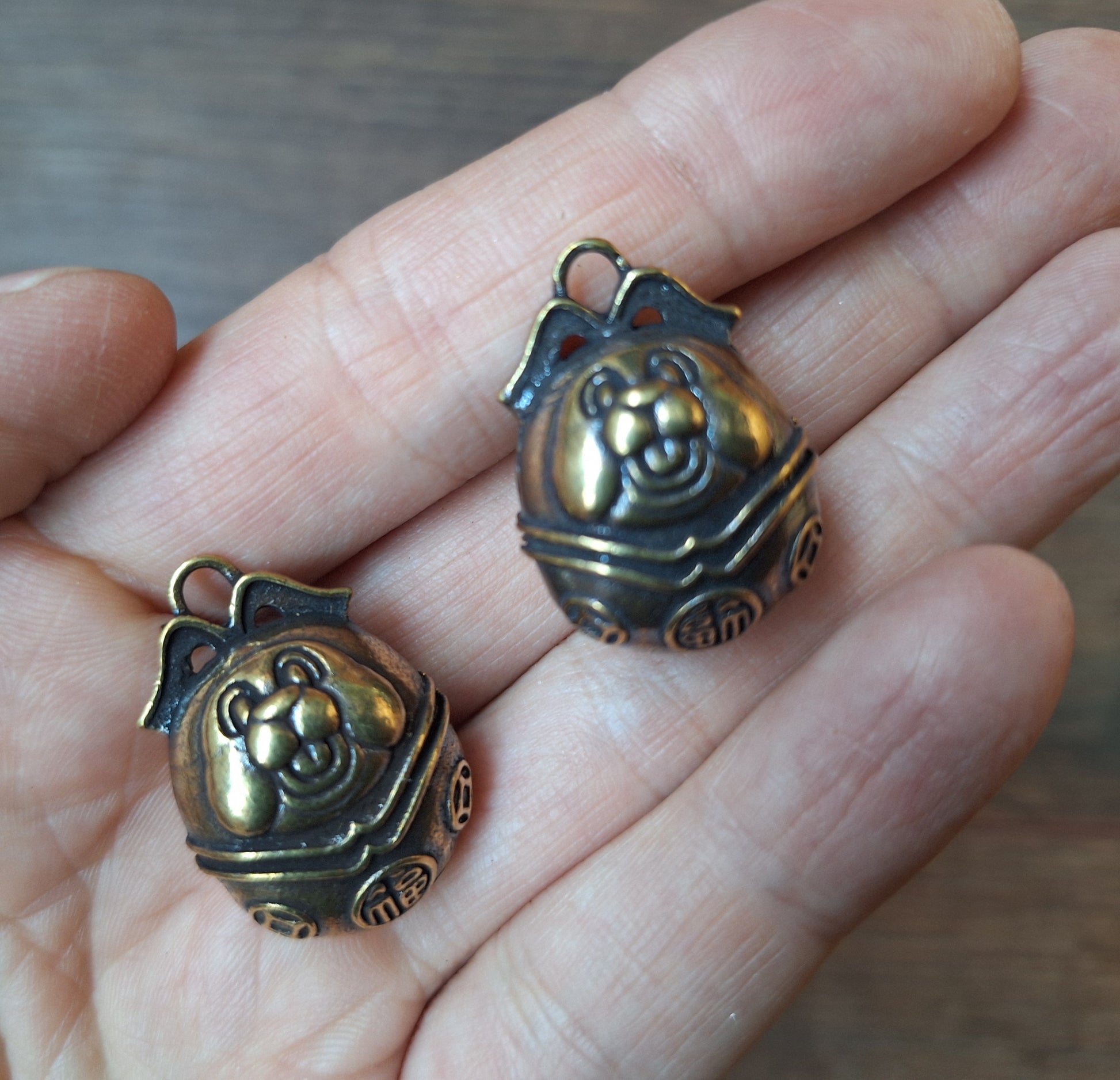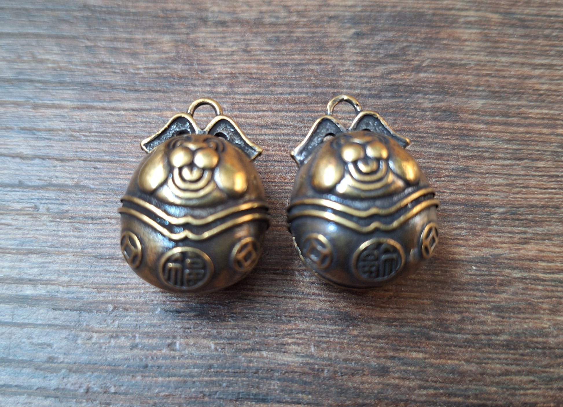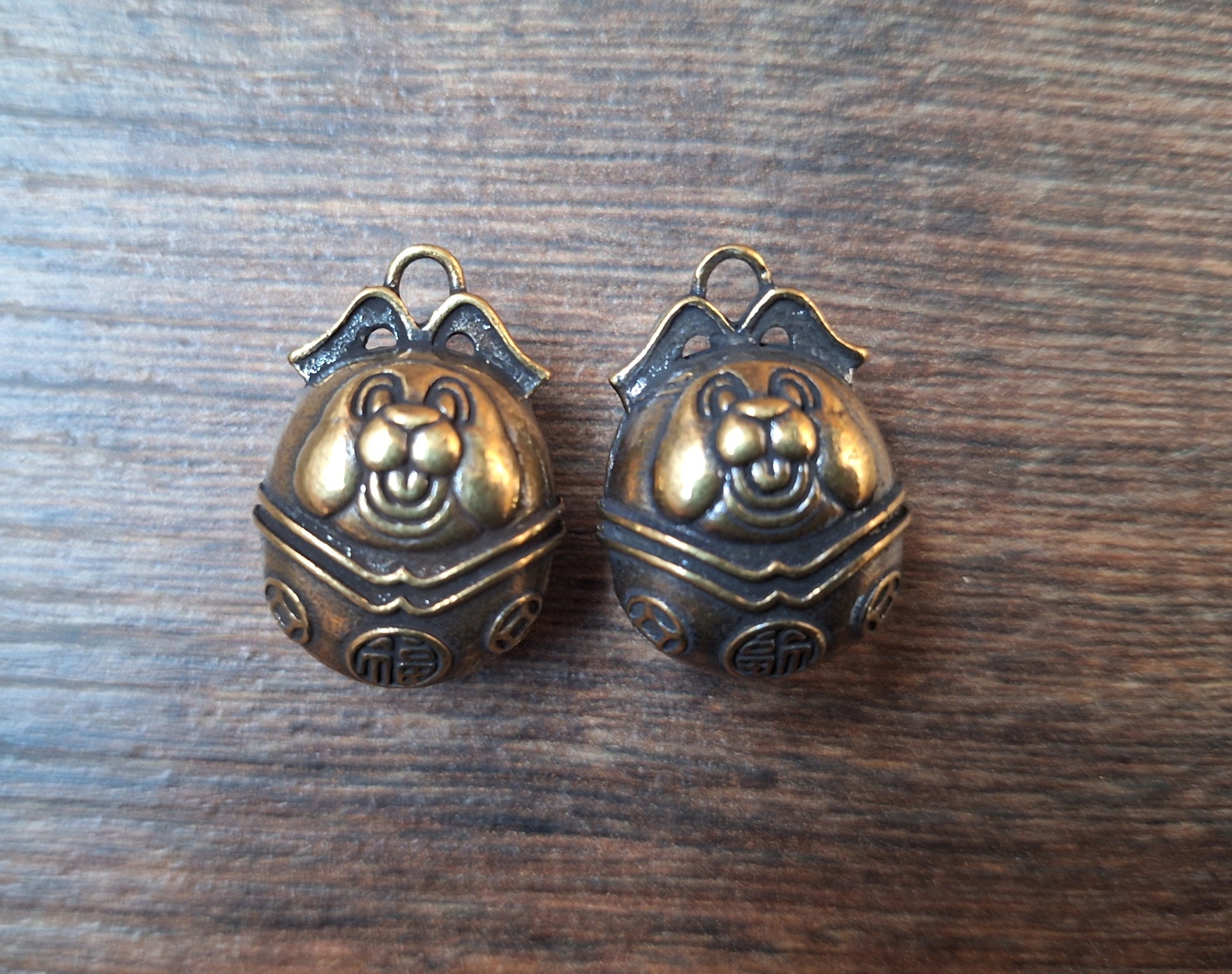 These very nice bells show the depiction of a dog. In Chinese symbolism, the dog is considered to be one of the best companions. They are highly regarded as being loyal, friendly, reliable and compassionate. They are known for their strong sense of responsibility, their protective nature and their willingness to go above and beyond for their loved ones.