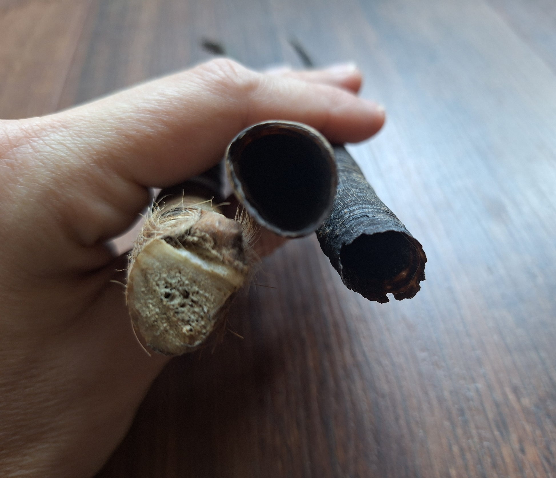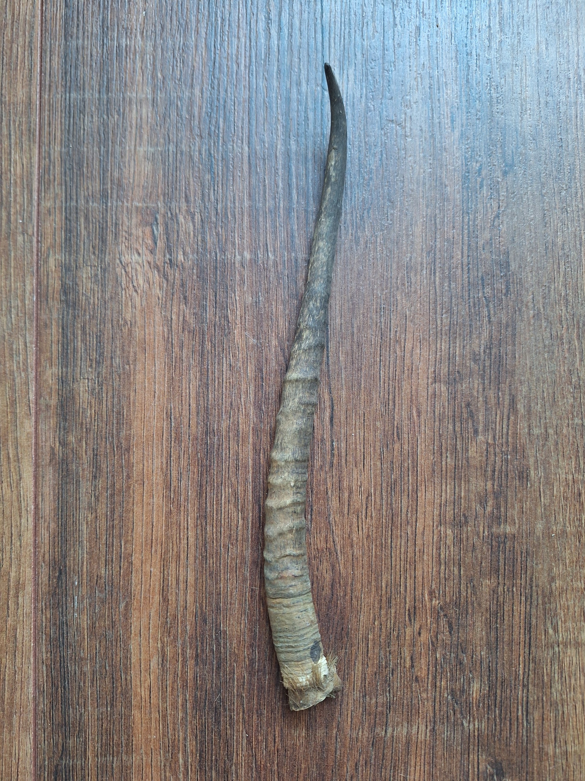 #2; hollow horn, no bone-core. Approximately 18 centimeters long.