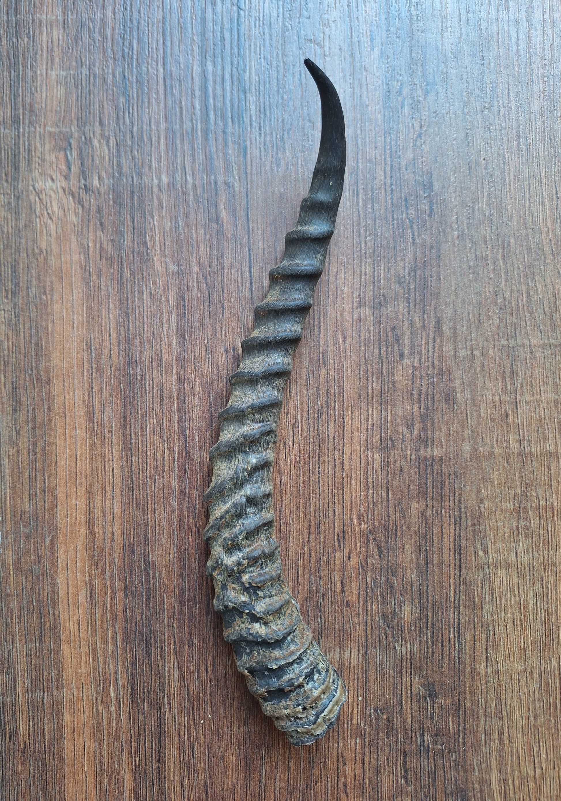 #2; hollow horn, no bone-core. Approximately 24 centimeters long.