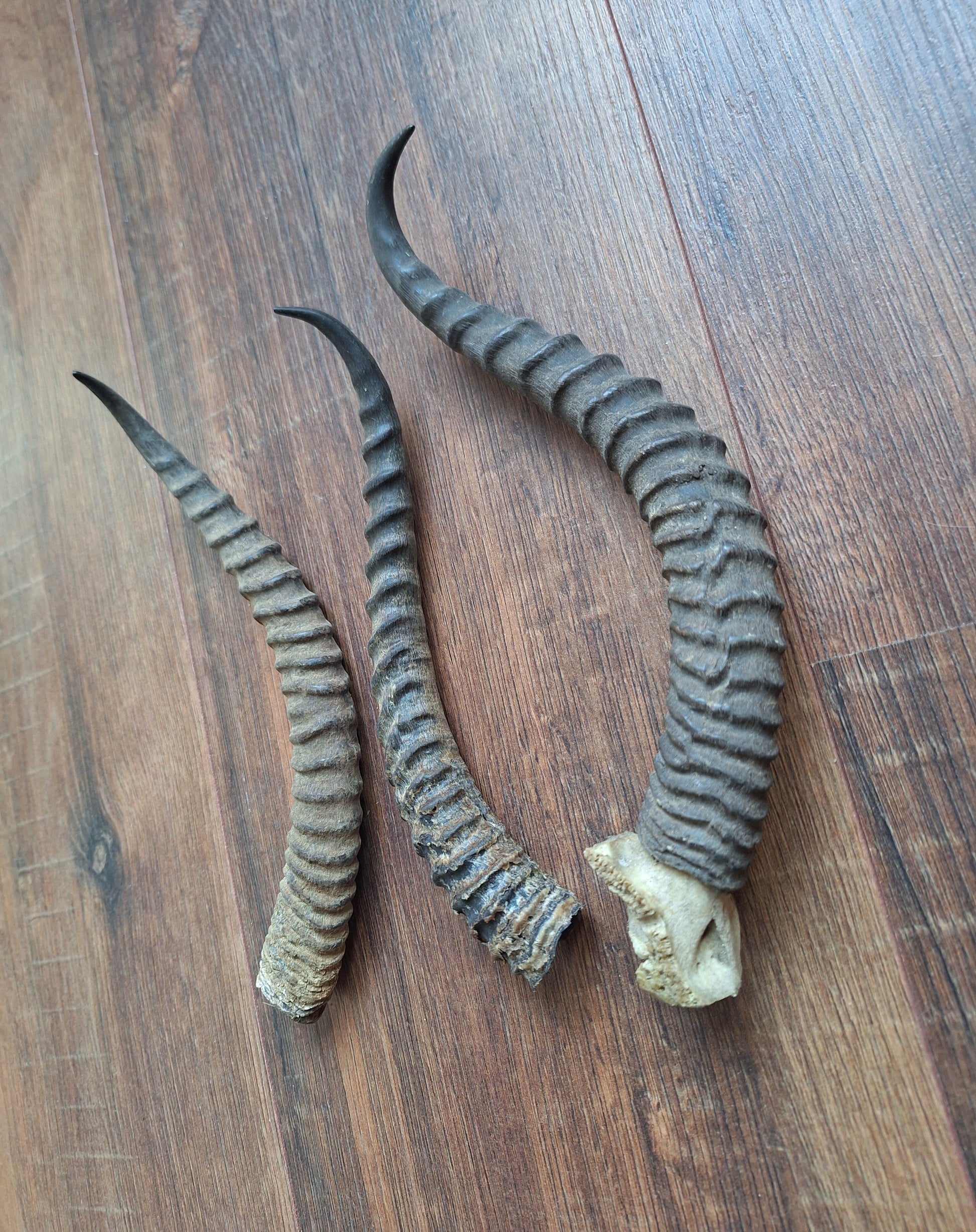 Single horns from dorcas gazelles. In natural, rustique, but overall good and solid condition. Great for all kinds of ritual, crafting or decorational purposes.