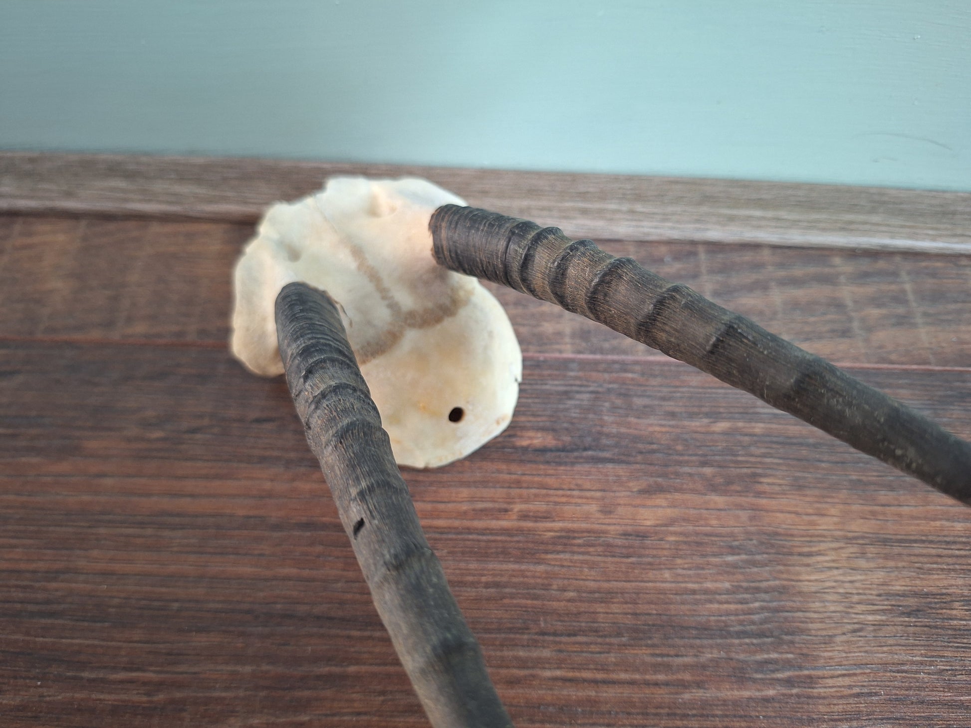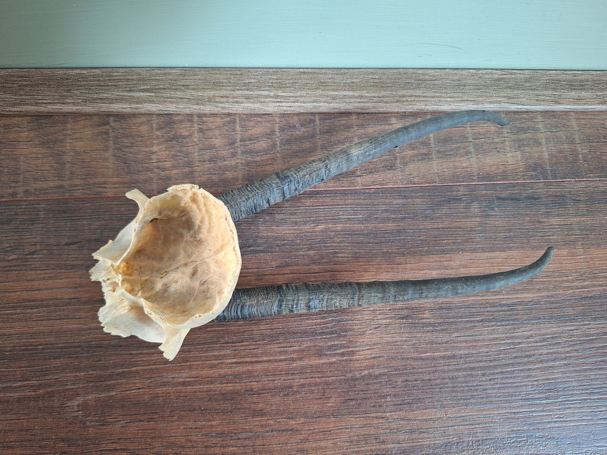 Sizes; The piece of skull cap measured alone is approximately 9 centimeters long, The horns approximately 17 centimeters.