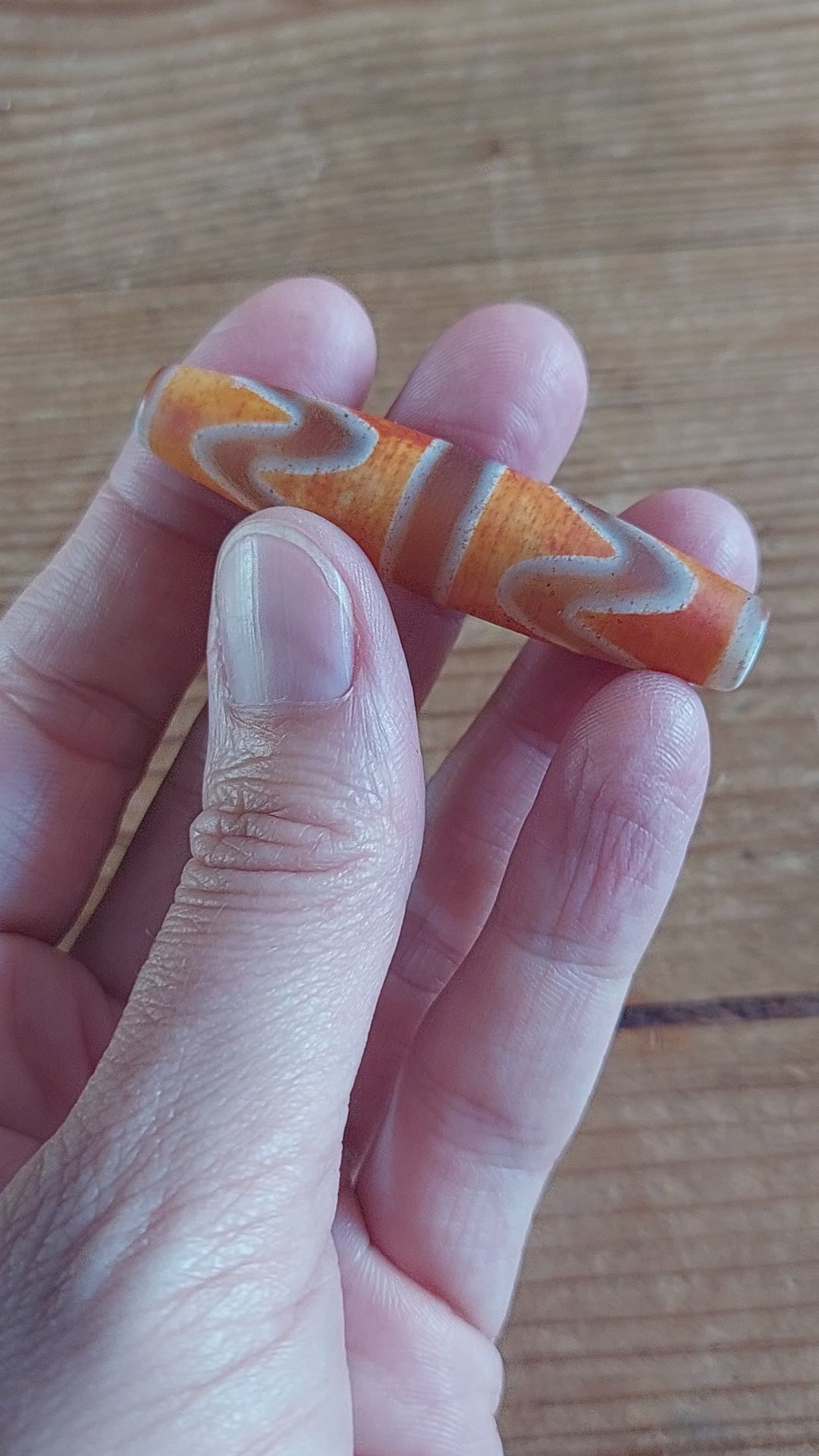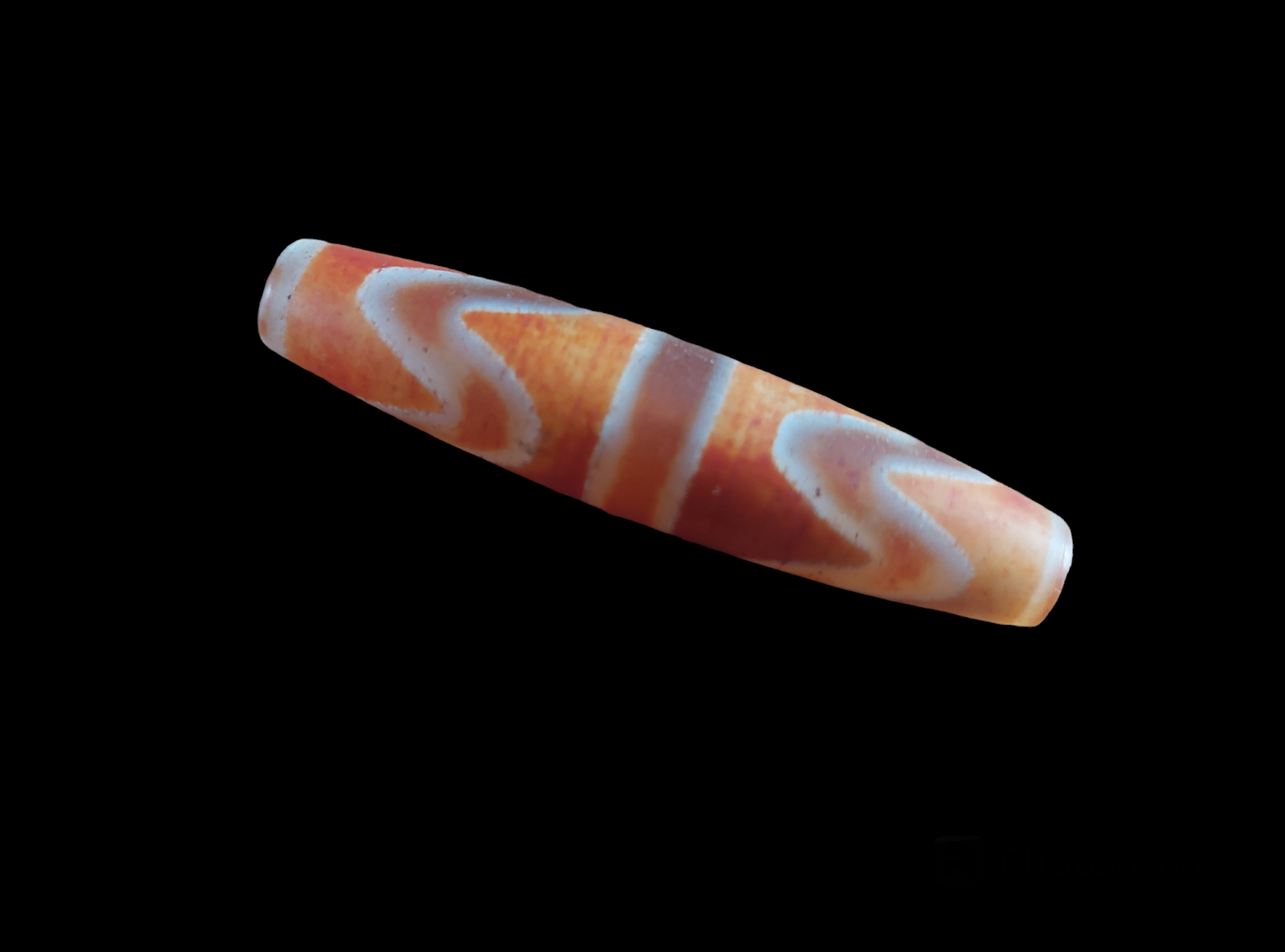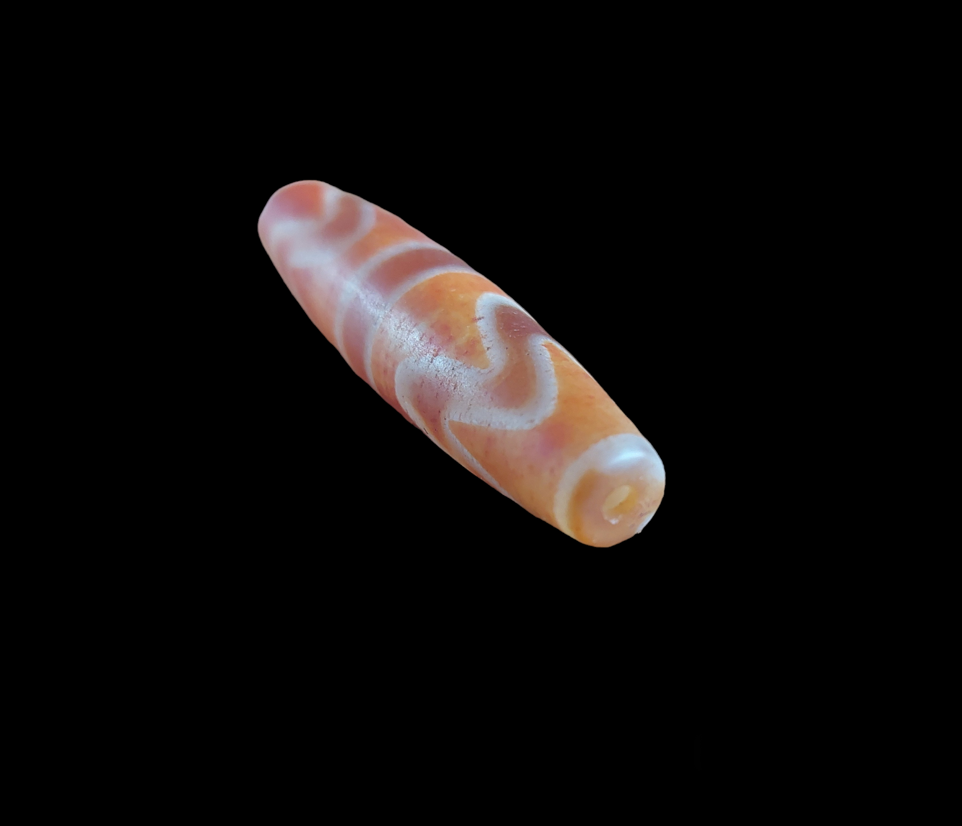 Material: natural carnelian, bright orange with beige-white decoration, mat surface