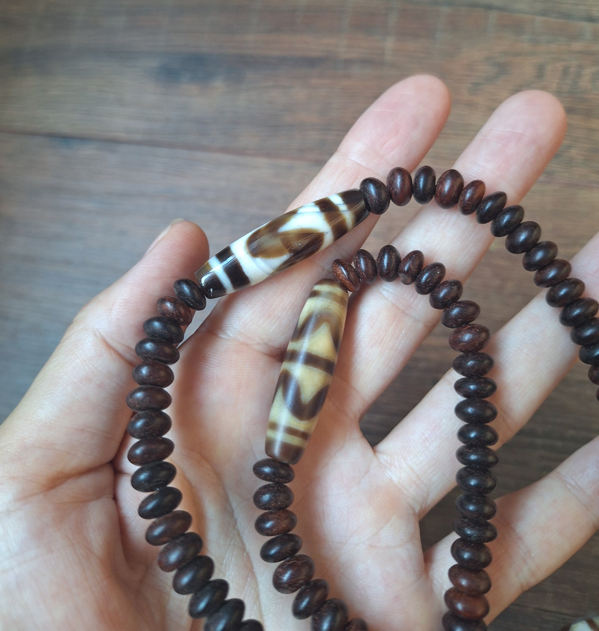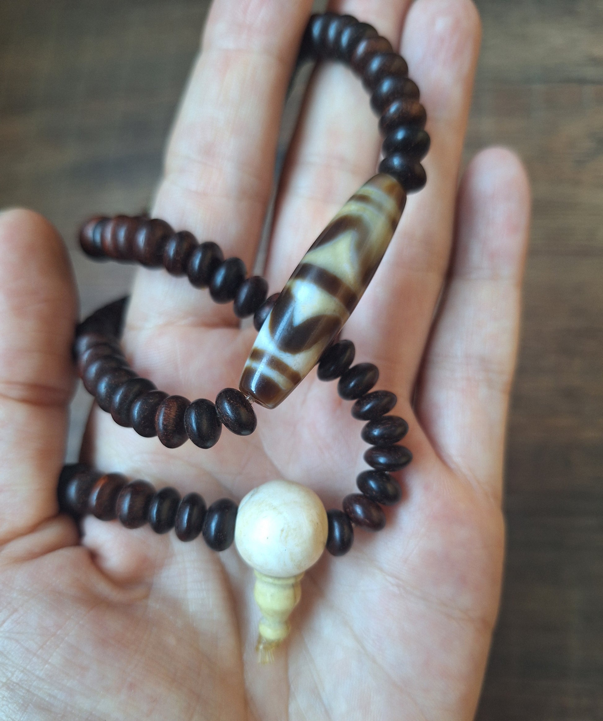 Dzi bead Wave mala necklace