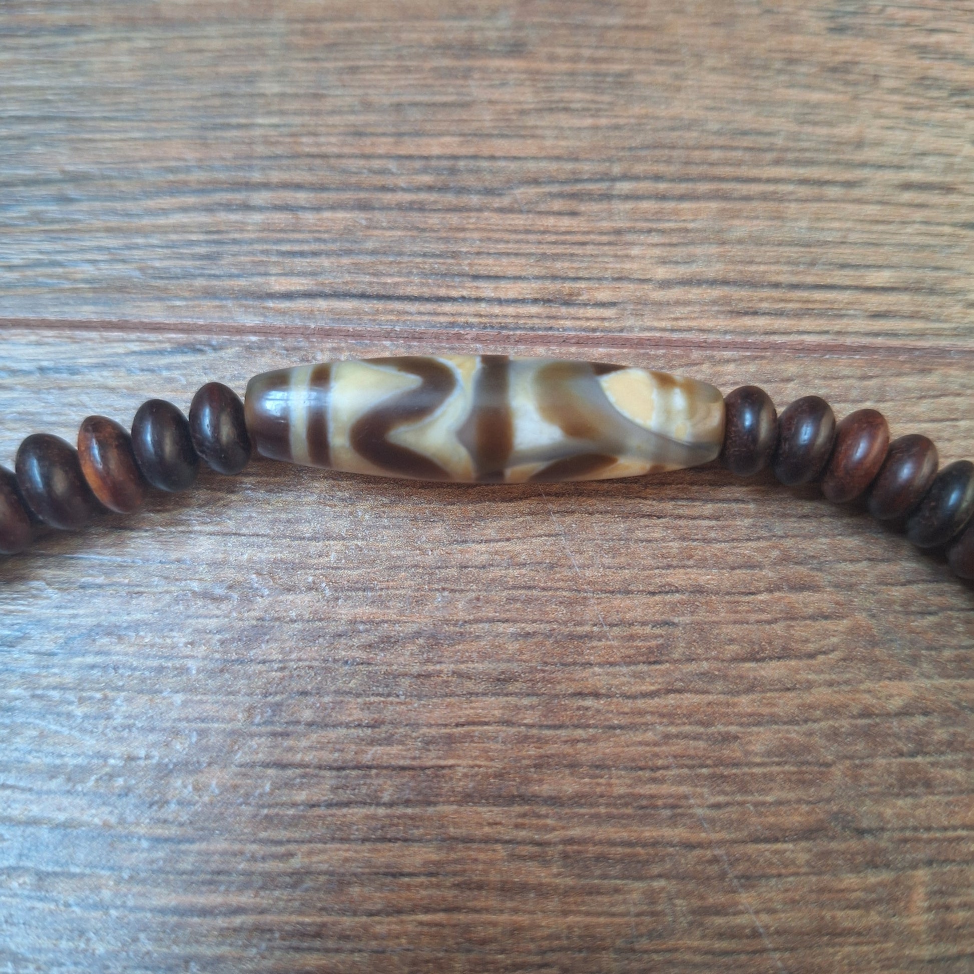 On the other hand, water is associated with a healthy flow of emotions. Emotions that are suppressed, denied or ignored, can become stuck deep within, accumulating more and more to an unhealthy and even toxic inner state, boiling up at times to outbursts of mental or physical problems. The wave dzi bead supports in unlocking these stuck emotions and releasing them in a healthy way, thus transforming them into vital energy.