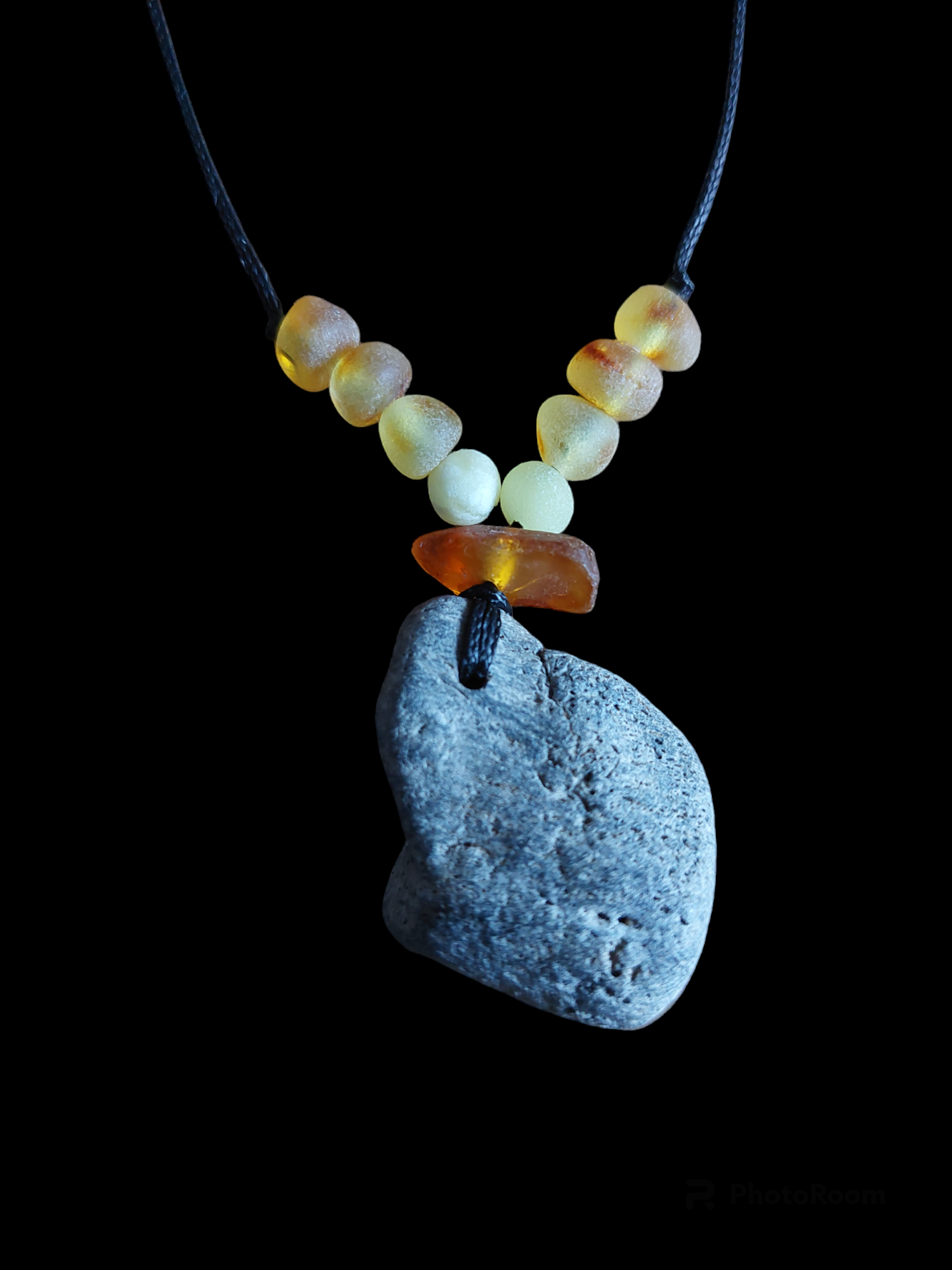 Fossilized bone and amber amulet necklace #3