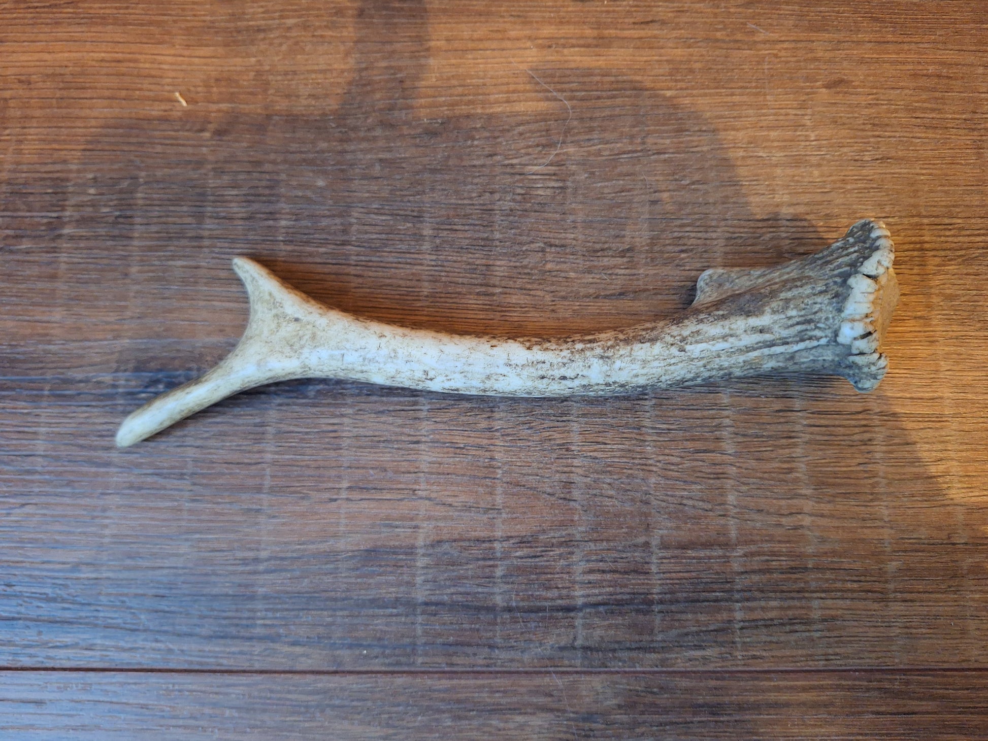Size; approximately 21 centimeters, measured in a straight line next to the antler.