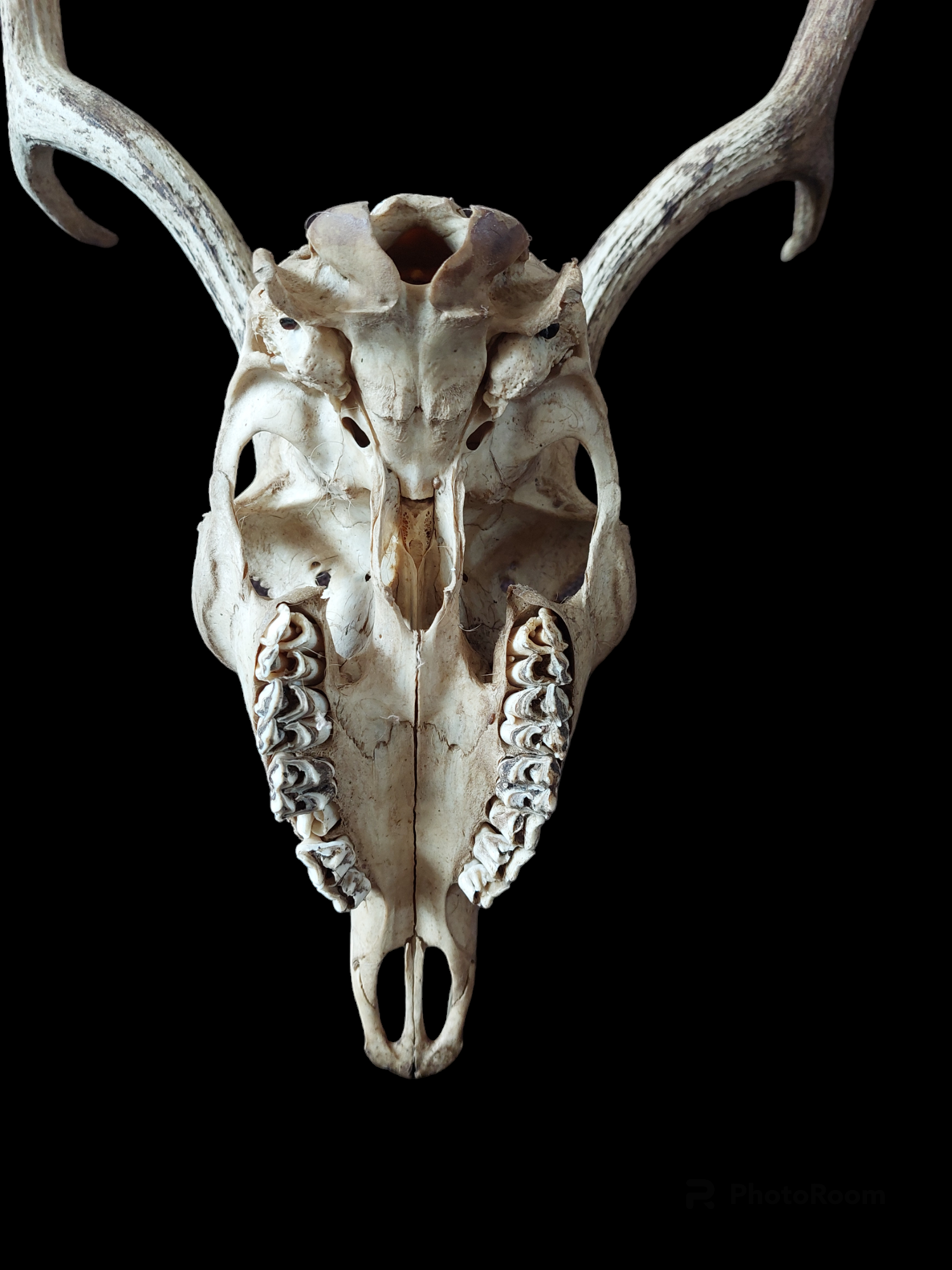 Sizes: Antlers are approximately 40 centimeters long (measured in a straight line, next to the antlers). Skull size is approximately 25 centimeters long and 9 centimeters high.