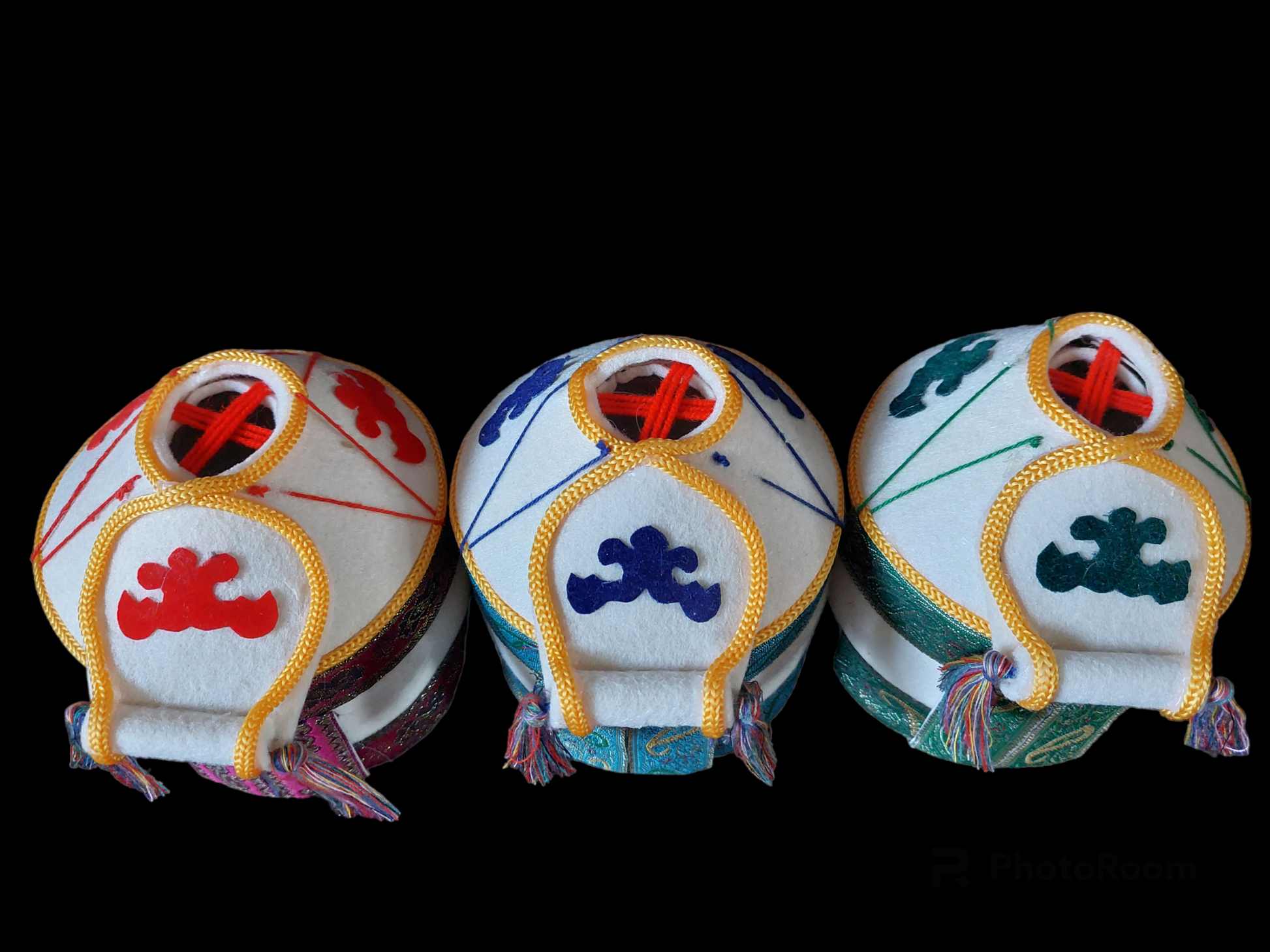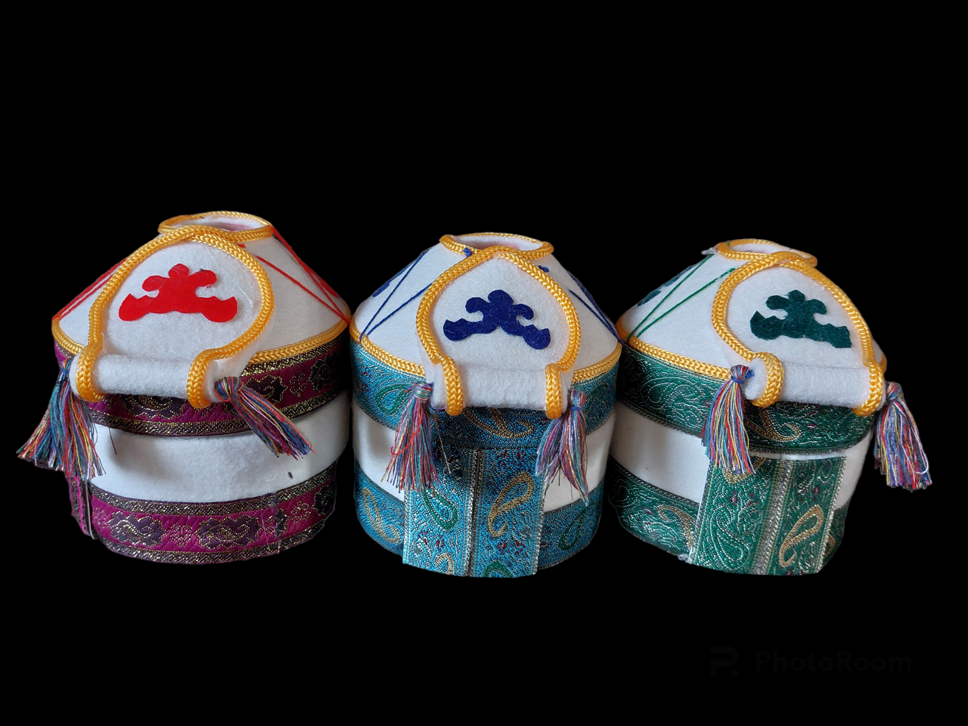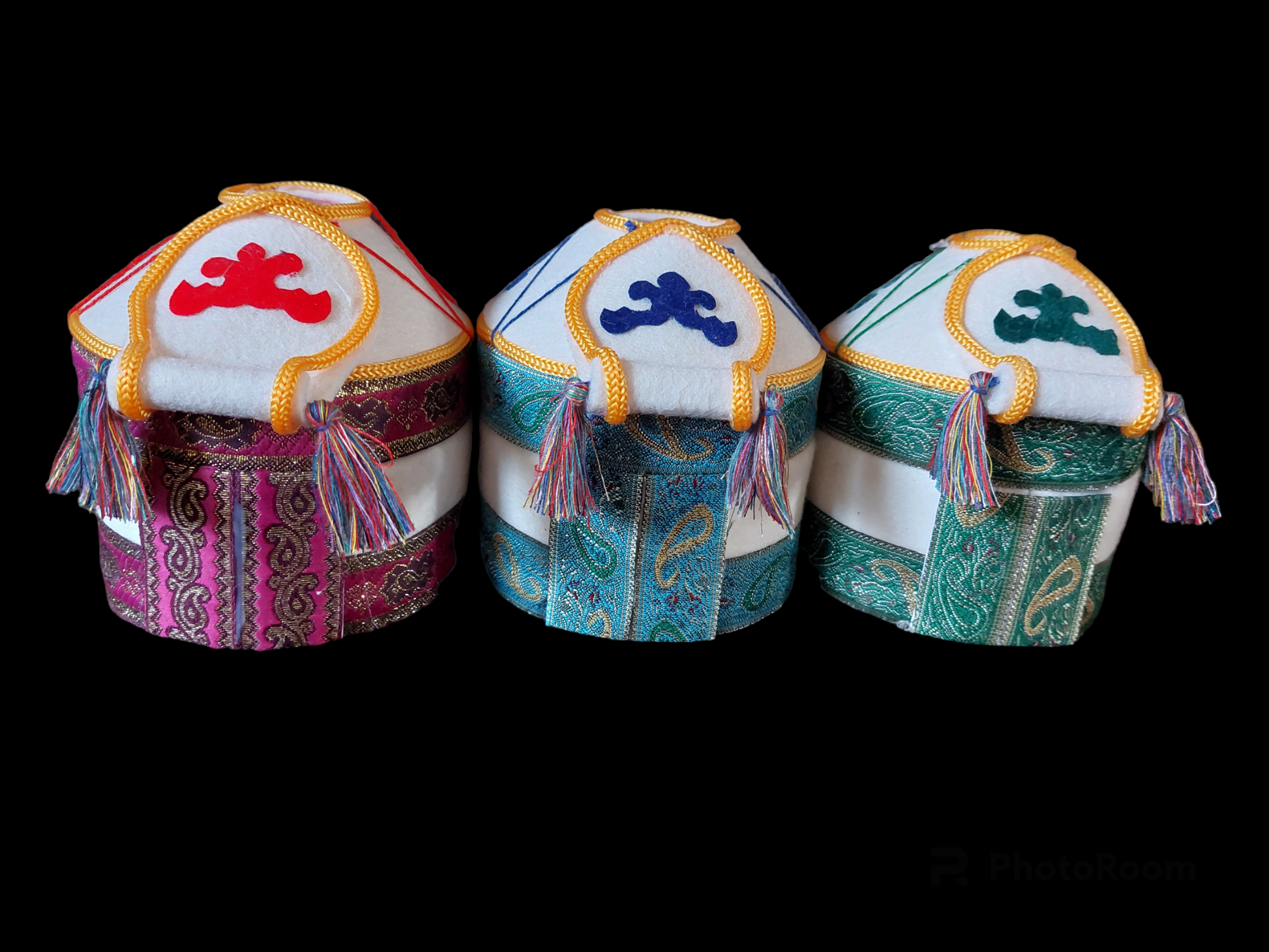 Very nice storage boxes made with felt and colorful decorations, resembling the shape of the round tents, traditionally used by nomadic people in Siberian and Central-Asian territories.