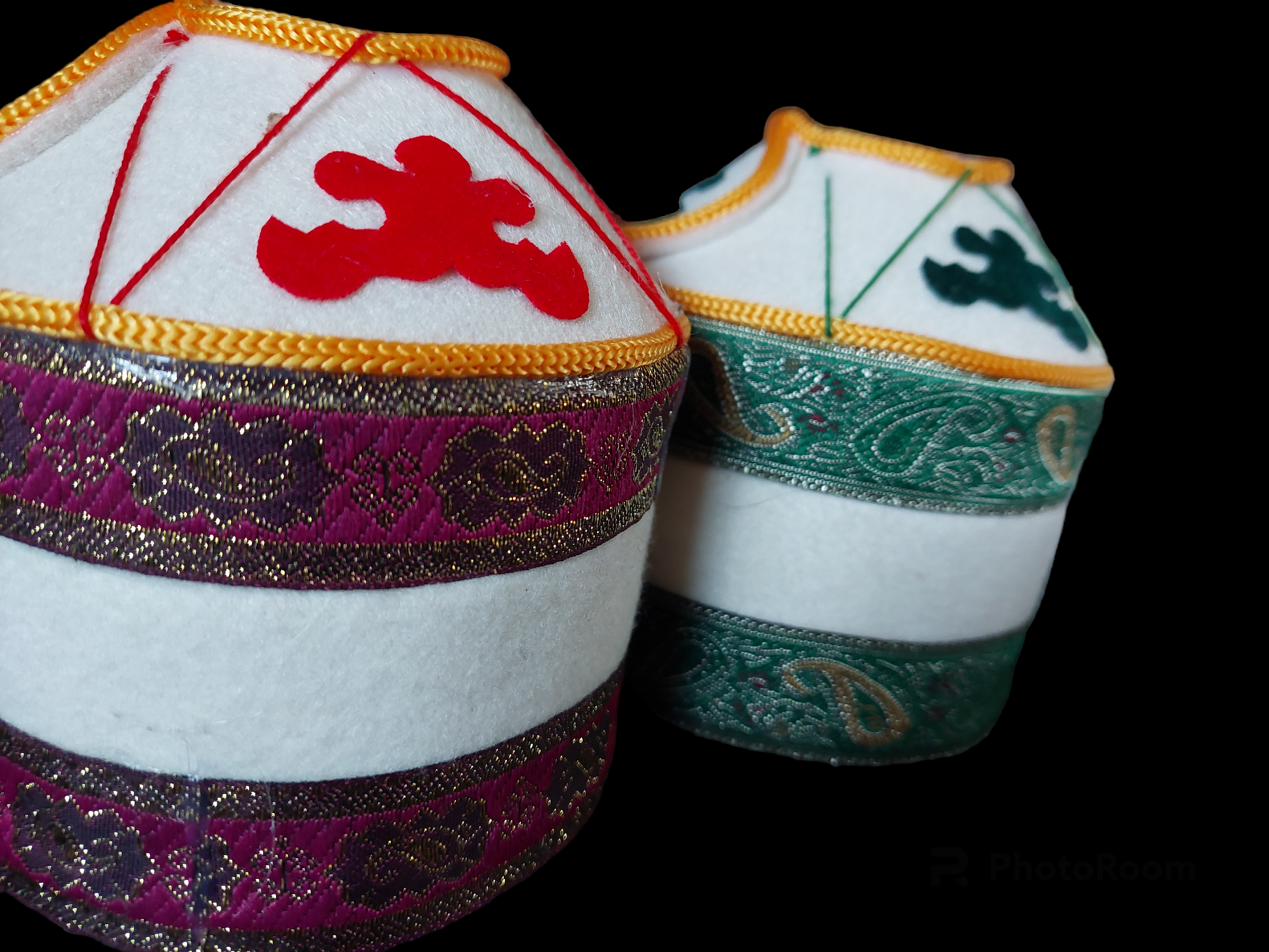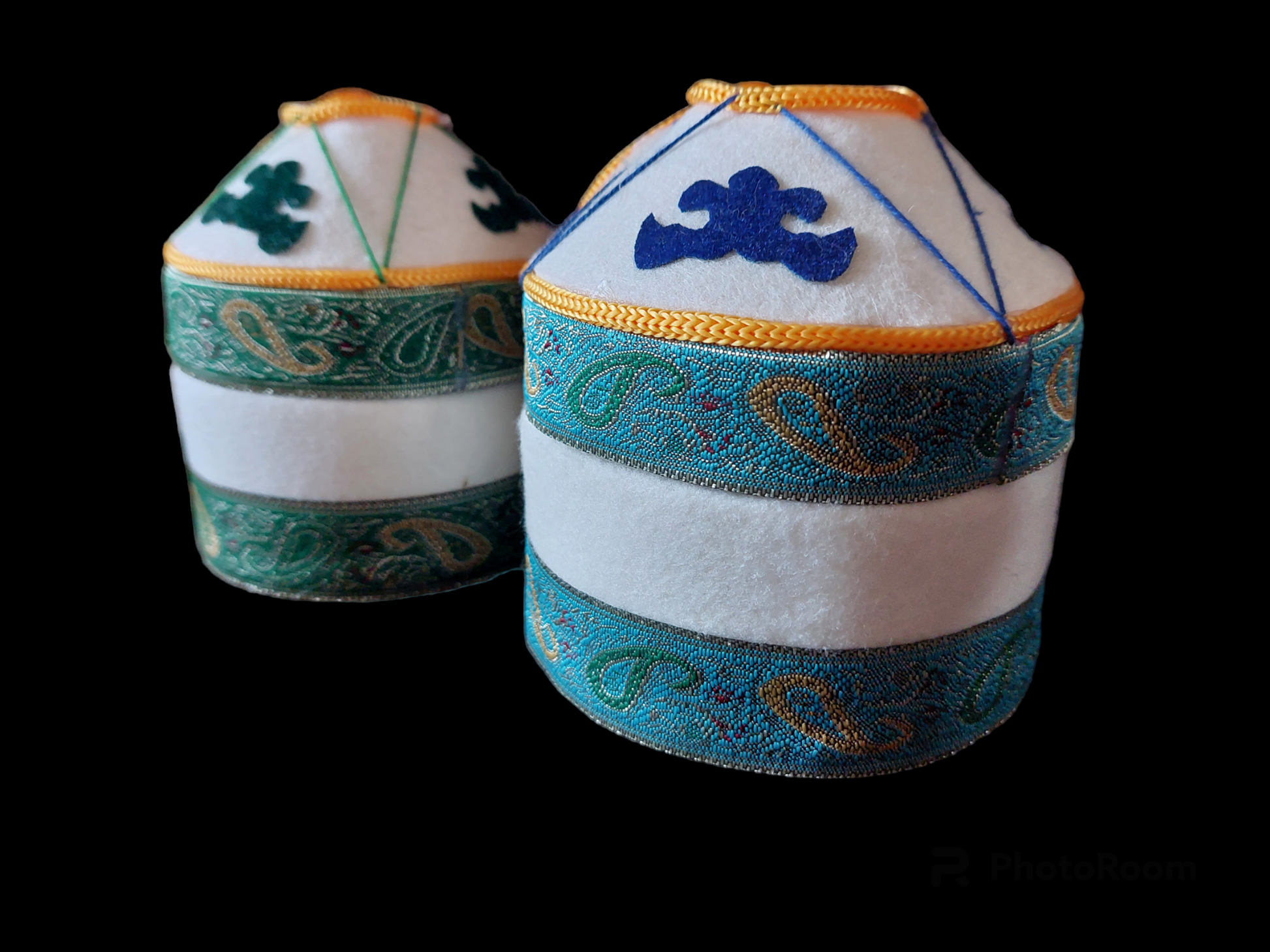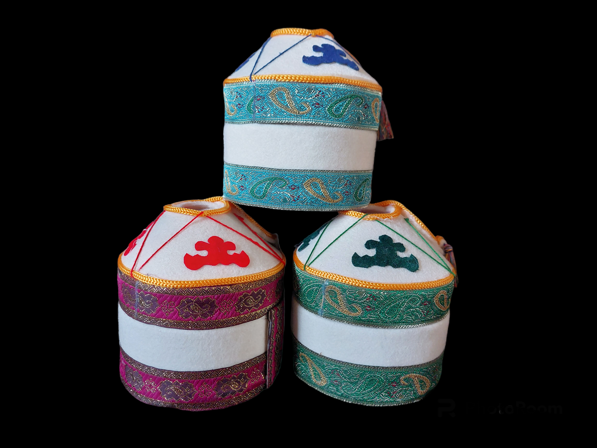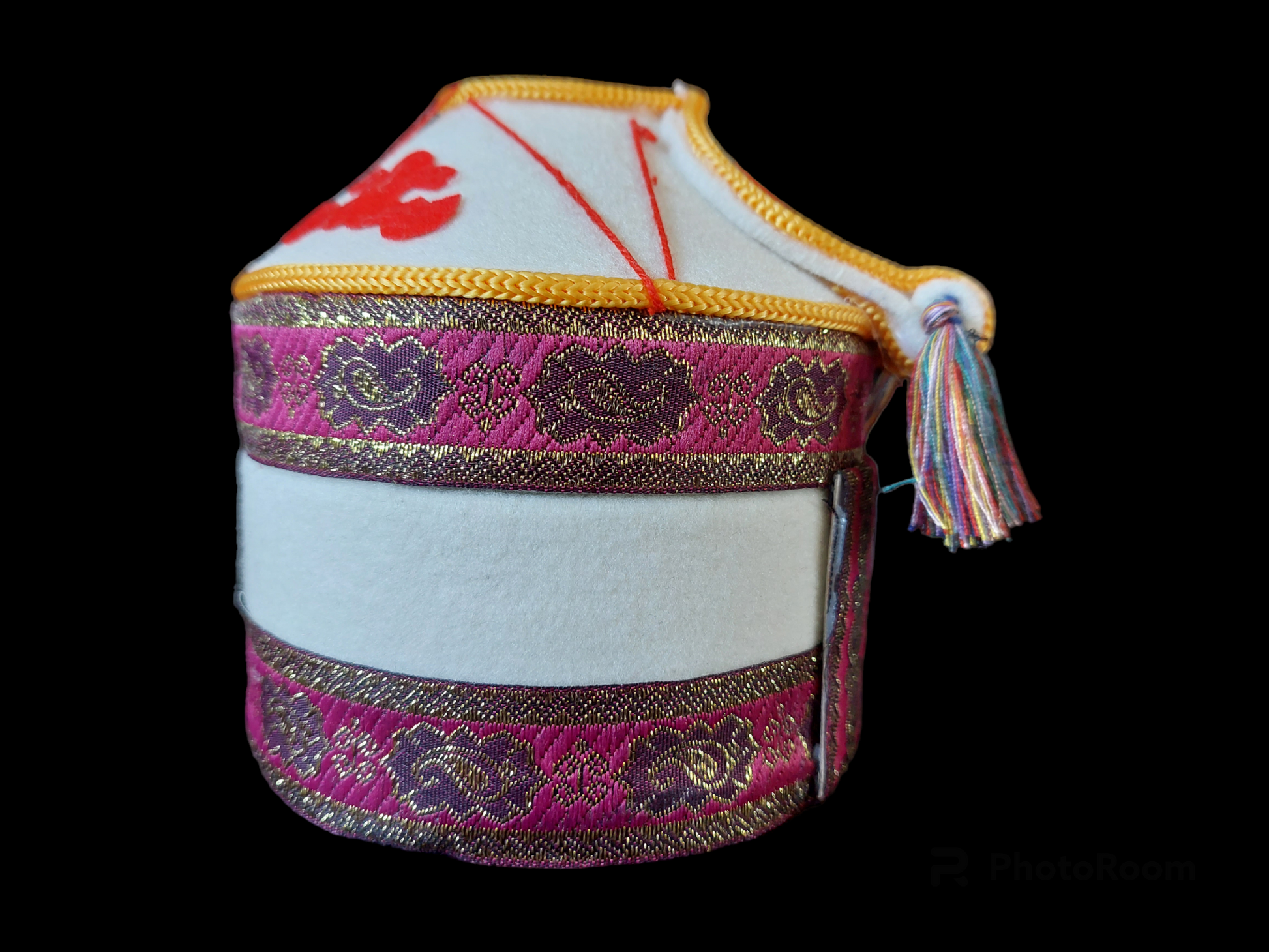 Very nice storage boxes made with felt and colorful decorations, resembling the shape of the round tents, traditionally used by nomadic people in Siberian and Central-Asian territories.