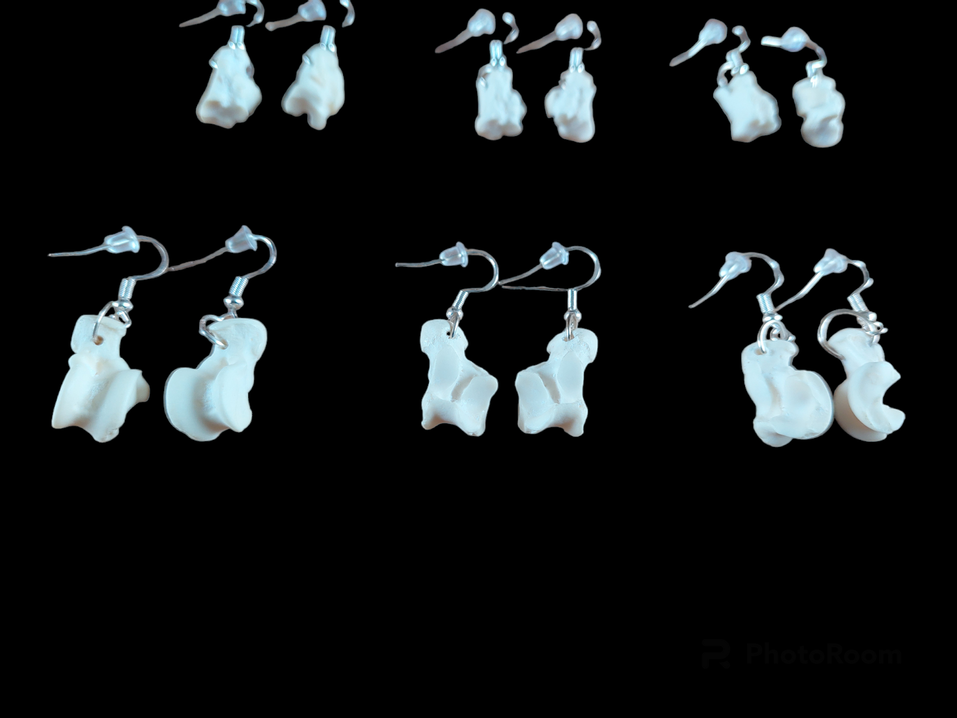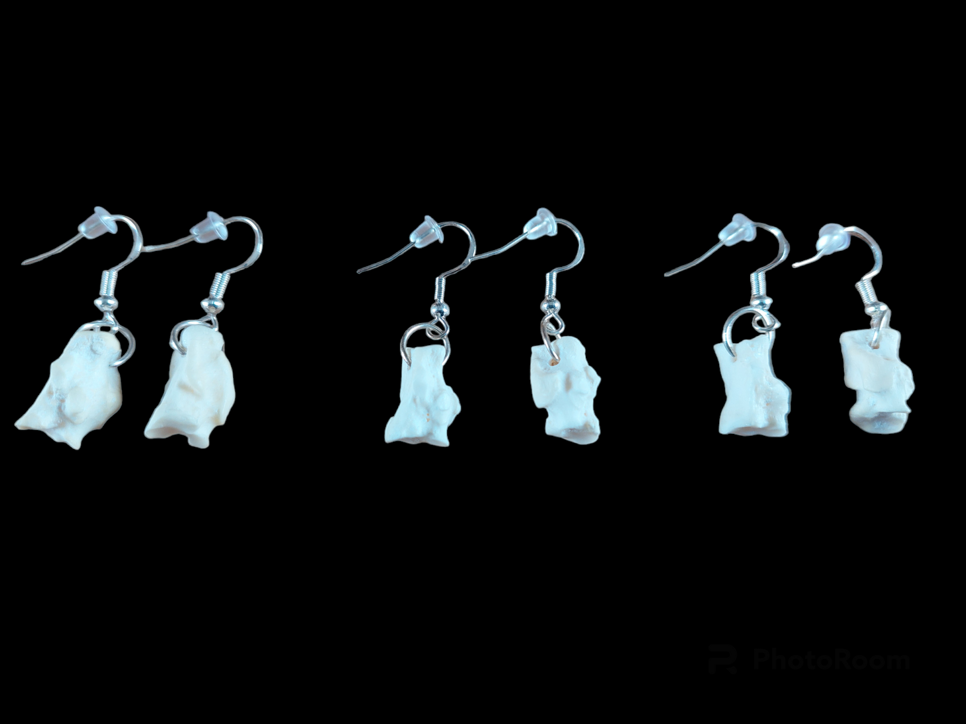 Earrings made with small bones from the ankle joints from dutch red foxes.
