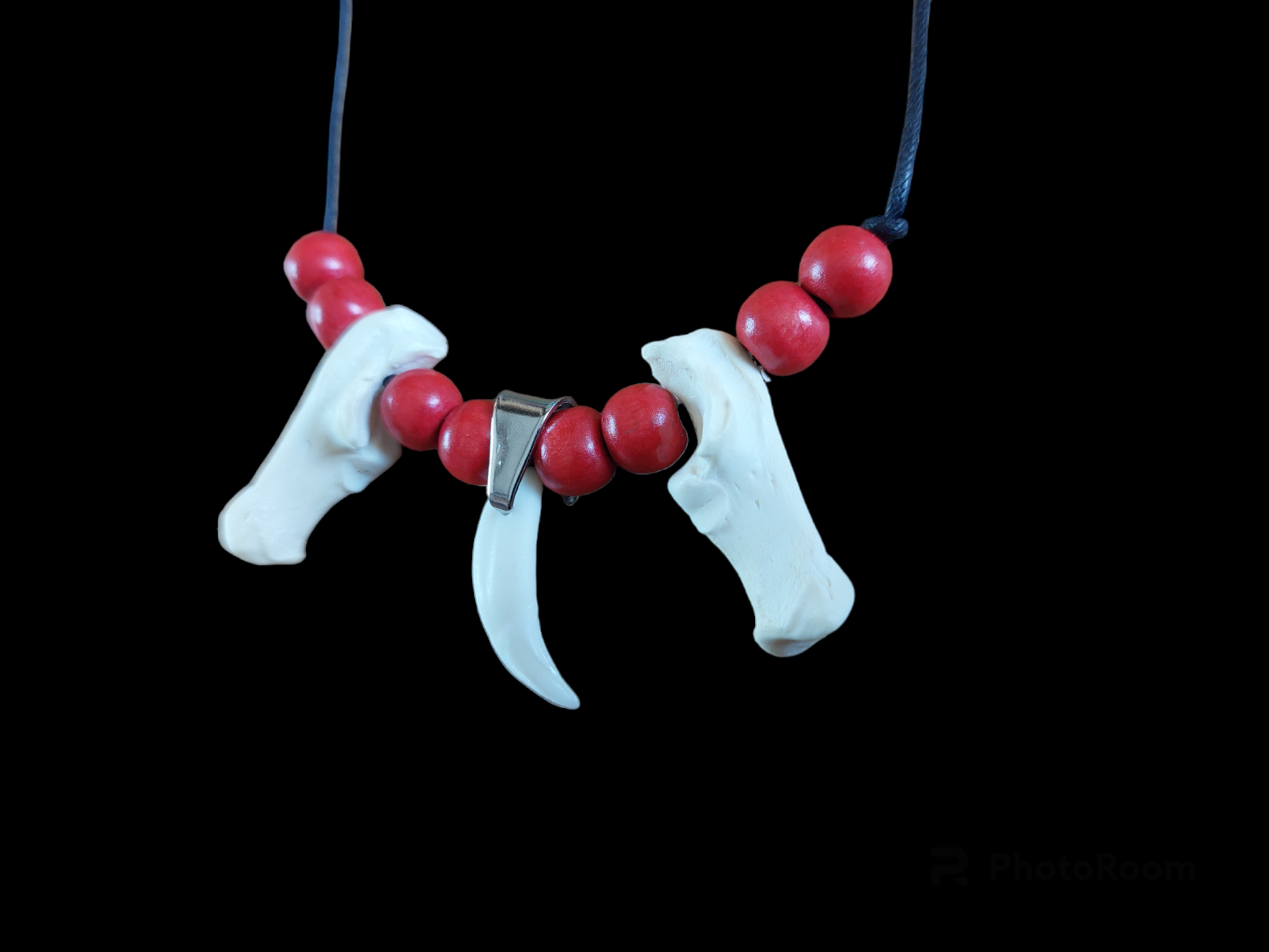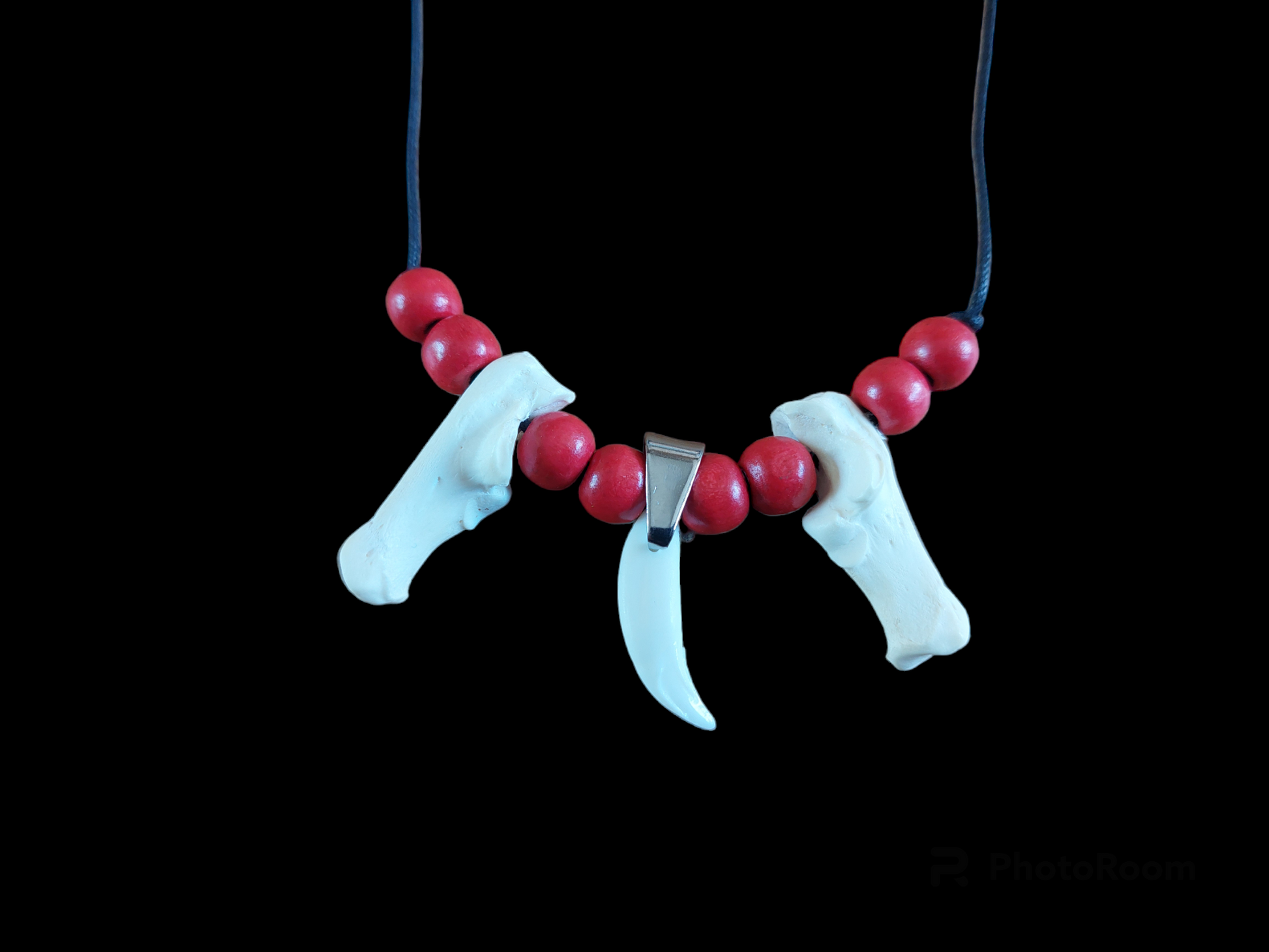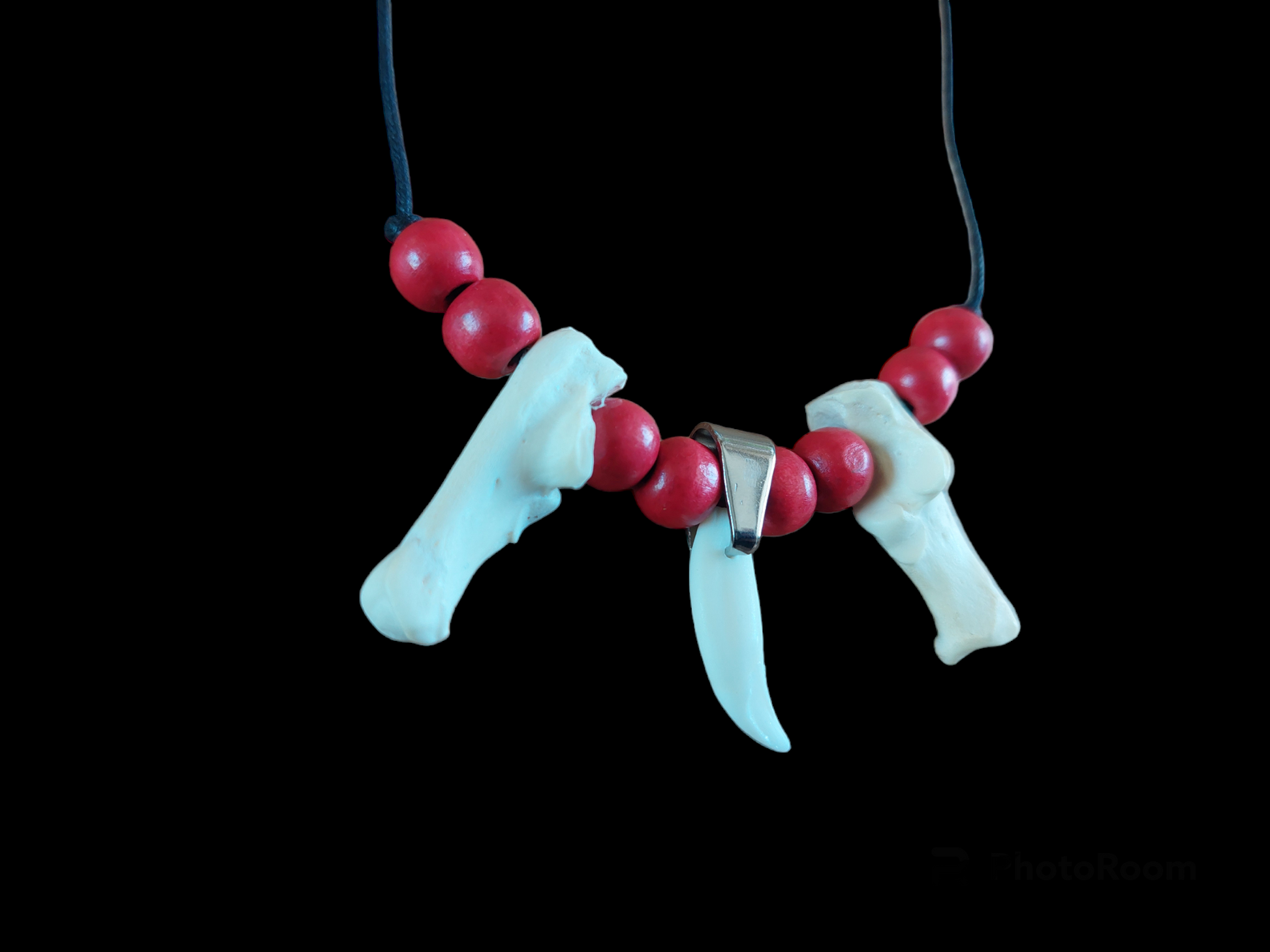 Amulet necklace made with two foot bones and one fang tooth from a dutch red fox.