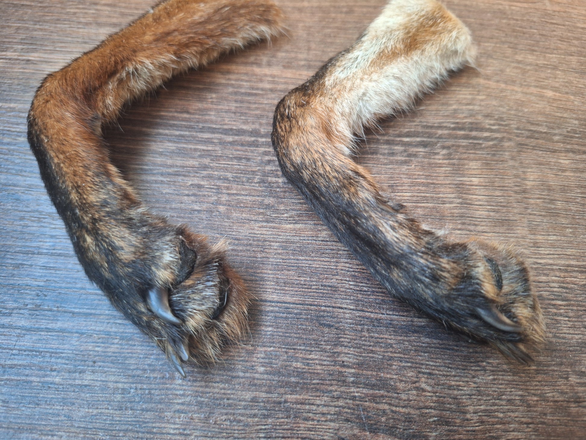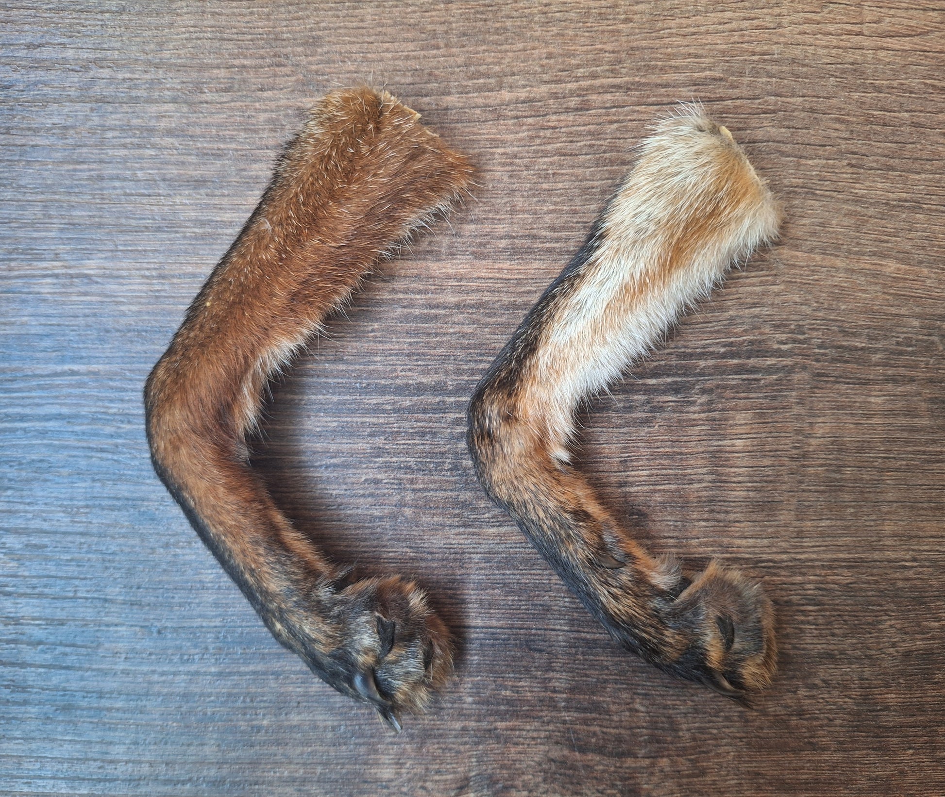 Beautiful lower legs from a dutch red fox, prepared complete with the bones etc. still inside. Good quality, including all nails in good condition.