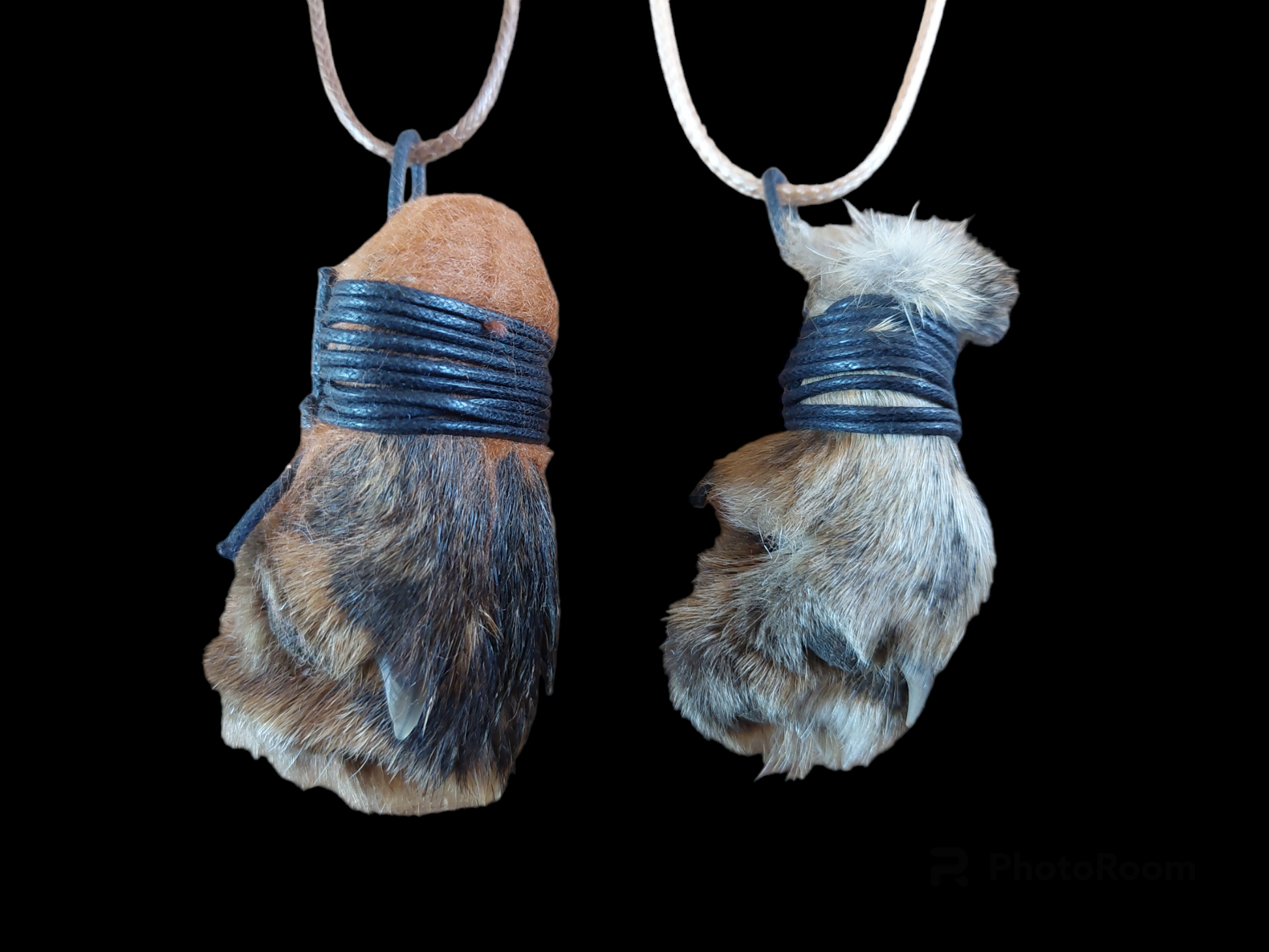 Amulet necklace made with the complete lower part of the front paw from a dutch red fox.