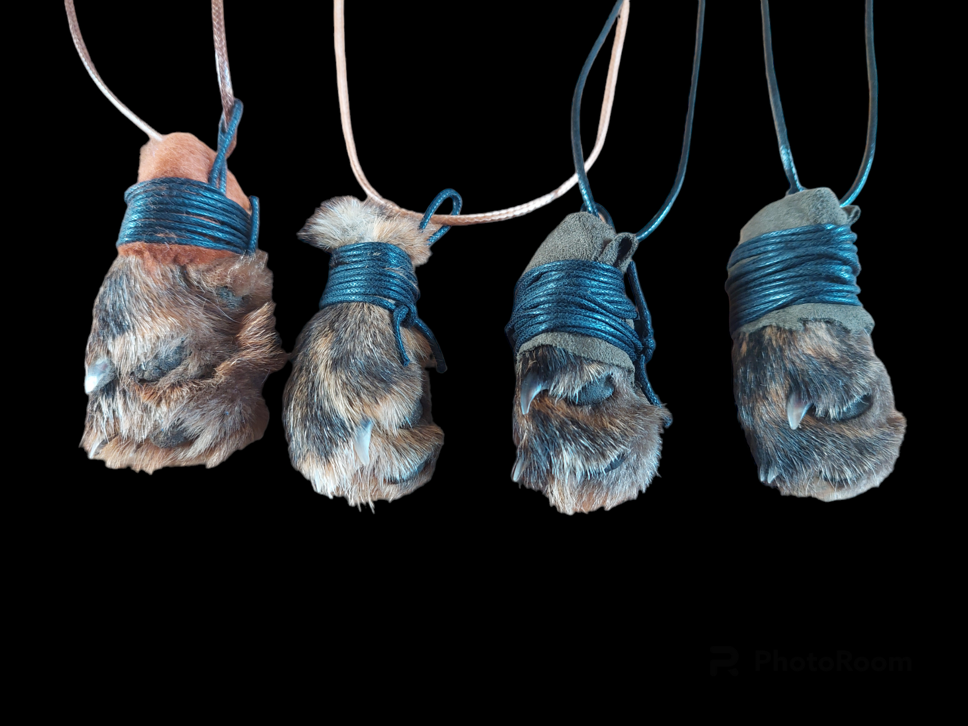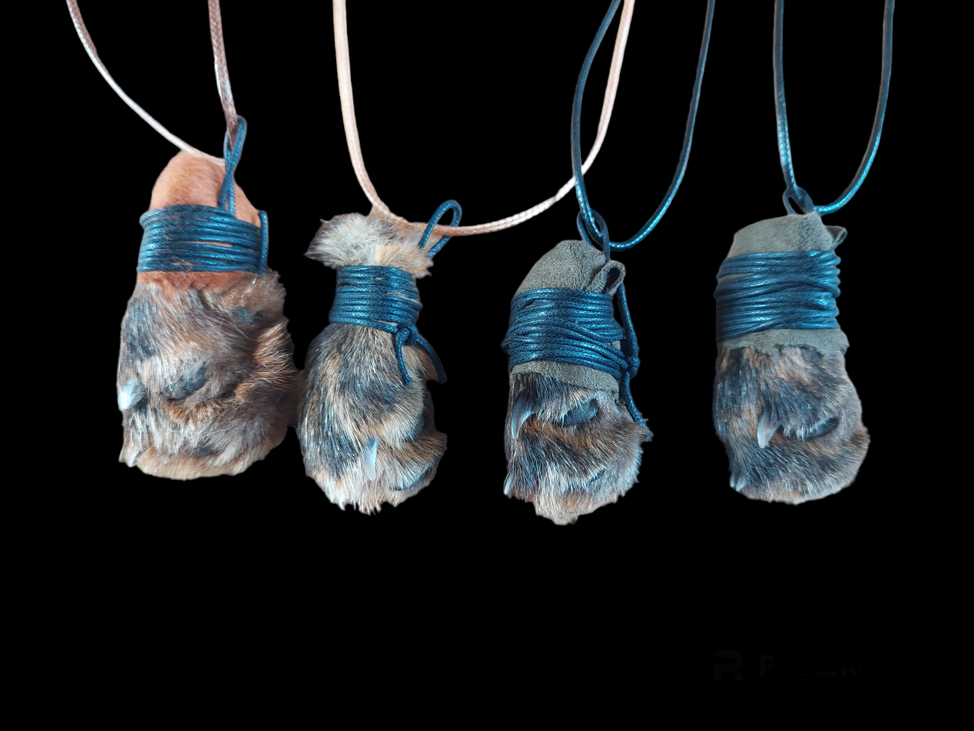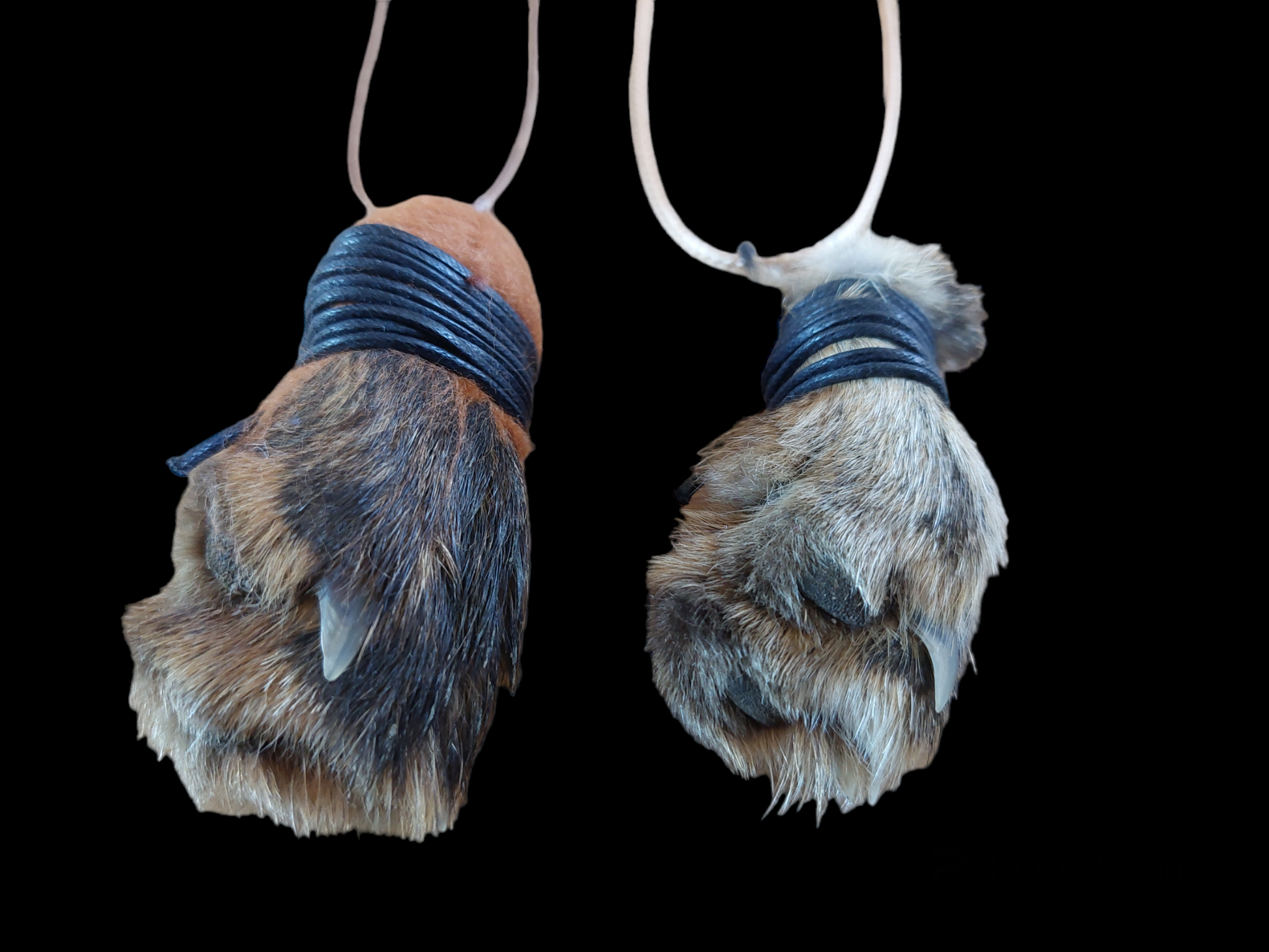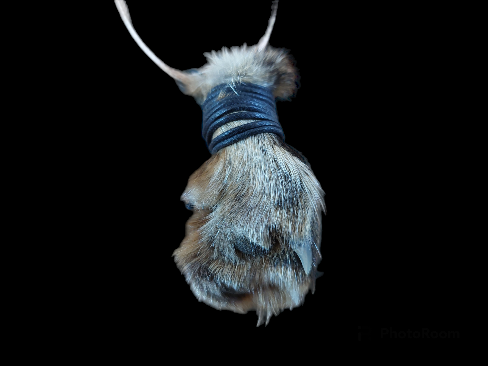 The front paw is made into a pendant using black wax cord and hung on a simple waxcord-necklace. But can of course be taken off to hang on your own necklace, or be attached to your ritual clothing or attributes.