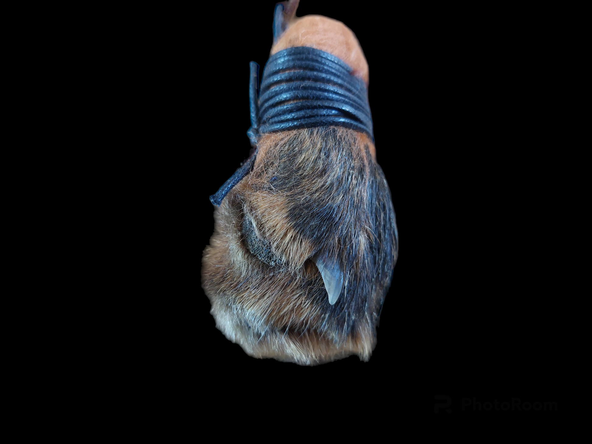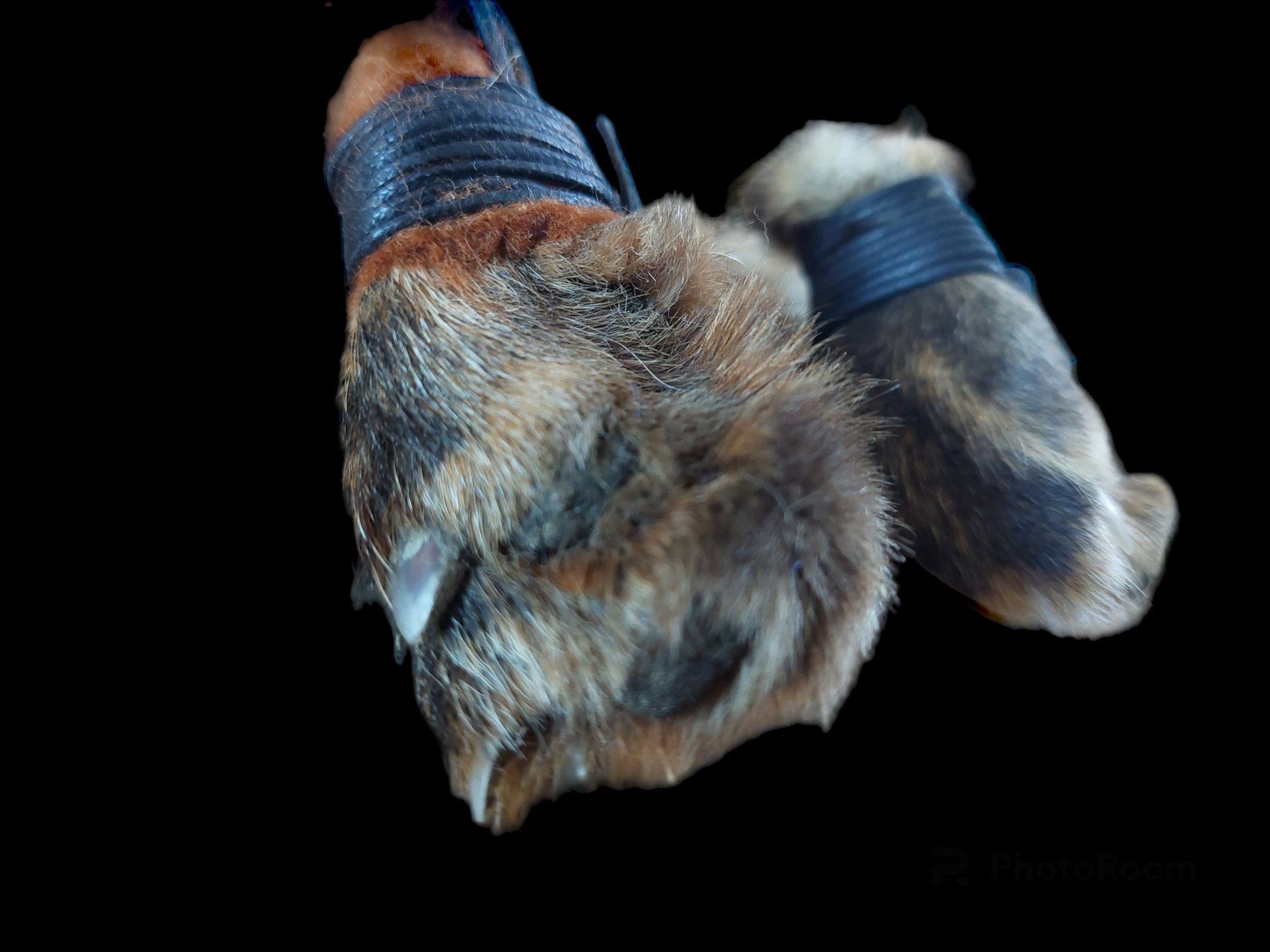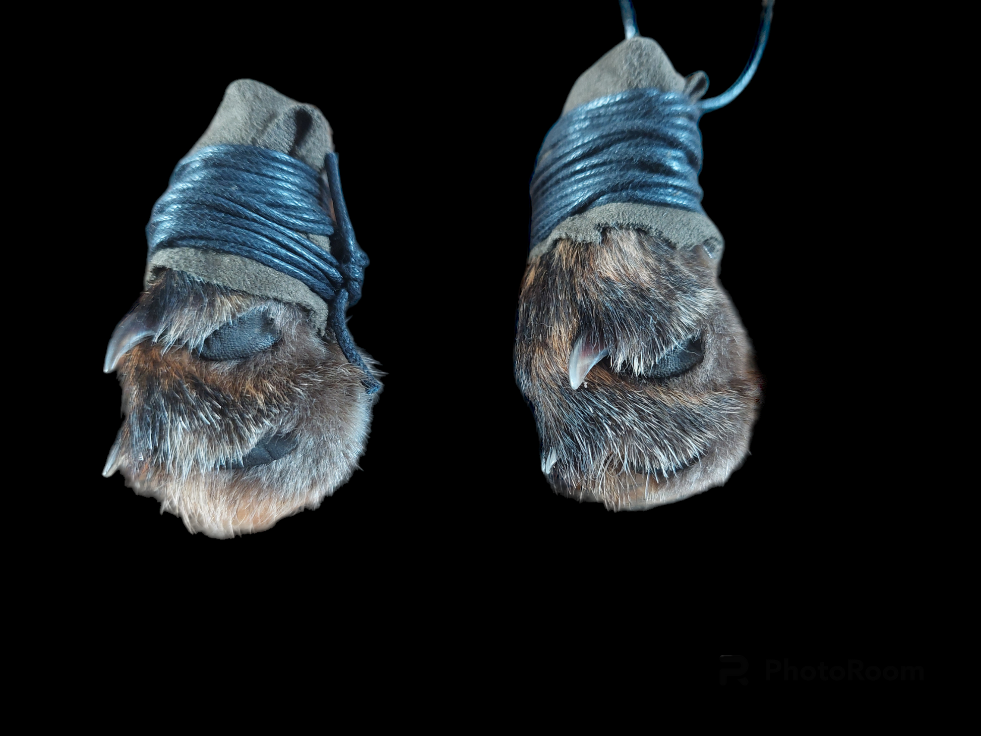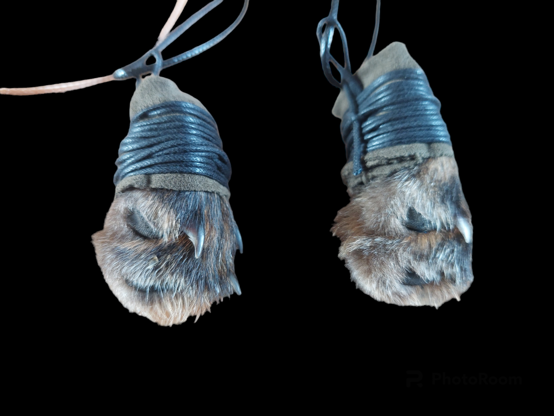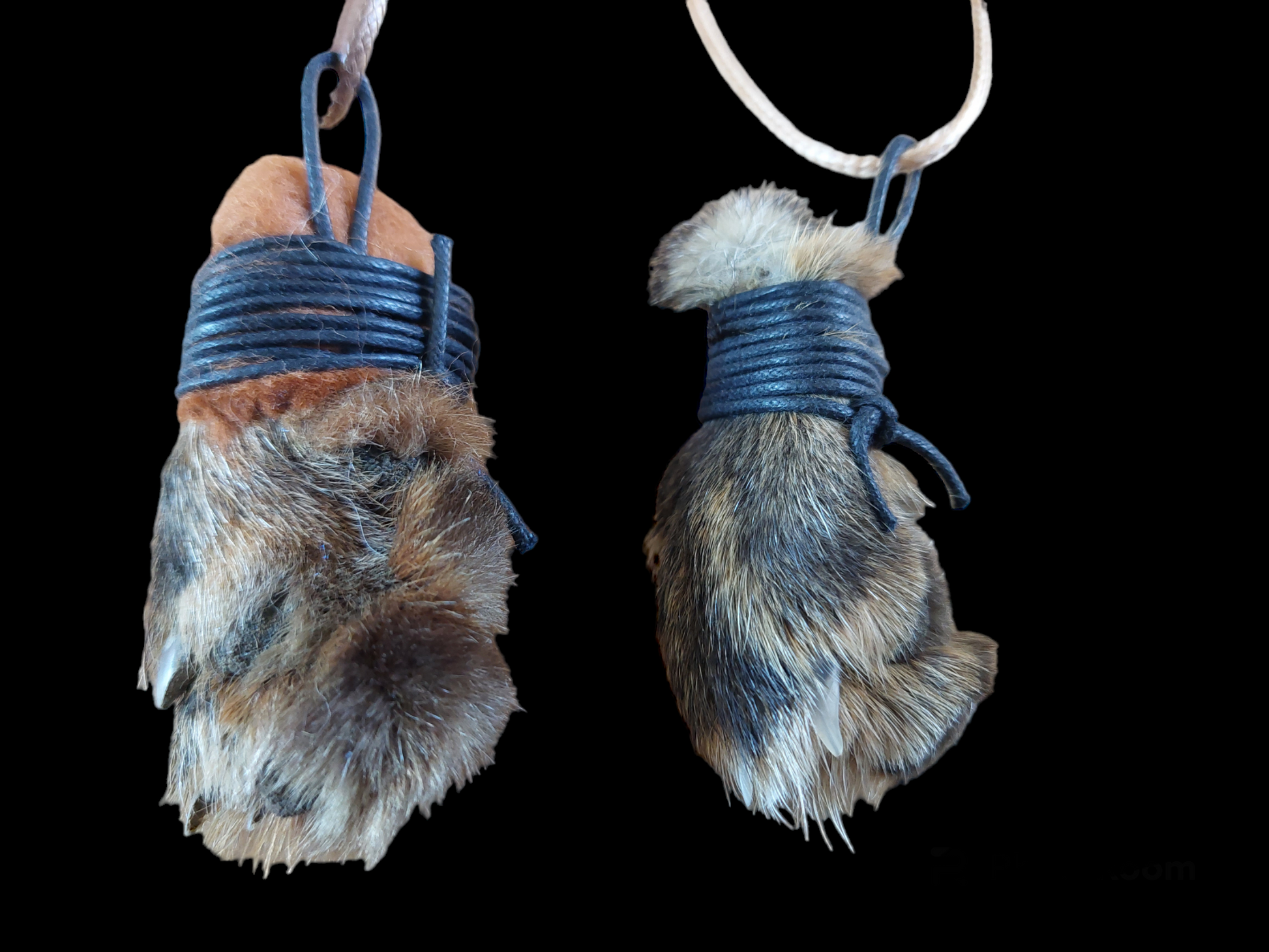 The front paw is made into a pendant using black wax cord and hung on a simple waxcord-necklace. But can of course be taken off to hang on your own necklace, or be attached to your ritual clothing or attributes.