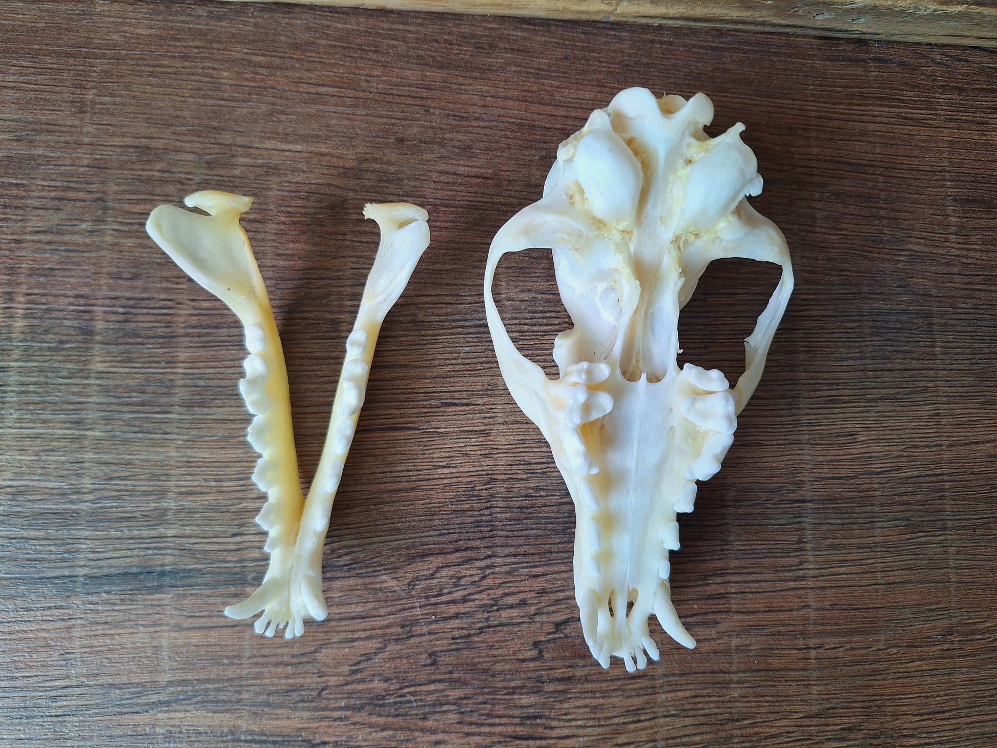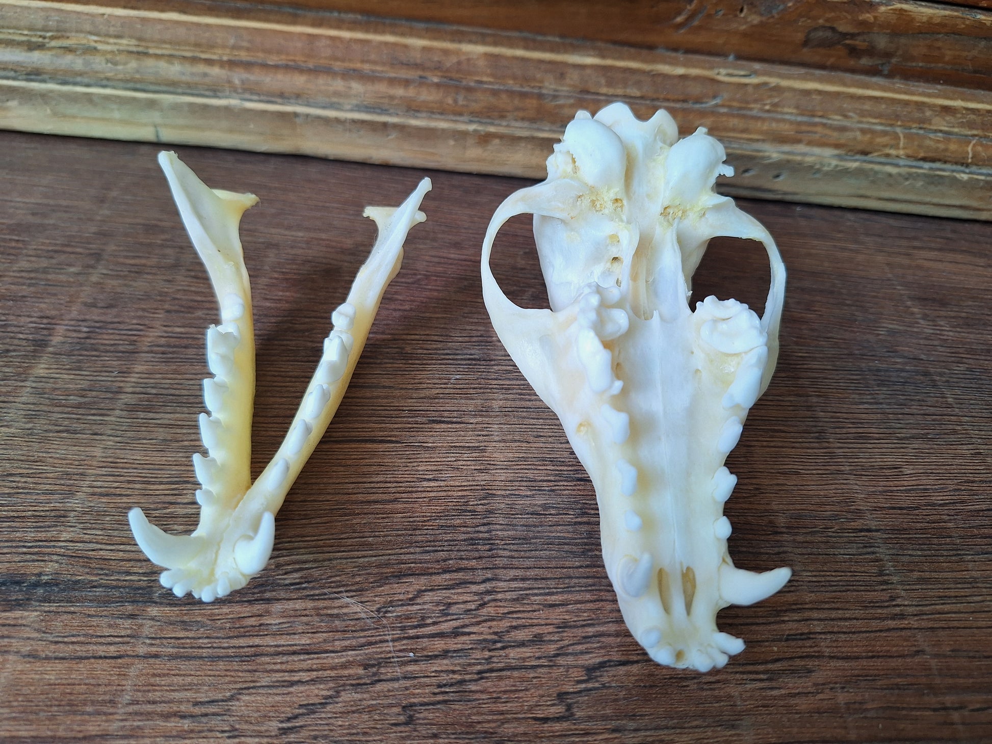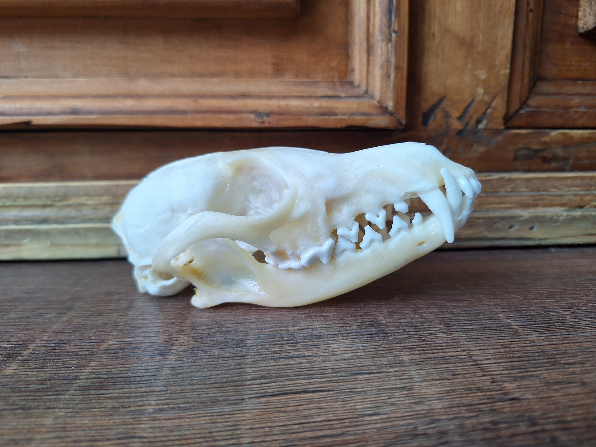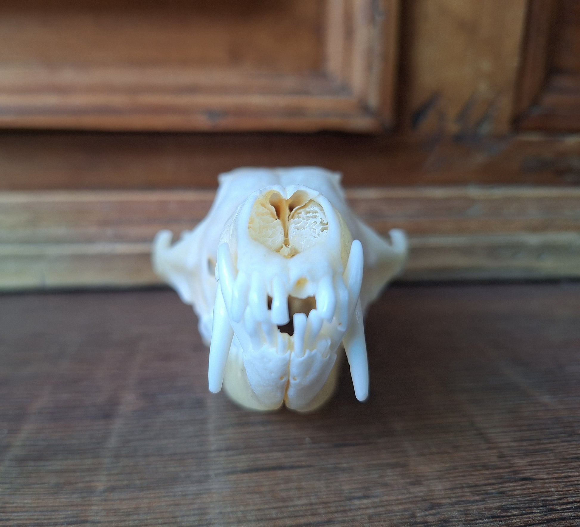 Nice skull of a dutch red fox. As can be seen on the pictures, a few of the smallest teeth in the front of the jaw have gone missing, but otherwise this skull is in very good condition and will make a good house for your personal Fox spirit helper on your altar.