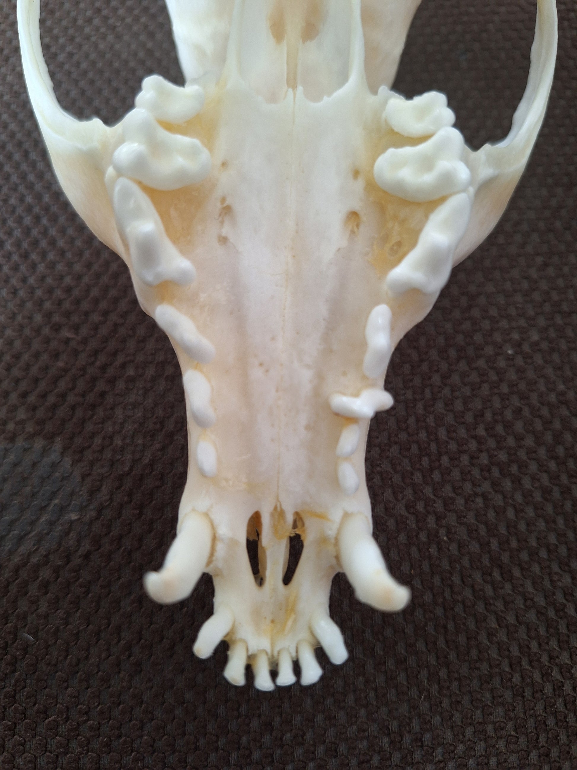 Please note that the fang in the lower right jaw has gone missing. But otherwise this skull is in good condition and will make a good house for your Fox spirit.