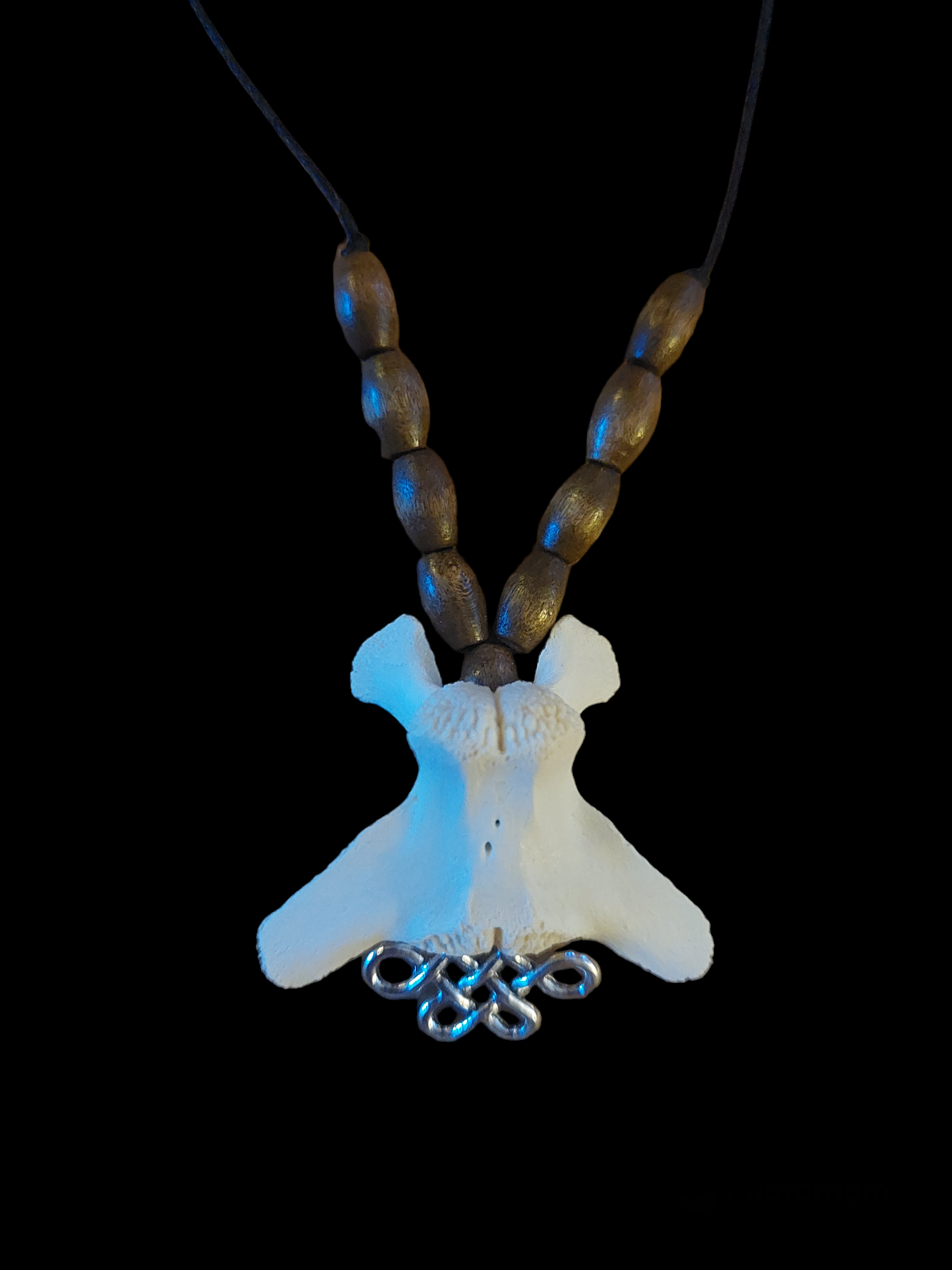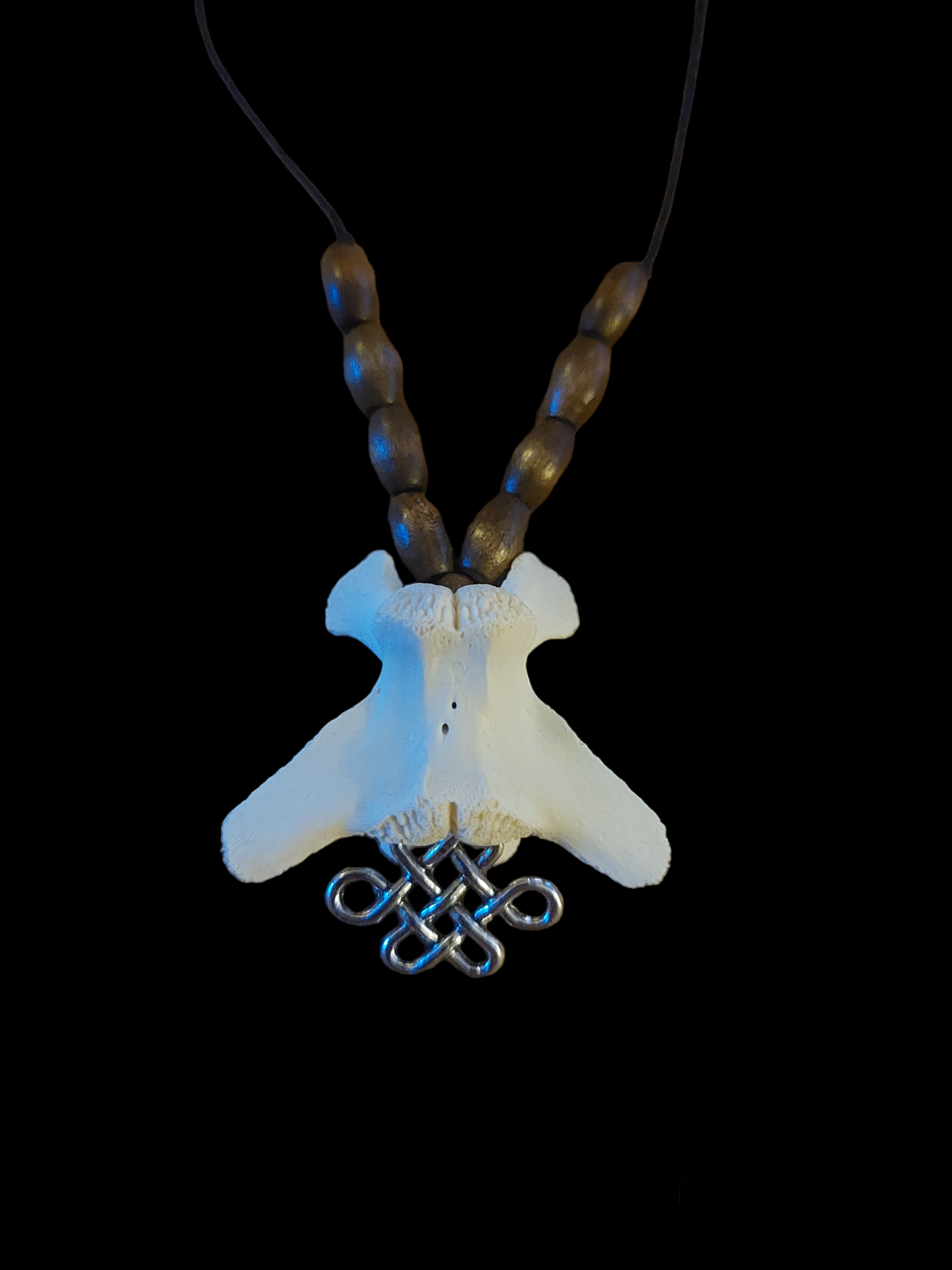Amulet necklace made with a very nice vertebra from a dutch red fox. The vertebra is combined with a Tibetan silver pendant of an endless knot symbol.