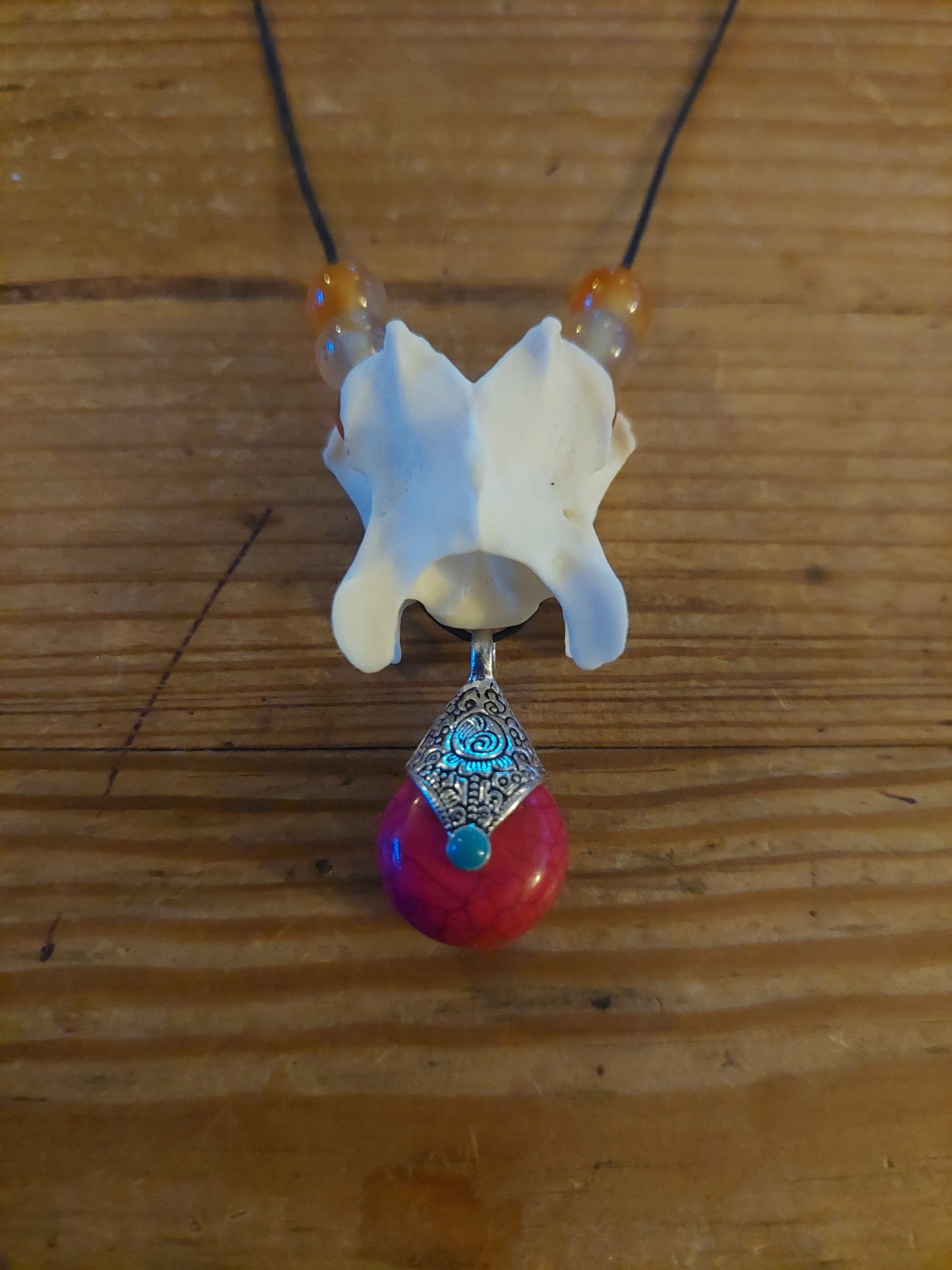 Fox vertebra with carnelion beads and howlite pendant amulet necklace
