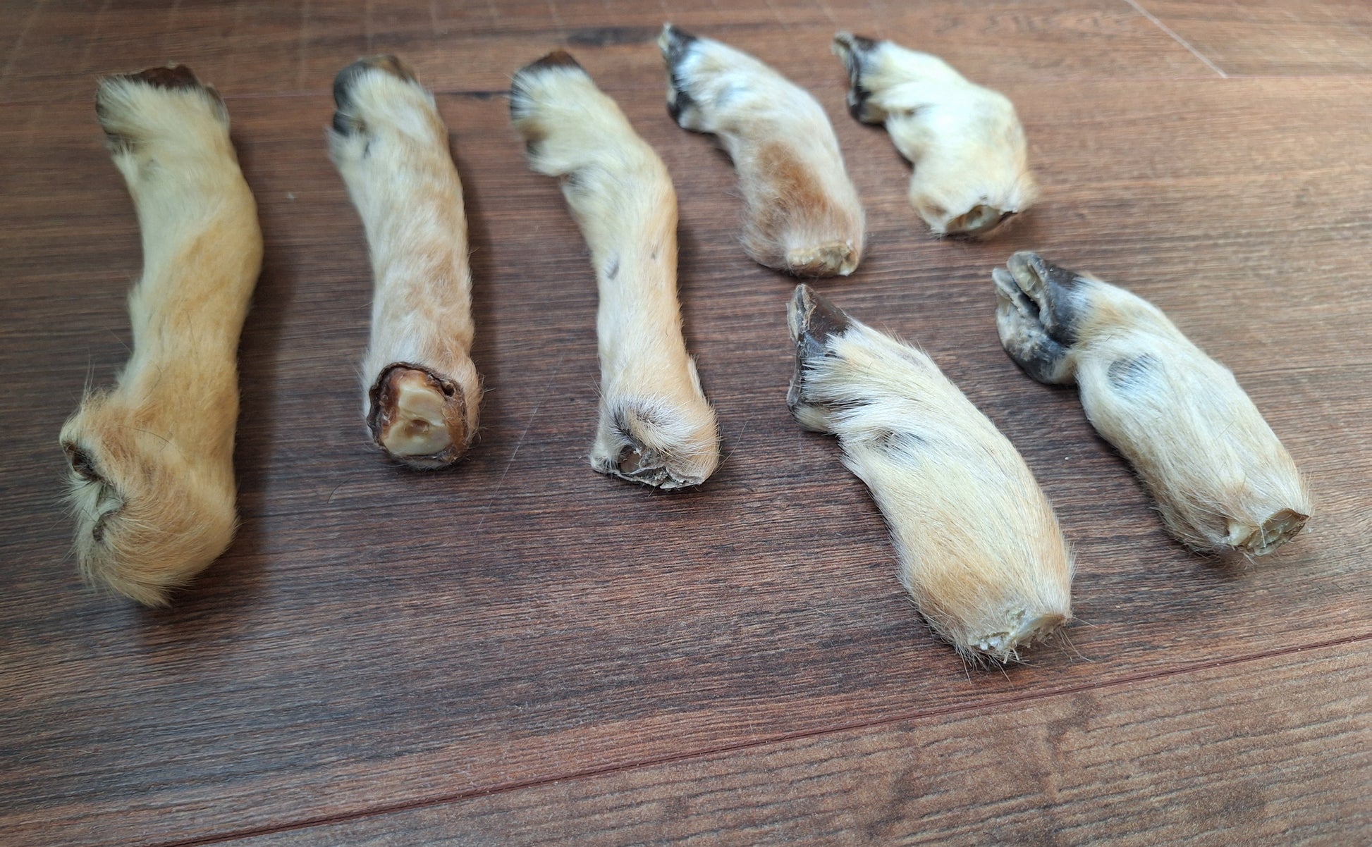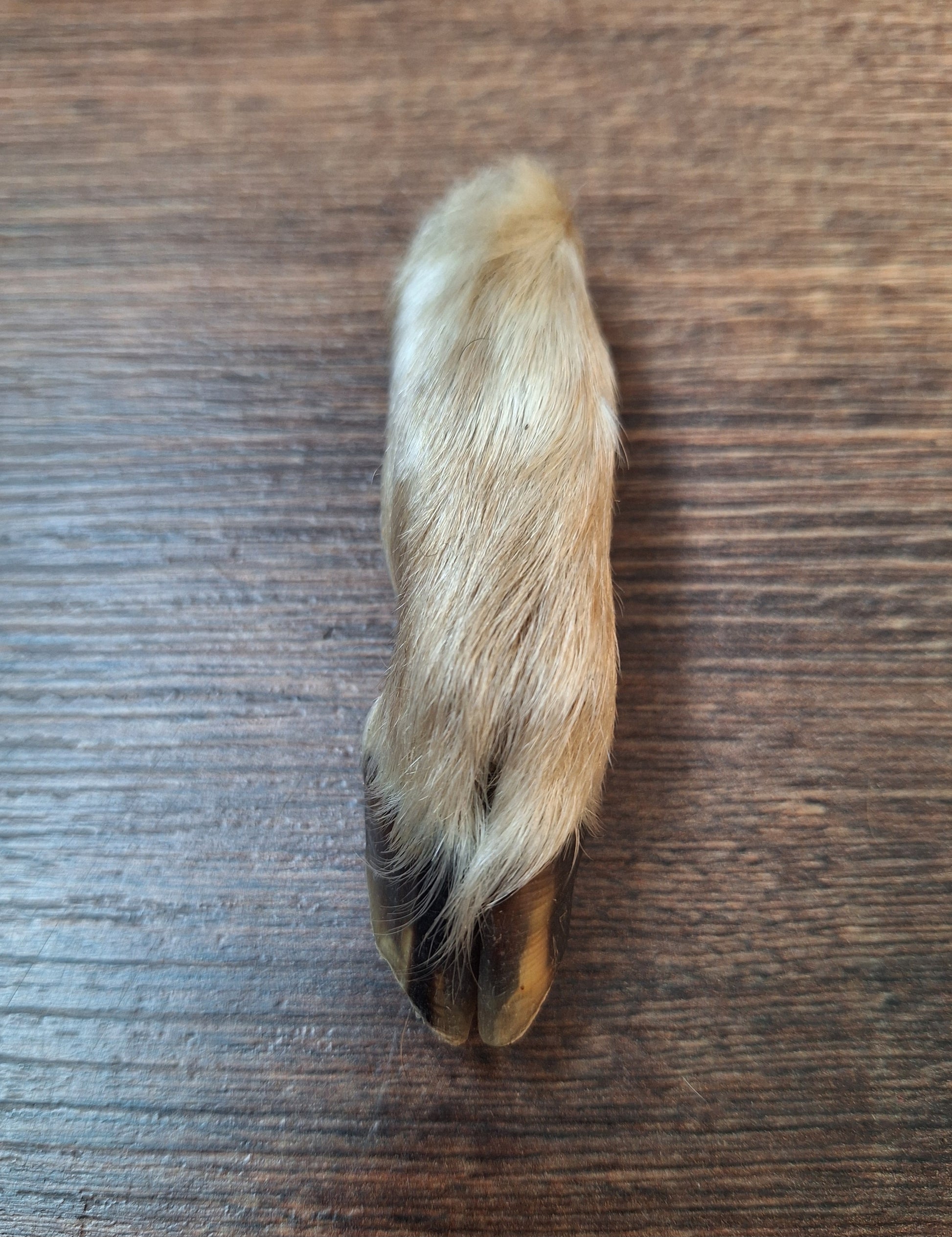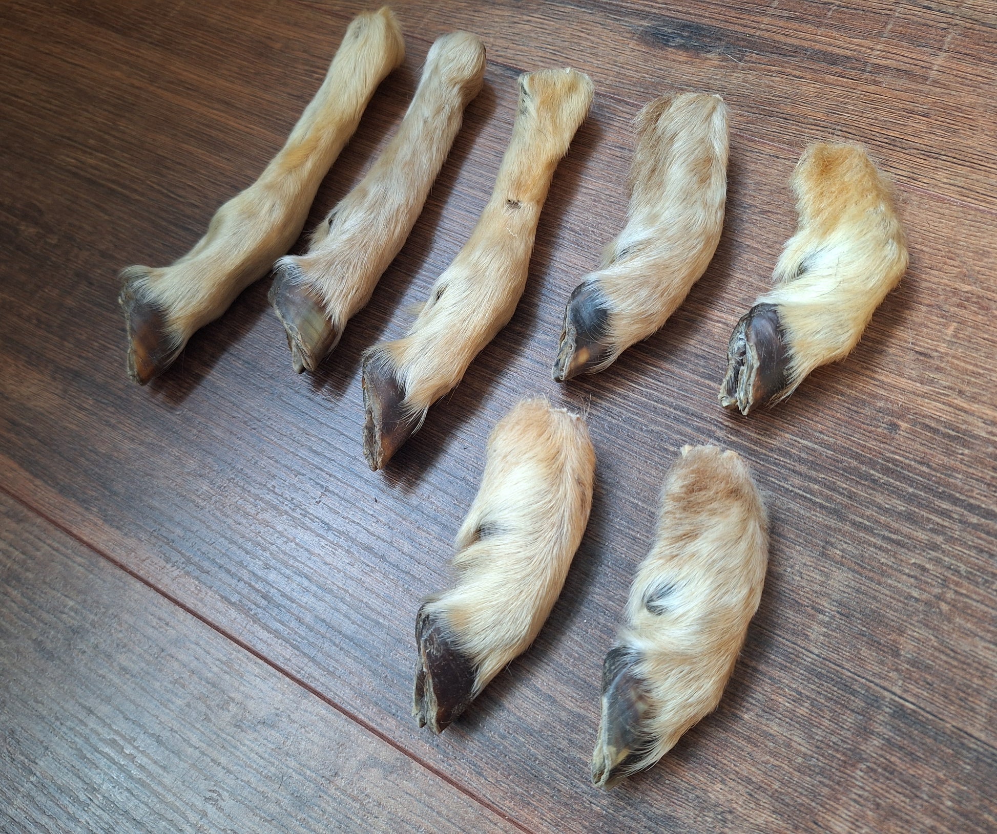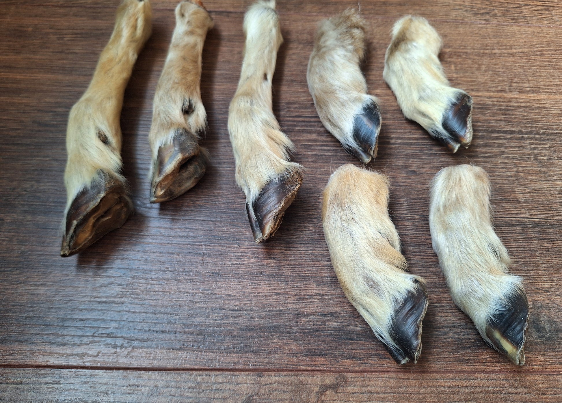 Prepared lower legs from domestic goats, petting zoo animals, died of natural causes. These preparations consist of complete lower legs, including the bones and hooves etc. Nice items for all kinds of personal ritual or crafting purposes.