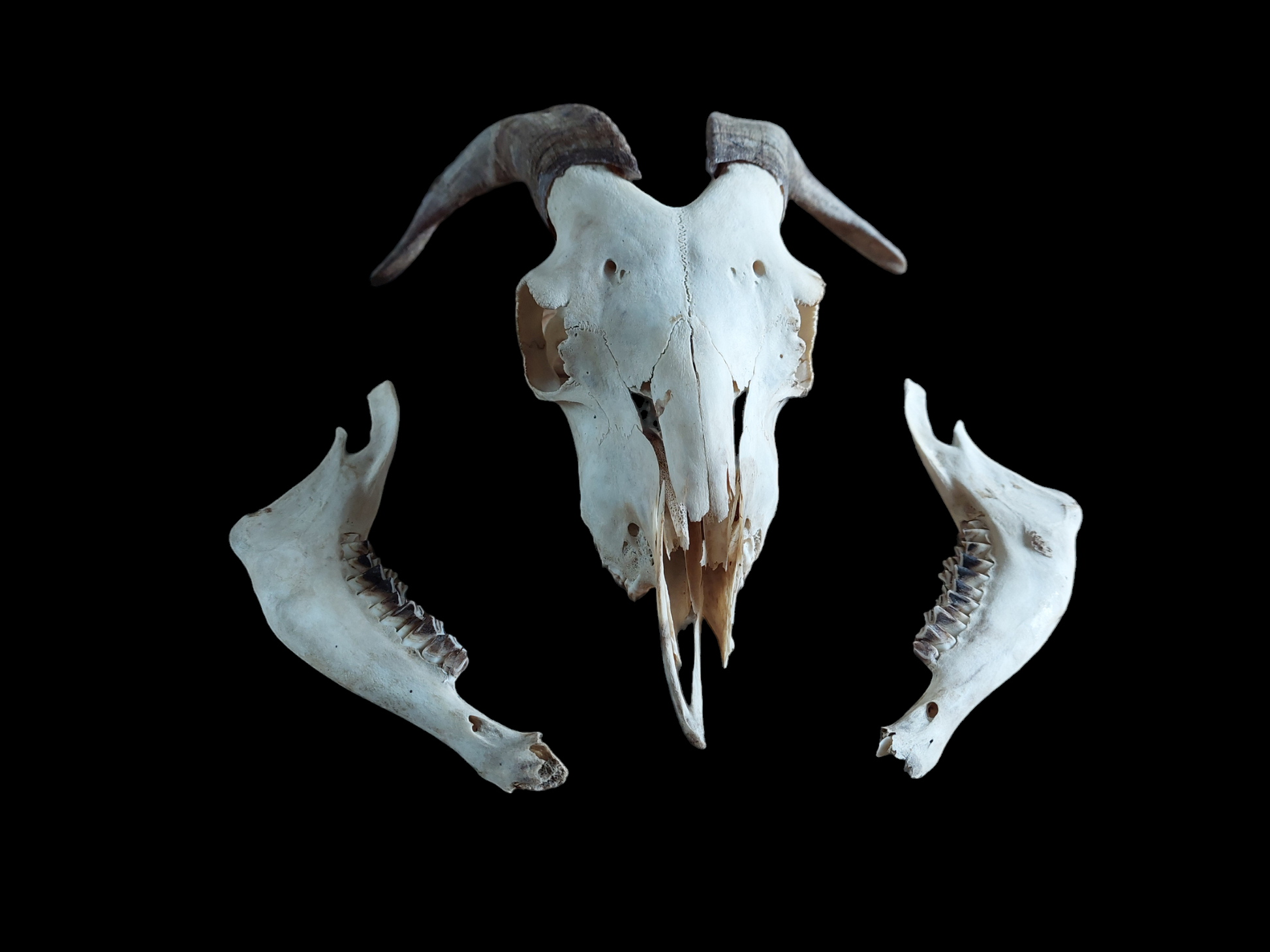 Nice skull from a dutch goat. Set consisting of the upper skull and two separate lower jaws.